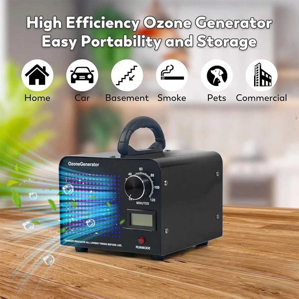 A: 60000Mg/H Ozone Generator Air Purifier Featur es : Maximum output of 6 0 ,000 mg/h is suitable for spaces up to 20-400 square meters It has a life-time of up to 3 ,000 hours and does not require any replacement parts It is suitable for cars, boats, dumpsters, kitchens, bathrooms, basements It effectively cleans odors from cooking, smoking, and pets Specif ications : Dimensio ns: L170W1 90H175mm Shell material: SGCC hot-dip galvanized sheet+electrostatic spraying Airflow: 170m/h Noise: 40dB Timing: 120 minutes Input voltage: AC110V/60Hz or AC220V/50Hz Output voltage: 2500-2700V Rated power: 80-150 watts Control mode: manual control Applicable area: 20-400 square meters Working temperature range: -10 ℃ to 70 ℃ Working humidity range: 0% to 65% Service life: 3000 hours Ozone level: 60000Mg/H ozone level Pac king Include: 1 x User Manual 1 x Detachable Power Cable 1x Ozone Generator Machine ============================================== B: Air Purifier Cleaner N ote : It is no built-in battery, USB cable must be connected to work. Fe atures : 1.Negative ion dust removal and odor elimination neutralizing electron 2.Blue light purification 3.Aromatherapy storage box[can add aroma tablets] 4. In addition to VOC, pollen, PM2.5 dust particles 5. In addition to second-hand smoke, formaldehyde 6.High speed power purification system 7. Free TYPE C charging cable Specifica tion : Air purifier air volume: 50 cubic meters / hour Applicable area: 11 square meters (including)-20 square meters (including) Applicable people: allergy, smoking, pet family, workplace office, etc. Energy efficiency level: first-class energy efficiency Power supply mode: USB Product noise: 36dB or less (dB) Energy Efficiency Class: Class I energy efficiency Product voltage: 5V Product power: 5W Wire length: 1M Product Size:19*11*9cm Packi ng list: Air purifier*1 Filter element*1 Activated carbon cotton *2 Scented Sponge *1 Charging cable*1 Instruction manual*1 Color box*1