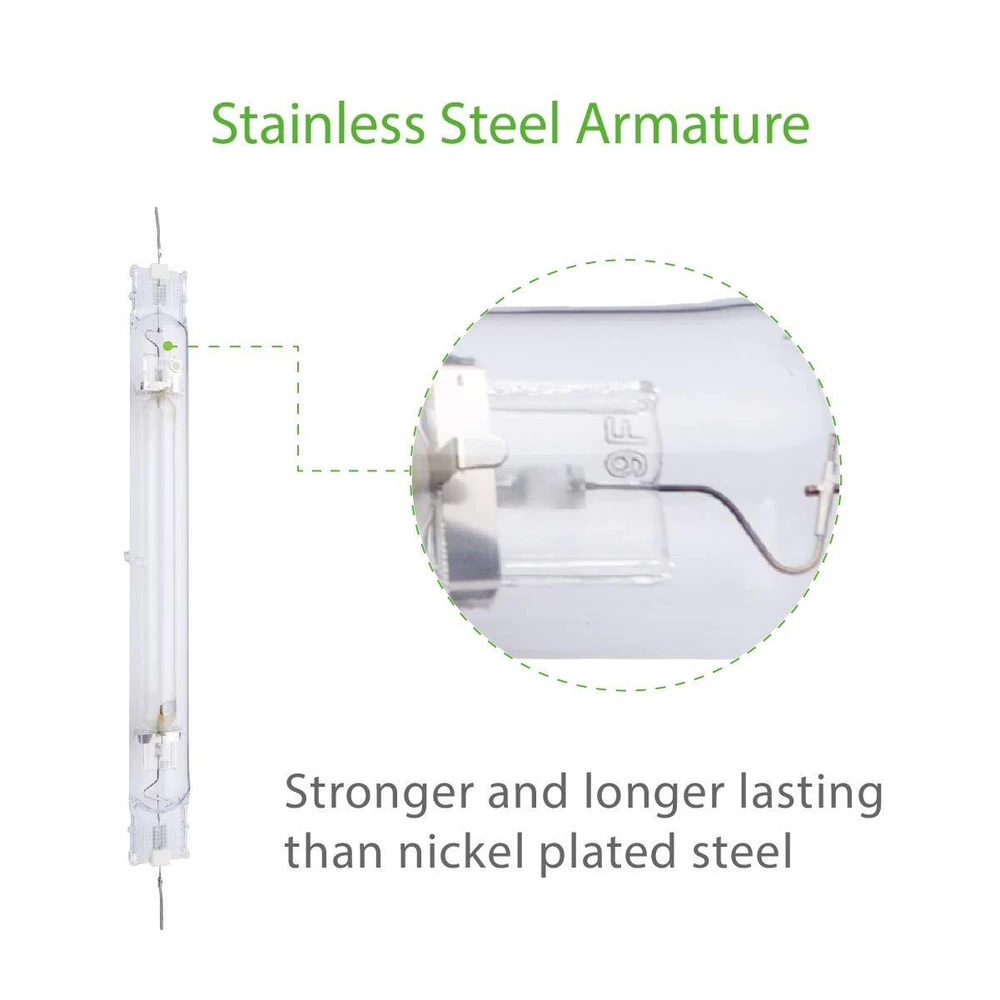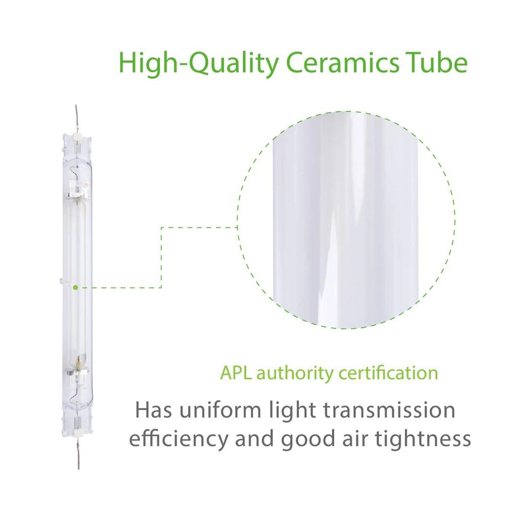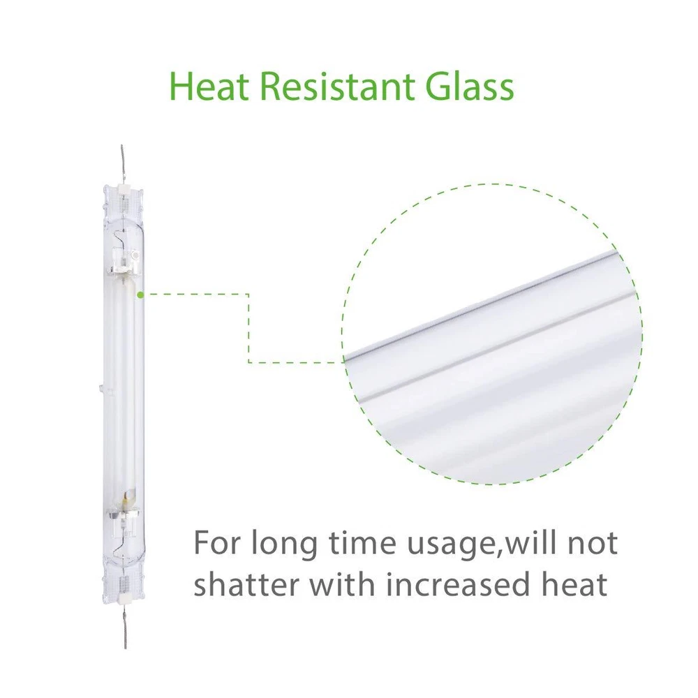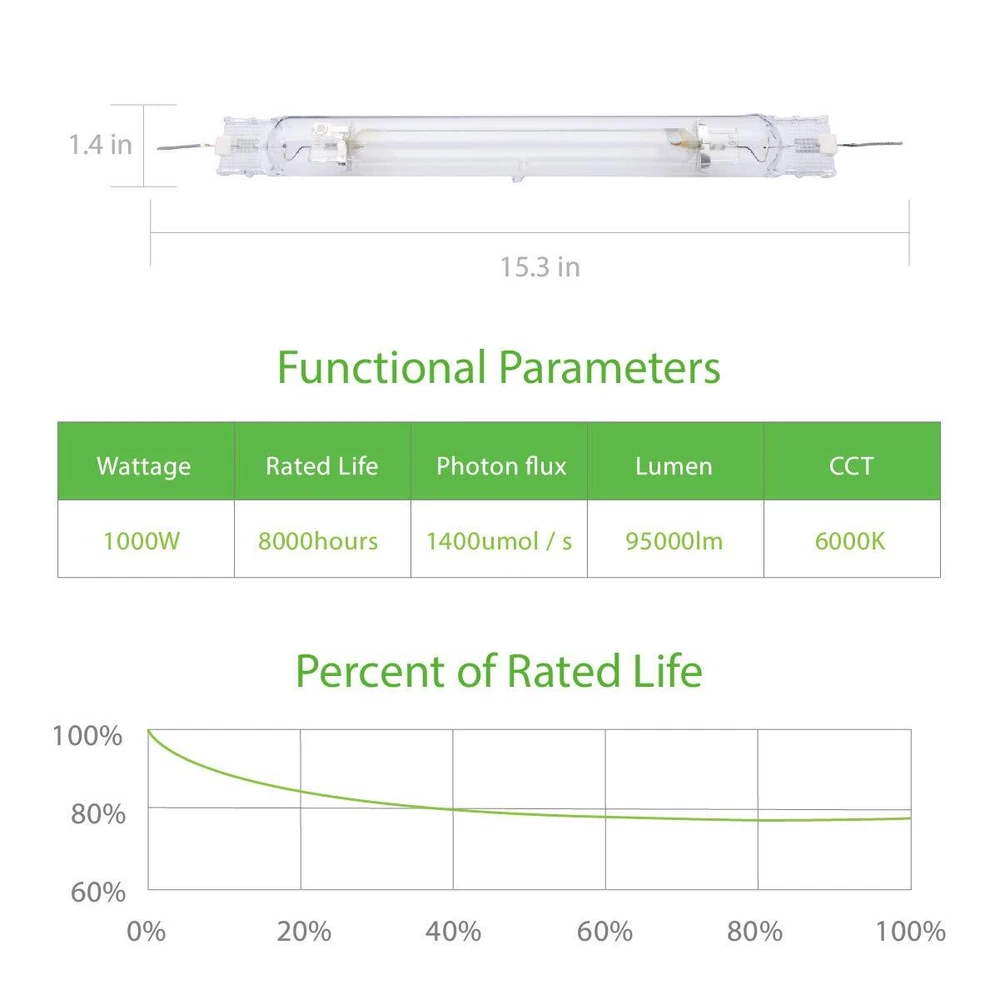 New improved horticulture MH grow bulb that use high output technology to achieve maximum vegetative growth and maximum flower yield Specifically designed for high frequency electronic ballasts & Horticulture 1000-watt Metal Halide MH Double Ended Grow Light Bulb Features High Blue Spectral Ratios for Great Photosynthesis Efficiency and Vegetative Growth; The 6000K Metal Halide is the best spectrum used for vegetative growth to encourage shorter node spacing and bushier plants The yellow residue inside is unvaporized gases; This is completely normal; When the bulb is lightening, the residue will no longer be visible compare with similar items Standard K12*30S cap base can be used in any 1000W double ended MH fixture