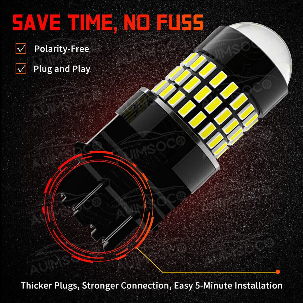The compatible vehicle lists is only partial lists,no fully included due o Ebay listing compatible vehicles limitation. IF your car plug is 3157 3156 ,the item is fit your car Cross Reference: 3156 3056 3156A 3456 4156 3157 3157A 3047 3057 3357 3457 3457A 3757 4057 4111 4157,4157NA,3157LL,3356, 4157, 4114,3157A, T25, etc. Specification Application:backup reverse lights,Daytime Running Light,brake tail light,Parking light etc. Compatible with these cross reference numbers:3156 3157 3057 3047 3155 4114 4057 4157 4057 4057LL 4114 4157 4157L… LED Chip:54pcs*3115 SMD High Lumen:400Lm/per bulb, 800LM/per Set Color Temperature:6000K Super White Waterproof Level:Waterproof & Shockproof Working Voltage:DC 12V to 24V Beam Type:360°Beam Angle, no dark spots Lifetime:More than 30000 hours Brightness: No dark spots, 300% Brighter Feature: Low consumption, New look, No polarity design, plug&play, easyinstallation. Just plug & play Used for reverse lights Canbus error free Size: as photo showed. CANBUS: YES, ERROR FREE, Just plug & play Used for Vehicle backup reverse lights,Daytime Running Light,brake tail light,Parking light etc. Package including: 2x 3157 LED super bright white led bulbs 1. Our store are specializes in all kinds of Car LED Headlight and Car Parts.We sell them at the best price, and offer the best service. 2. You will find a large selection of high quality automotive accessories. Not only do we sell quality, affordable parts, but we also sell confidence. 3. Our Advantages: 1). Competitive Price 2). Brand New and High Quality 3). Excellent R & D team 4). Excellent Shopping Platform 5). Excellent Customer Experience 6). Excellent Team Work Brand New High Quality with Reasonable Price Fast Ship from KY or CA within 1 business day Tracking# Is Available With Free Shipping 60 days money-back guarantee & free return