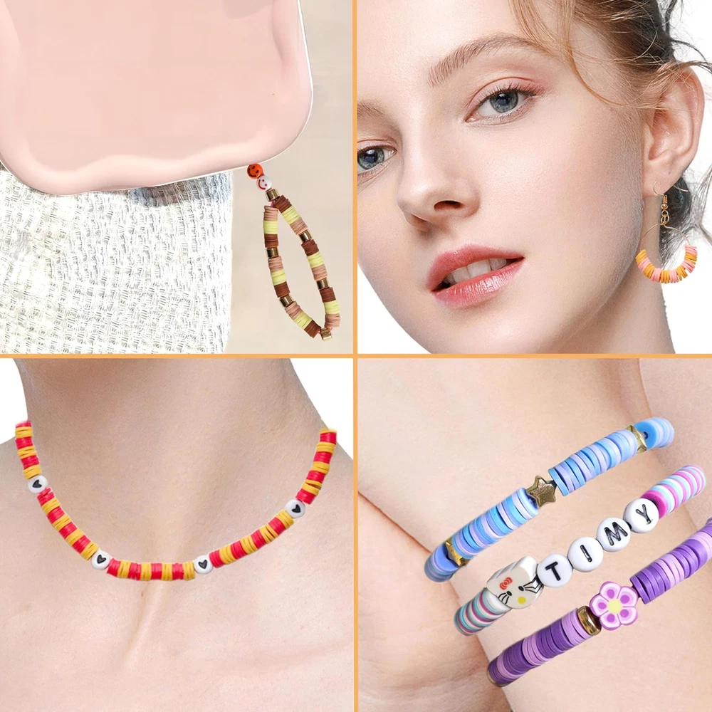 Minimum age: Over 3 years old,Children need to be accompanied by an adult.Clay Beads 6mm in dia. and 1mm thick.Alphabet beads measure 6mm. and 4mm thick.Gold accessories measure approximately 5-6mm.We come with a large variety of accessories, enough to make multiple bracelets as well as necklaces. [What you will get]:-1 box of clay beads in 24 colors, about Total 5600+pcs. It also includes about 240+ letter beads in 26 letters,about 20 Pcs Gold Split Ring,about 10-15 Pcs Lobster Clasp,about 20-30 Pcs Clamshell Beads,30 Pcs Gold Square Beads,30 Pcs Gold Round Beads,30 Pcs Star Beads,about 60 Pcs Heart Beads,about 60 Pcs colorful Smile Beads,1 pair of tweezers.10m transparent elastic string [Perfect Size]: - The polymer clay beads are the right size, about 6mm in diameter, with 2mm holes and 1mm thick.This Clay Beads for Bracelet Making, 24 Colors Flat Preppy Beads for Friendship Bracelet Kit, Polymer Clay Heishi Beads with Charms for Jewelry Making, Crafts Gifts for Teen Girls.You can make bracelets a charm vivid bracelet/ necklace/ earring easily for bracelet jewelry making. [High-quality Material]: - Our clay bead is made of polymer clay heishi beads, non-toxic and lead-free, resistant and waterproof.The beads are lightweight and comfortable to wear, so you can wear them on any occasion such as beach,parties,banquets. [Wide Applications]: - You can use the clay bead kit to make bracelets, necklaces, anklets, earrings, cell phone pendant with your Girls with the clay beads kit for a cheerful family time.And birthdays, Valentine's Day, Mother's Day, Christmas, Thanksgiving Day DIY Gift.In addition,you can also improve hands-on skills and creativity,color cognition,hands-on ability,concentration and patience,create a harmonious and fun family atmosphere,enhance parent-child relationship when doing DIY. [Perfect Gift]:- The clay bead bracelet kit are colorful and with the right size, you can make all kinds of crafts by simply threading the elastic string through the holes of the clay beads and accessories. Different color combinations can present different designs,different letter beads combinations bring different meanings. [Teen Girls Gifts]: - Trendy Stuff: It's time to bring home these trendy gifts to surprise gifts for your teen girls. Our friendship bracelets kit not only enhances their crafts skills but also provides a way to enjoy the fun of sharing and self-expression. It's an excellent crafts gift for their crafts projects party. Product Description The video showcases the product in use. The video guides you through product setup. The video compares multiple products. The video shows the product being unpacked.