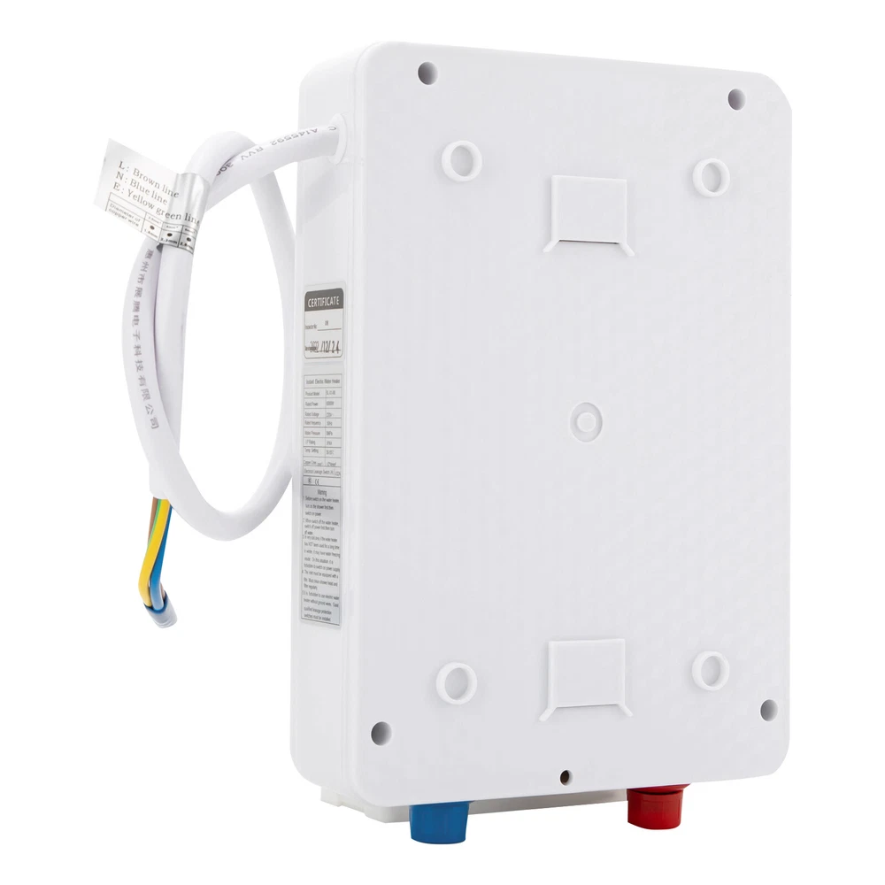 Description When you come home tired, a comfortable hot bath is always the most healing way to relax. But bathing is always accompanied by certain problems, such as hard to adjust the amount of water, long waiting time for preheating, unstable water temperature, safety hazards, etc. Our product can solve all these worries for you, which will be a good helper for you to relax your body after coming home from work. Key Features Energy Saving: Water is only heated when you need it, and not stored in a hot water tank. Self-modulating temperature technology uses only energy to heat water while using it to save up to massive of the cost of water heating compared to a typical water heater. High-quality Material: This product is made of high-quality stainless steel. It has the characteri 6000W Instant Hot Water Heater Electric Tankless On Demand House Shower Sink Description When you come home tired, a comfortable hot bath is always the most healing way to relax. But bathing is always accompanied by certain problems, such as hard to adjust the amount of water, long waiting time for preheating, unstable water temperature, safety hazards, etc. Our product can solve all these worries for you, which will be a good helper for you to relax your body after coming home from work. Key Features Energy Saving: Water is only heated when you need it, and not stored in a hot water tank. Self-modulating temperature technology uses only energy to heat water while using it to save up to massive of the cost of water heating compared to a typical water heater. High-quality Material: This product is made of high-quality stainless steel. It has the characteristics of corrosion resistance, high strength, and not easy to scale, which can effectively extend the service life of the product. Easy to Operate: This product adopts a one-touch control method. The large LED display can display temperature and clear function marks can help you operate more easily and accurately, so even the elderly and children can use it easily. Multi-protection: This product has eight-protection such as anti-dry burn tube, fault self-test, intelligent temperature control, intelligent electricity prevention, water and electricity separation, 0.1 second power off, leakage self-test, and splash and moisture prevention. It can provide you with ultra-high safety protection and let you enjoy every bathing process. Instant Heating: The thermal conductivity of cast aluminum heater is higher plus the 6000w power, the water can be heated in about 3 seconds and it can provide you with unlimited hot water. Variable Frequency Thermostat: This product adopts the intelligent variable frequency thermostat system. You only need to set the desired temperature, and it will always keep the water at a constant temperature to maintain the ideal water temperature for you. Compact Body: The product body is slim, only 2.55 inches thick. It does not take up too much space and can be applied to a variety of home environments. It can be installed either inside or outside the cabinet. Waterproof: The product is equipped with IPX4 waterproof panel, which has good protection against splash and moisture. Even in wet environments, you can use it with confidence. Easy to Install: This product does not have a conventional water tank, so the body is small and easy to install. And the product comes with a complete package of accessories and an English manual, making it easier to install. Complete Set: We also provide you with a shower set, which includes: shower head, shower hose, and connection pipes. You don't need to buy these accessories separately. Details Inlet and Outlet Hose: This product uses 23.62 inch inlet hose and 3.94ft outlet hose. The longer connection hose and standard G1/2 connectors can provide more convenience for your installation and use. Leakage Protector: It will automatically check whether the currents on the fire and zero wires are the same, and will trip if there is a slight difference in the current between them in order to prevent personal electric shock and equipment damage. And it has a waterproof box outside, so you don't have to worry about it being wet and damaged by water. Application This product is suitable for kitchen, bathroom, shower, etc. Specification Material: Stainless Steel Color:White Model: SL-X1-60 Water Heater Type: Integrated Style: Vertical Control Mode: Microcomputer Type Whether the Faucet Rotates: Rotatable Water Inlet: Downward Water Inlet Heating Method: Cast Aluminum Heating Control Method: Touch Control Heating Power: 6kw Stacking Layer Limit: 10 Layers Rated Pressure: 0.6MPa Max. Water Inlet Pressure: 0.7MPa Waterproof Rating: IPX4 Discharge Water Temperature: UP to 55℃/131℉ Rated Voltage: 110V, 60Hz Wire Requirement: Sub Wire 2.5mm² Copper Core Special Wire, Main Wire 4 mm² Copper Core Special Wire Inlet and Outlet Hose Connector Size: G1/2 Length of Inlet Pipe: 60cm/23.62in Length of Outlet Pipe: 1.2m/3.94ft Assembly Required: Yes Gross Weight: 3.2kg/ 7.05 lbs Net Weight: 1.5kg/ 3.31 lbs Product Size: 28*19*6.5cm/ 11.02*7.48*2.55in Package Size: 34*15.5*35cm/ 13.39*6.1*13.78in Package Included 1 * Instantaneous Water Heater 1 * English Manual 1 * Inlet Pipe 1 * Outlet Pipe 1 * Leakage Protector 1 * Shower Head All Accessories for Installation Notes 1. The capacity of the main circuit and leakage protector should be equal to the rated power of the device. 2. If the power cord of the device is damaged, please have it replaced by professional technicians. 3. Please note that the installation should be connected to the water source before the power supply. 4. Please allow the slight color difference caused by the shooting light and the 1-3 cm error due to manual measurement, and make sure you do not mind before ordering. Payment Delivery details Terms of sales About us Contact us Payment We accept ebay payment 。 Fees such as import duties, taxes are not included in the item price or shipping costs. These charges a