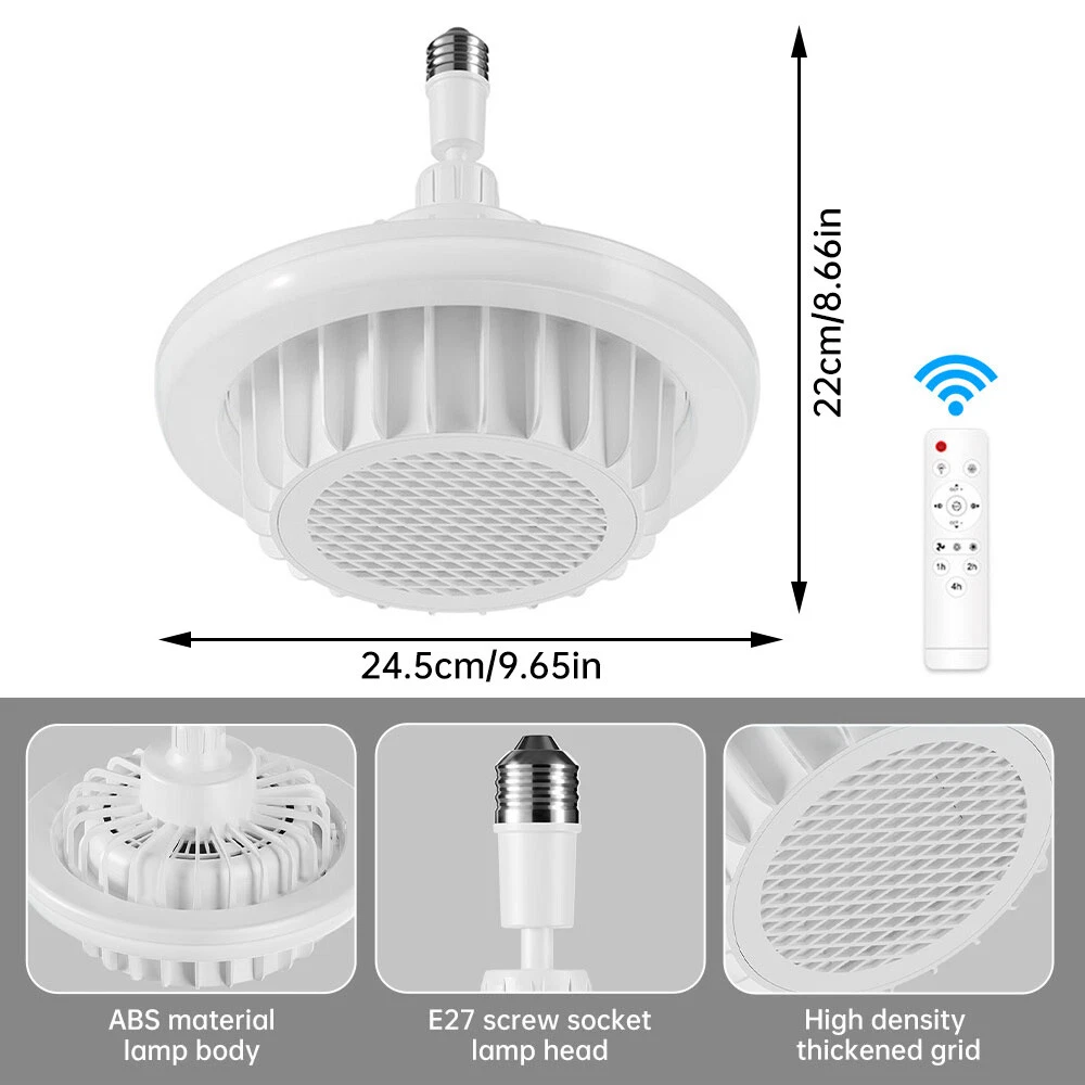 Features: 1. PTC ceramic heating, behind the small fan to blow out the hot air, heating process PTC ceramic will not turn red. 2. Safety features, temperature sensors, overheating protection, overheating will cut off the power to protect the temperature is too high, using high temperature glass lamp head. 3. Heat part of the plastic use high temperature group fuel (PBT engineering material) high temperature resistance 4. Remote control, also can switch control (divided into 5 gears: the first gear white light, the second gear warm light, the first gear three neutral light, the fourth gear warm, the fifth gear warm plus light) 5. Our ceiling fan bulbs can be used in garages, tool rooms, etc. In addition, our heating fan bulb you can adjust by remote control to meet your needs. Specification: Material: ABS+PBT+PTC Power supply: lamp-20W, heater-600W Voltage: 110-145V Lamp head model: E27 (rotatable) Light color: three-color dimming Packing List: Bathroom heater fan light *1 Remote control *1 Instruction manual *1 On Dec 6, 2024 at 02:05:16 PST, seller added the following information: