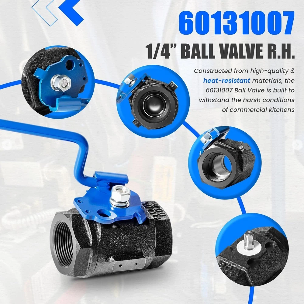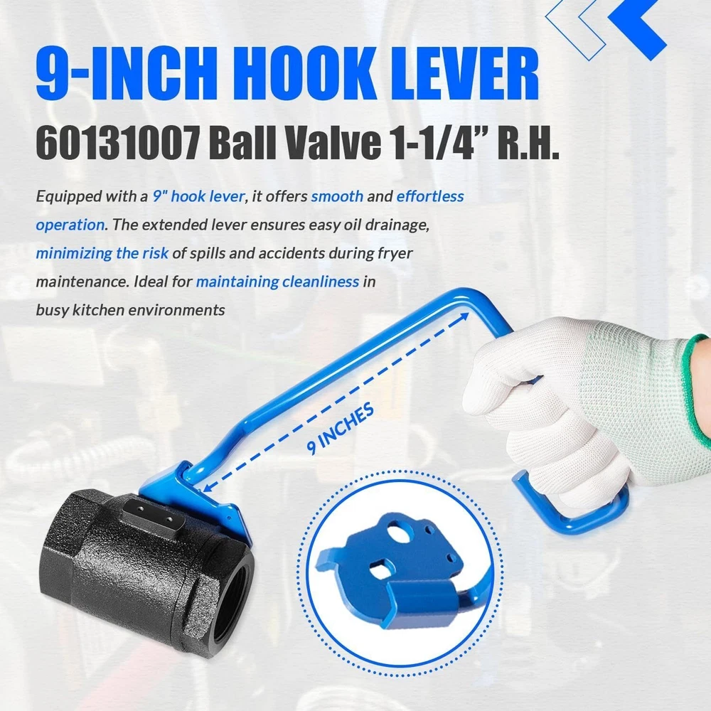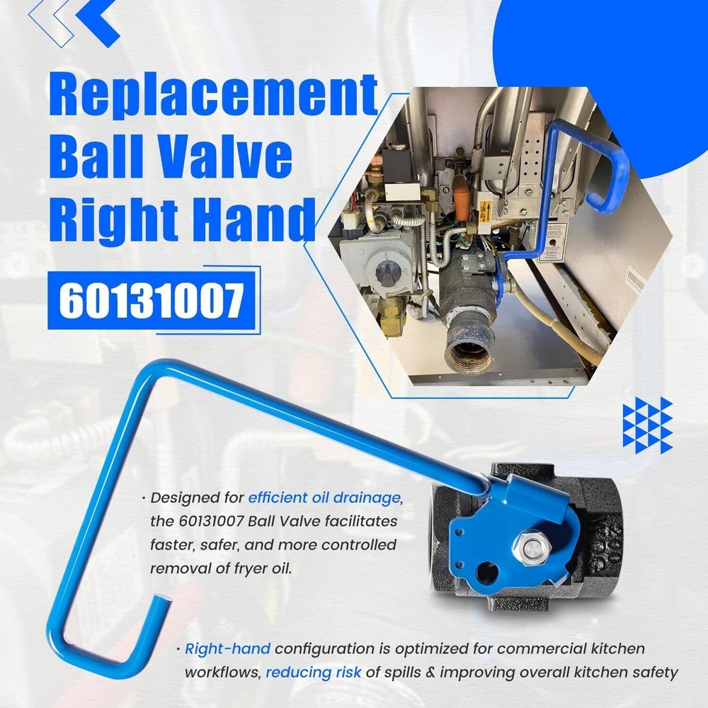 Well-design for Wide Application: The 60131007 Ball Valve 1-1/4" Right Hand is a precision-engineered replacement part, fully compatible with Pitco and Magikitchen fryers. Fit for Pitco Fryer SG14, SG14DI, SG14R, SG14RDI, SG14RS, SG14S-D, SG14T, SG14TDI, SG18, SG18DI, SG18F, SG18S, SG18S-D, SGC, SGM1824, SGM24, SGM34, SGSEBNB-14, SGSEBNB-18, SSH55, SSH75, SSH75RS. (More models are listed below) 60131007 Ball Valve, Right-hand valve 1-1/4" With 9'' Hook Lever Rod for Pitco Fryer SG14/14R, SG18/18F, SGM24/34/1824 and SSH55/75/75RS and more Well-design for Wide Application: The 60131007 Ball Valve 1-1/4" Right Hand is a precision-engineered replacement part, fully compatible with Pitco and Magikitchen fryers. Fit for Pitco Fryer SG14, SG14DI, SG14R, SG14RDI, SG14RS, SG14S-D, SG14T, SG14TDI, SG18, SG18DI, SG18F, SG18S, SG18S-D, SGC, SGM1824, SGM24, SGM34, SGSEBNB-14, SGSEBNB-18, SSH55, SSH75, SSH75RS. (More models are listed below) Easy-to-Use 9-Inch Hook Lever Design: Equipped with a 9" hook lever, the 60131007 Ball Valve offers smooth and effortless operation. The extended lever ensures easy oil drainage, minimizing the risk of spills and accidents during fryer maintenance. Ideal for maintaining cleanliness in busy kitchen environments Efficient Oil Drainage for Enhanced Safety: Designed for efficient oil drainage, the 60131007 Ball Valve facilitates faster, safer, and more controlled removal of fryer oil. Its right-hand configuration is optimized for commercial kitchen workflows, reducing the risk of spills and improving overall kitchen safety Durable Materials for Long Lifespan: Constructed from high-quality, heat-resistant materials, the 60131007 Ball Valve is built to withstand the harsh conditions of commercial kitchens. Its durable design ensures long-lasting performance, even under frequent use, reducing the need for frequent replacements Exact OEM Replacement Part: This ball valve is an exact match for the original 60131007 part used for Pitco fryers, ensuring your fryer remains compliant with manufacturer standards. Its real OEM quality guarantees reliable performance and helps maintain the safety, efficiency, and longevity of your equipment Package Included: 60131007 Ball Valve Item Specifics Brand NO-Auto Manufacturer Warranty 1 Year Manufacturer Part Number NOQP2180 Type Ball Valve Fitment 1 For Pitco Fryer SG14/14R, SG18/18F, SGM24/34/1824 Fitment 2 ForSSH55/75/75RS and more Model 60131007 Material Steel Color Blue Black Right-hand valve 1-1/4" Hook Lever Rod 9'' Item dimensions 11.42 x 6.1 x 4.33 inches Payment 1. Payment methods accepted: Payoneer . Our Payoneer account allows you to pay by credit card, debit card and your paypal balance. 2. We ship items to Your Ebay address .Please make sure your Ebay address is correct before you pay, cause it cannot be changed once the order shipped out. Shipping 1. Item will be shipped out within 1-2 business day after clear payment received. 2. Please make sure shipping address on your ebay account is correct & up-to-date. 3. All of our items are shipped from our AU warehouse. 4. Please feel free to contact us by email if you cannot get your order in time. Please read the shipment and payment detail carefully before you bid. Returns 1. Return to us within 30 days from the delivery date for exchange or refund. Refund will be given as Money back or item exchange (buyer's choice). 2. Return shipping fee is the responsibility of buyer unless the return is a result of our mistake. 3. If you need return, please contact our customer service representative, let us know the detailed problem and send us some pictures for confirmation. Contact Us Please contact us via ebay using" Contact member ". We will respond within 1 business day or less.Thank you for your understanding. Our office hours is as below : - 9:00 a.m. to 6:00 p.m. (GMT +8) of Monday to Friday - 9:00 a.m. to 1:00 p.m. (GMT +8) of Saturday And our office is closed on Sunday and public holidays. We apologize for the late reply during the holidays.Please contact us via ebay using" Contact member ". We will respond within 1 business day or less. Please include your ebay item number or order number in all communications. 60131007 Ball Valve, Right-hand valve 1-1/4" With 9'' Hook Lever Rod for Pitco Fryer SG14/14R, SG18/18F, SGM24/34/1824 and SSH55/75/75RS and more Well-design for Wide Application: The 60131007 Ball Valve 1-1/4" Right Hand is a precision-engineered replacement part, fully compatible with Pitco and Magikitchen fryers. Fit for Pitco Fryer SG14, SG14DI, SG14R, SG14RDI, SG14RS, SG14S-D, SG14T, SG14TDI, SG18, SG18DI, SG18F, SG18S, SG18S-D, SGC, SGM1824, SGM24, SGM34, SGSEBNB-14, SGSEBNB-18, SSH55, SSH75, SSH75RS. (More models are listed below) Easy-to-Use 9-Inch Hook Lever Design: Equipped with a 9" hook lever, the 60131007 Ball Valve offers smooth and effortless operation. The extended lever ensures easy oil drainage, minimizing the risk of spills and accidents during fryer maintenance. Ideal for maintaining cleanliness in busy kitchen environments Efficient Oil Drainage for Enhanced Safety: Designed for efficient oil drainage, the 60131007 Ball Valve facilitates faster, safer, and more controlled removal of fryer oil. Its right-hand configuration is optimized for commercial kitchen workflows, reducing the risk of spills and improving overall kitchen safety Durable Materials for Long Lifespan: Constructed from high-quality, heat-resistant materials, the 60131007 Ball Valve is built to withstand the harsh conditions of commercial kitchens. Its durable design ensures long-lasting performance, even under frequent use, reducing the need for frequent replacements Exact OEM Replacement Part: This ball valve is an exact match for the original 60131007 part used for Pitco fryers, ensuring your fryer remains compliant with manufacturer standards. Its real OEM quality guarantees reliable performance and helps maintain the safety, efficiency, and longevity of your equipment Package In
