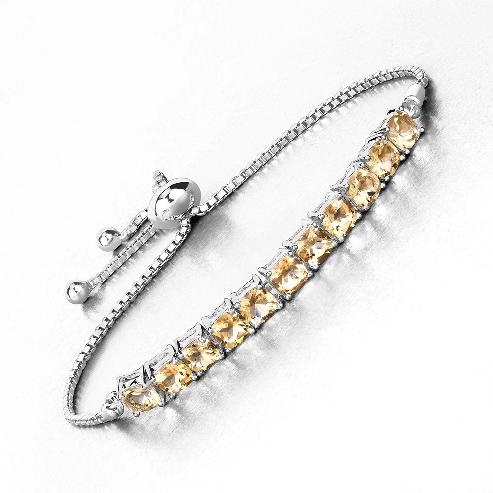 Citrine:Cushion/5.00mm 11/6.05 ctw Specifications: Gem wt. (Carat): 6.05 Gross wt. (gms): 9.76 Height: 0.18 Inches Length: 10.00 Inches Metal: .925 Sterling Silver Metal wt. (gms): 8.55 Width: 0.23 Inches