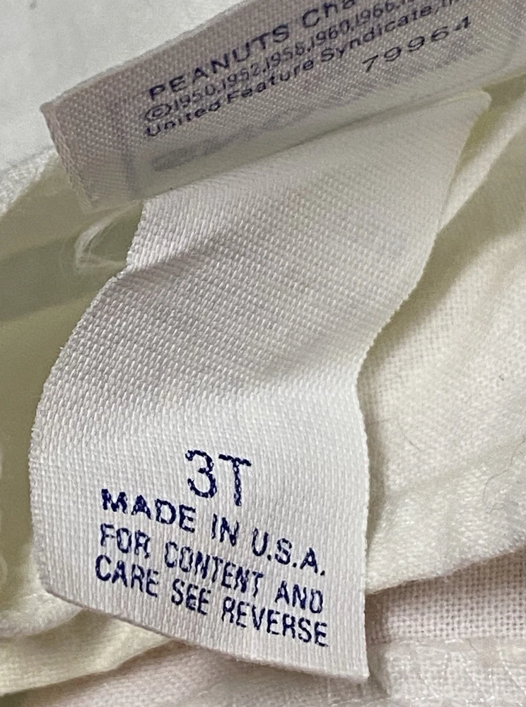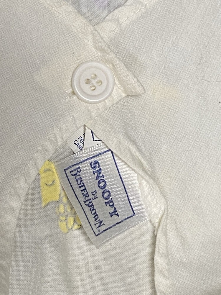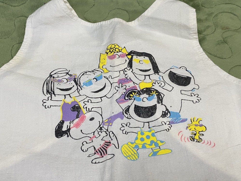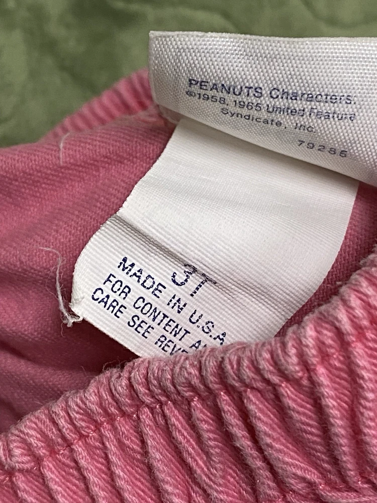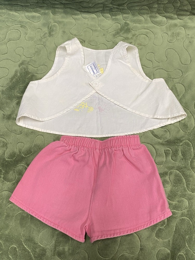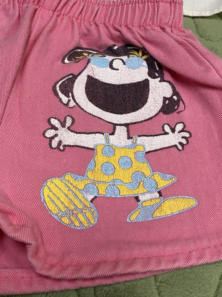 60/70s Peanuts Girls 2 piece Outfit ——- Pink Shorts featuring Lucy and a white tank top featuring the whole Peanuts crew! —— Size 3T ——- Snoopy By Buster Brown ——- Slight yellowing in the arms of the tops ——- See photos for tags and additional details.