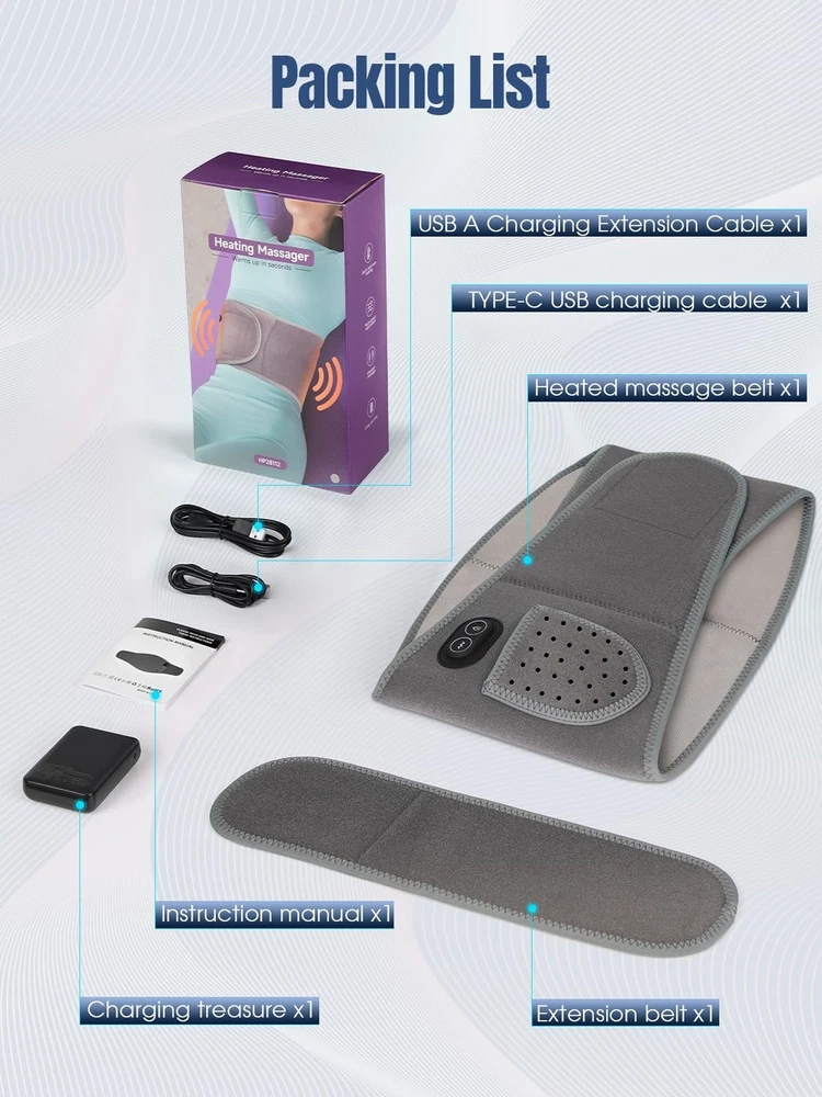 Cordless Heating Pad for Back Pain Relief,60” Large Portable Lower Back Massager with 3 Vibration and 3 Heat,Wearable Heating Pads for Cramps,8000mAh Portable Power Supply Heated Waist Belt Product Details Size: 11”x 44” Brand: Nsoela MPN: HP28112 UPC: 702602405633 EAN: 0702602405633 Special Feature: Cordless, Portable, Customizable Temperature, Dual-Motor Massage System Material: Plush Brand: Nsoela Color: Grey Item Weight: 0.91 Kilograms Package Dimensions : 9.72 x 5.98 x 3.39 inches; 2.01 Pounds Item model number : HP28112 Batteries : 1 Lithium Ion batteries required. (included) Date First Available : August 8, 2024 Manufacturer : Nsoela Country of Origin : China Intelligent Temperature Control: The heating pad for back pain relief provides customized comfort, with three heating level ranges: 40-45C, 45-55C, 55-60C, you can choose the heating temperature according to your personal preference. The heating pad also features intelligent temperature control to ensure stability and fast heating, providing instant warmth and comfort, helping to relieve sore or painful areas. Comprehensive massage: Just long press for three seconds and the device will activate. The heating pad for back is equipped with a dual-motor massage system that allows you to adjust the intensity of the three-level vibration massage. The combination of heat and vibration provides an effective solution for back pain relief, helping with discomfort in the lower back, hips, waist and abdomen. Provides a comprehensive and comfortable heating massage experience. Cordless and Portable: The portable heating pad is powered by an 8000mAh portable power bank (included), which can be used continuously for up to 3 hours even with high-performance functions. It is no longer bound by the power cord. You can use it freely when doing housework, driving or using the computer. In addition, it includes an extension cord, allowing you to switch to the adapter power cord for use at any time, without waiting for charging. Upgrade up to 60 inches: The heating pad massage is made of soft and skin-friendly plush material, combined with a fast heating film and an insulation layer to better absorb heat, effectively relieving lower back soreness and fatigue. The comfortable fabric is elastic and can be easily adjusted to better fit your waist and prevent it from slipping during use. Use the extension strap to extend the product to a maximum of 60 inches, which is flexible and suitable for most people. Comfortable Gift: This cordless heating pad combines soothing heat therapy and gentle vibration massage to relieve tension, reduce pain and provide daily comfort. Whether it is fatigue after work, outdoor activities, muscle soreness after exercise, or warmth in cold weather, our heating pad massage can provide comfort and relaxation. It is a perfect gift for Thanksgiving, Valentine's Day or Christmas, and is perfect for anyone you care about, providing warmth and comfort when they need it most.
