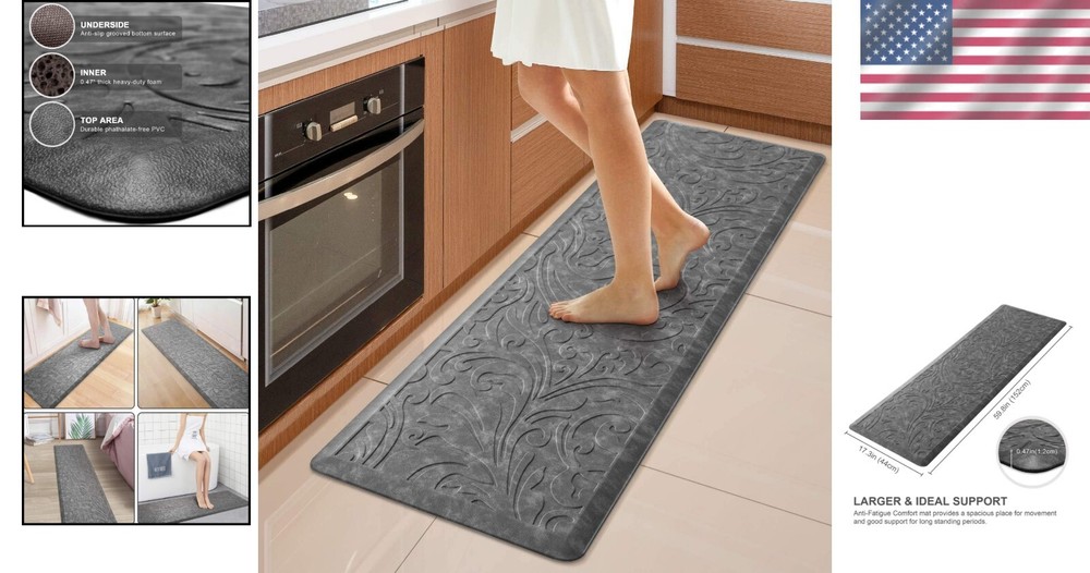 Cushioned Anti-Fatigue Kitchen Mat 60”L x 17.3”W Waterproof Non-Slip Comfort ‹ › ‹ › ‹ › ‹ › ‹ › ‹ › ‹ › ‹ › ‹ › Cushioned Anti-Fatigue Kitchen Mat Dimensions: 60”L x 17.3”W Our luxurious cushioned anti-fatigue kitchen mat is the perfect solution for anyone seeking unparalleled comfort while standing for extended periods. Ideal for the kitchen, laundry room, or office, its timeless design will complement any décor. Features: Comfort: Thick cushioned support improves circulation and posture, ensuring your comfort while cooking or working. Safe Materials: Crafted from premium PVC and thick foam; built to maintain its shape and integrity even under heavy use. Easy to Clean: Simply wipe down with a damp cloth or vacuum as needed; waterproof for long-lasting durability. Anti-Slip: Beveled edges and a non-slip bottom keep the mat securely in place, helping to prevent trips and slips. Multi-Purpose: Available in various sizes, ideal for high-traffic areas like kitchens, laundry rooms, and offices. Benefits: Enhances comfort and prevents fatigue during extended periods of standing. Stylish design that fits seamlessly with any room décor. Quick and easy maintenance ensures your mat stays looking new. Robust construction offers exceptional durability and longevity. Why choose our Cushioned Anti-Fatigue Kitchen Mat? Elevate your comfort and safety while working with our premium Cushioned Anti-Fatigue Kitchen Mat. Say goodbye to discomfort and fatigue with its thick, supportive cushioning designed to enhance your overall well-being. Its waterproof, easy-to-clean surface and non-slip base make it an essential addition to any kitchen or workspace. Experience the difference today; indulge in ultimate comfort with our luxurious kitchen mat. Order yours now! Shipping Free & Fast Shipping - We offer free shipping to most of the USA with a normal delivery time of 3-7 days. However, due to the current situation, additional delivery time (up to 3 weeks) may be required for some items. Alternative Carriers - We may use alternative carriers (e.g. USPS, FedEx, UPS, etc.) to ensure your package arrives safely and on time. Due to the use of multiple carriers, we are unable to provide a tracking number automatically. Handling Time - Orders are processed and shipped within 1-2 business days of receiving cleared payment. Shipping Restrictions - Shipping to Alaska, Hawaii, Puerto Rico, Guam, and other US territories may incur shipping charges or delivery restrictions. Please contact us before ordering, or your order can be refunded/cancelled. State Restrictions - There may be restrictions based on your state of purchase. For example, certain items may not be shipped to California due to state regulations. Contact for Tracking Updates - If you require tracking updates or have any concerns about the delivery of your order, please feel free to contact us, and we will be happy to assist you. Return 30-Day Hassle-Free Returns - We want you to be completely satisfied with your purchase. If you are not, you can return the item within 30 days of receiving it for a full refund or exchange. Easy Return Process - To start a return, simply contact us and we will provide you with a prepaid return shipping label and detailed instructions. Restocking Fee - There are no restocking fees for returns. However, the buyer is responsible for return shipping costs if the return is not due to a seller's error. Refund Processing Time - Refunds will be processed within 5 business days of receiving the returned item in its original condition. Payment We accept all major credit cards, PayPal, and Apple Pay for your convenience. Your payment information is secure and encrypted to ensure a safe and seamless transaction. Please complete your payment within 3 days of purchase to avoid any delays in shipping. Feedback Your feedback is extremely important to us. We strive to provide the best products and customer service possible. If you are satisfied with your purchase, please take a moment to leave us a positive review. If you have any concerns or issues with your order, please contact us before leaving negative feedback. We are committed to resolving any problems and ensuring your satisfaction. Contact Us If you have any questions or concerns, please feel free to reach out to our customer support team. You can contact us through the eBay messaging system. We are available Monday to Friday, 9:00 am to 5:00 pm EST, and we will do our best to respond to your inquiry within 24 hours. Buy it now and enjoy a pleasant shopping experience! UPC: Not Set Unit Quantity: 2 Room: Any Room,Kitchen,Office,Laundry Material: PVC,Foam Features: Non-Slip,Stain Resistant,Waterproof Department: Adults Theme: Not Set Brand: Unbranded Type: Rug Color: Grey Pattern: Floral Shape: Rectangle Item Width: Not Set Item Length: Not Set MPN: Not Set Model: Not Set Size: 60 x 17.3 in Style: Classic Pile Height: High Pile Regional Design: Not Set Country/Region of Manufacture: Not Set Pile Type: High Pile Weave: Machine Made Era: 21st Century (2000-Now) Unit Type: lb Personalize: Not Set Personalized: Not Set