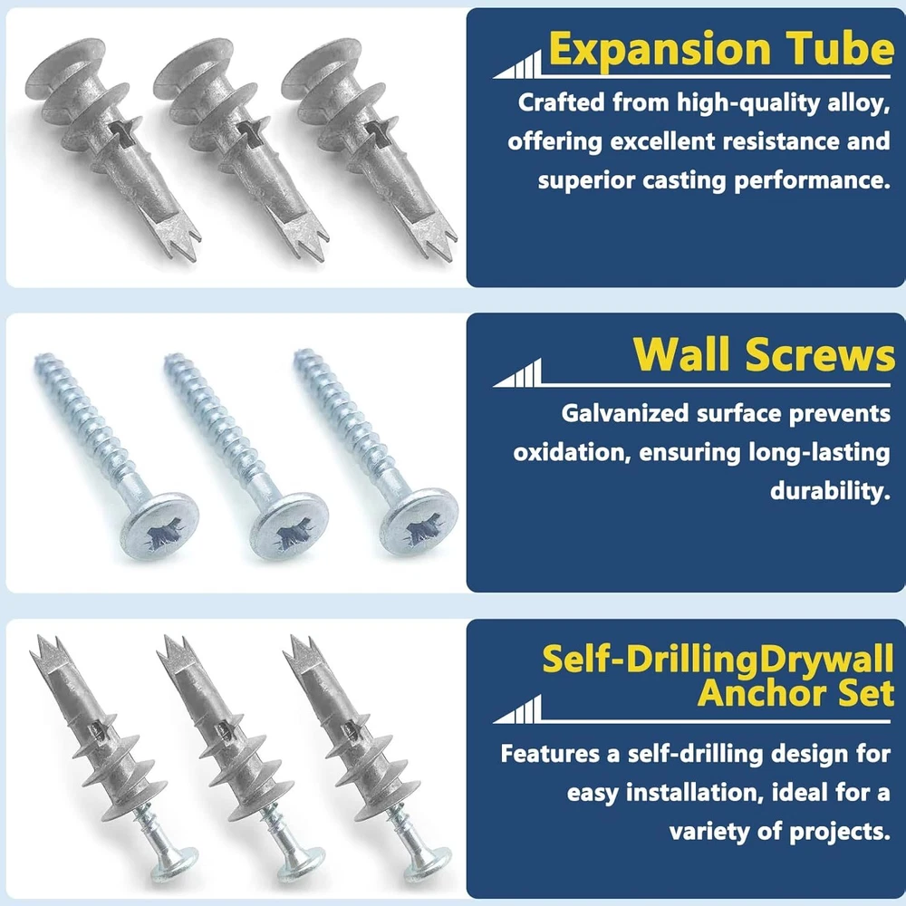 60PCS #8 Self-Drilling Drywall Anchors and Screws Kit, Heavy One Size, Silver