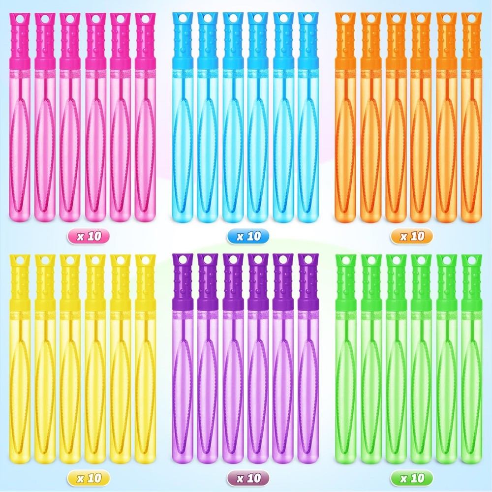 60PCS Bubble Wands for Kids,Bulk Bubble Wand for Kids Party Favor, Bubble Maker for Party Favor,Birthday,Goodie Bags, Wedding, Carnival Prizes, Summer Outdoor Toy Gifts, Assortment 6 Colors Product Details Style: 60Pcs Brand: ShyLizard MPN: SHY-25P-2ozPPB-60P UPC: Does not apply EAN: Does not apply Product Dimensions: 7 x 0.5 x 10 inches Item Weight: 11.4 pounds Country of Origin: China Manufacturer recommended age: 36 months - 16 years Manufacturer: ShyLizard Bubble Wands for Kids Party FavorEvery bubble wand come with 6 bright vibrant colors, pink, blue,orange, yellow,green and purple.No child can resist the unique charm of these bubble wand.Our super value pack included 60pack bubble soap liquid wands, great match for summer season and increase more fun to outdoor activities. Bubble Wands Bulk Assortment ToysEach bubble wand contains 2oz which can blow for a long time. Not just perfect for little hands, but fits everyone. Lots of Large bubbles come out when you wave around. It's very easy to use . These 60pcs bubble wands are neatly stored in a strong box without any leakage issues. Bubble Marker Toys for Kids Boys GirlsRecommended for small children aged 3+ year old.Made of non-toxic smelless soap solution,very safe to kidss skin and face.Easy to use, refillable, very useful and practical. Perfect bubble maker toys for kids boys and girls. Great for Themed Party FavorPerfect for party favors, baby shower parties, birthday party games, handouts, rewards or travel.Ideal party favor, weddings, ceremonies, picnics, summer camping, and all kinds of the festival,such as Valentine's Day, Easter, Halloween ,Thanksgiving Day, Christmas, New Year and so on.These bubble wands can be used for hours play, for family gatherings and outdoor activities to add more active atmosphere and novel entertainment. Ideal Gifts for Kids Party FavorBubbles for kids will make the greatest gift for boys and girls. Ideal for party favor, classroom prizes, carnival games, water party, weddings, ceremonies, picnics, summer camping, all kinds of theme parties and so on. Every kid will like these bubble wands.