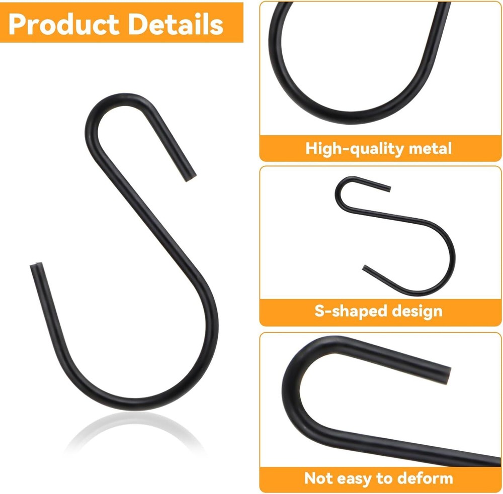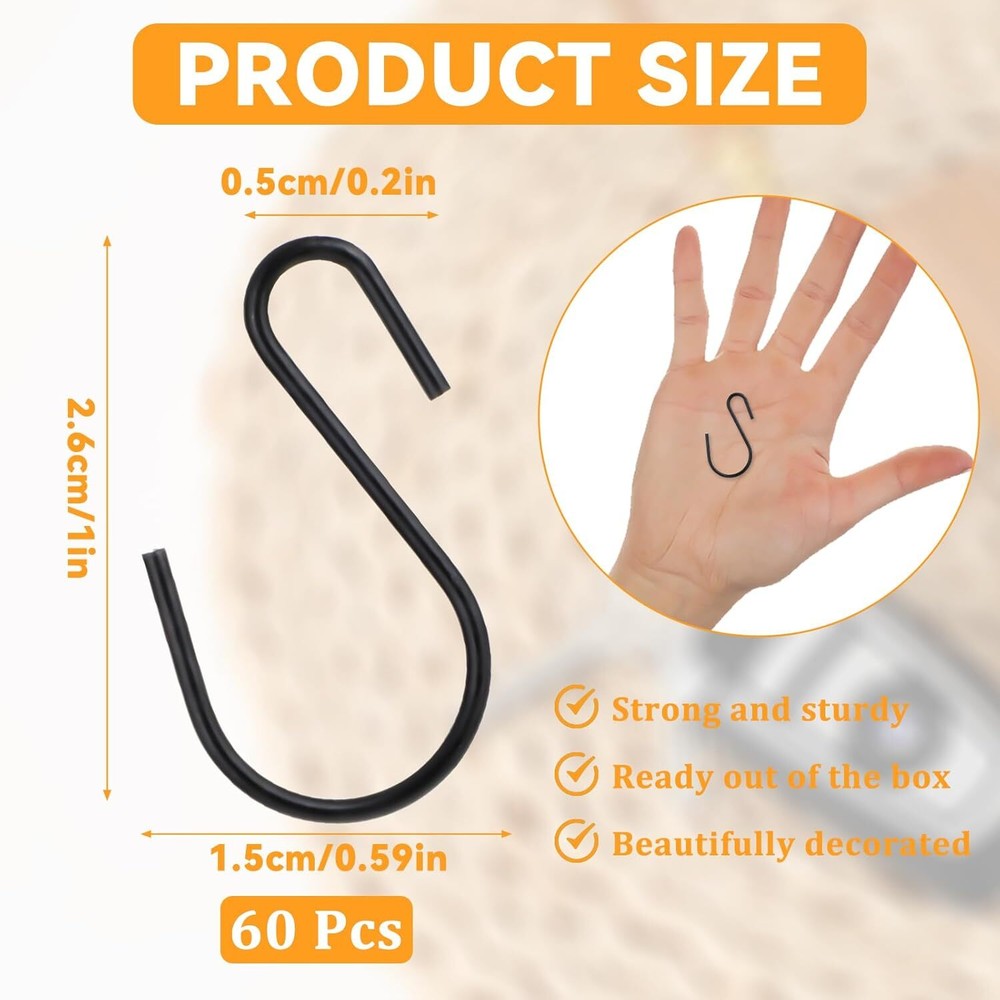 Fast Shipping On All Items 30 Days Money Guarantee Customer Support Excellent Service 100% Satisfaction Satisfaction Guaranteed 60Pcs 1 Inch Stainless Steel S Hooks, Small S Hooks for Hanging Small Metal Hooks Mini S Hooks Black, S Shaped Mini Hooks for DIY Crafts Jewellery Hanging Key Chain and Name Plate(Black) Specification Item model number 605453-SALZZ-L Part Number 605453-SALZZ-L Batteries Required? No Mounting Type Over-the-ledge/Freestanding Color Black Product Dimensions 5.91 x 3.94 x 0.75 inches Item dimensions L x W x H 5.91 x 3.94 x 0.75 inches Item Weight 1.13 ounces Number of Hooks 60 3.94 inches x 5.91 inches x 0.75 inches. Weight: 1.13 oz Item Description 【Package Contents】You will receive 60 pieces mini s hooks, the size is 26 x 15mm (L × W), suitable size, compact, and portable, can be taken anywhere, these mini ornament storage hooks are perfect for maximizing your storage space. 【Sturdy Hooks】The mini s hook made of high-quality metal iron is sturdy and durable. The exterior is treated with coloring and oxygen barrier coating, which are not easy to rust and corrosion resistant, reliable, and stable. 【No Installation Required】These little S hooks come ready to use right out of the box and require no installation. Their flexible design allows you to bend and adjust them as needed, ensuring a secure fit. Adjustable openings make it easy to secure and hang a variety of items. 【Ornament Hooks】These mini s hooks are suitable for festival decoration, such as Christmas tree present bags, lanterns, Christmas balls, and other Christmas tree decorations; They can also hang lanterns, jewelry, ornaments, tree lighting, or outdoor garden small items, add beauty to home decorations. These mini hooks are ready to meet all your ornament needs. 【Wide Applications】From hanging pictures and keys to organizing your wardrobe and office space, these mini versatile hanging hooks have countless uses. The space-saving design of these mini S hooks is perfect for bedrooms, dens, bathrooms, garages, and more, allowing your creativity to flow and enjoy the convenience of an organized and tidy environment. About us We offer the best prices around on high quality products. Our E-store includes media such as books, movies, music and games while offering electronics, toys, sporting apparel, clothing, tools, general home, garden items and more. Shipping We are always working hard to ensure your package arrives as soon as possible. Please understand that some factors like weather, high postal traffic, and the performance of shipping companies are outside of our control. We offer free shipping to the lower 48 states and ship within 2-3 business days of payment, usually sooner. We do not accept P.O. Boxes. Please provide a physical address. For shipping outside of the continental USA, we only use eBay's Global Shipping Program.The item is shipped to KY and then sent to the rest of the world. International customers are responsible for all duties and taxes. Continue to check out to calculate costs for shipping the item to your country. Messages regarding eBay's Global Shipping Program MUST be directed at eBay EXCLUSIVELY. Returns We offer a 30-Day Return Policy on items in which you are not completely satisfied with. You have the option of a full-refund or an exchange of the item. No returns are available on items shipped outside of the USA Satisfaction We try over very best to make sure every customer is completely satisfied. If there's a problem, message us! We're happy to help. Payment Options Shop With Confidence