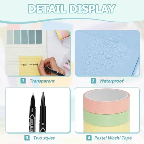 Mainul Extension 60 Pcs Aesthetic Book Annotation Kit Pencil Case with Highlighter Gel Pen Mechanical Pencil 1220 Sheets Transparent Sticky Notes Tabs Mini Office Supply Stationery for School(Light Green) Spacious Storage Pen Case: ideal for students and professionals alike, our cute pen case offers capacious storage, measuring about 9.45 x 4.33 x 1.38 inches/ 24 x 11 x 3.5 cm; Crafted with quality polyester material, sturdy and foldable, convenient for storage and carry, you can put other item on it for the package; It's an organizational tool catering to your writing needs 12 Colors Highlighters: the package includes 12 annotation highlighters, they have flat barrel with chisel tip, comfortable and easy to hold, water based ink, dries quickly, highlighter colors are soft, suitable for broad highlighting or fine underlining; Highlighting your important points without the harshness of conventional highlighters Smooth Writing Experience: the package also includes 5 gel pens,3 Markers,3 pieces 0.5mm mechanical pencils, 3 pieces 0.7mm mechanical pencils with 4 box of mechanical pencils refills and 4 Erasers; These pens and pencils can write smoothly and dispensing ink evenly, not fade or smudge easily; It is designed to ensure you jot down your thoughts efficiently and comfortably Quality PET Notes: conveniently packaged in an aesthetic design, the 500 sheets of transparent sticky notes, and 720 pieces of sticky tabs are made from quality PET material which is waterproof, reliable, not easy to fade and tear; The design makes the appearance transparent and will not hide your notes, notes are also not to be left on the page, you can write the message and paste our notes according to your needs; It also includes 5 magnetic bookmarks to keep tracks of your readings Multipurpose Stationery Set for Everyday Use: whether you need markers for presentations, mechanical pencils for sketching, Easy to store office supplies, or erasers for correcting mistakes, this package has it all; Not just confined to schools, these aesthetic stationery supplies can also double up as a mini office kit; This set can transform into a book annotation kit, making it suitable for both adults and children Free Shipping We offer FREE shipping on all orders! We ship within 5 business days, usually sooner. We use shipping services like: ePacket, USPS, China Registered Air Mail Post for faster shipping: UPS, FedEx, DHL (at extra cost) Please contact us for more details about shipping services that we provide. Return You can return a product for up to 30 or 60 days (Mentioned in the product listing) from the date you purchased it. Any product you return must be in the same condition you received it and in the original packaging. Please keep the receipt. Payment We only accept payment from eBay managed payments. Please pay as soon as possible after winning an auction, as that will allow us to post your item to you sooner! PS: We only ship orders after the payment complete. Customer satisfaction is very important to us. If you have any problem with your order, please contact us and we will do our best to make you satisfied. Please visit our eBay store to check out other items for sale! Thank you for your visite to our store.