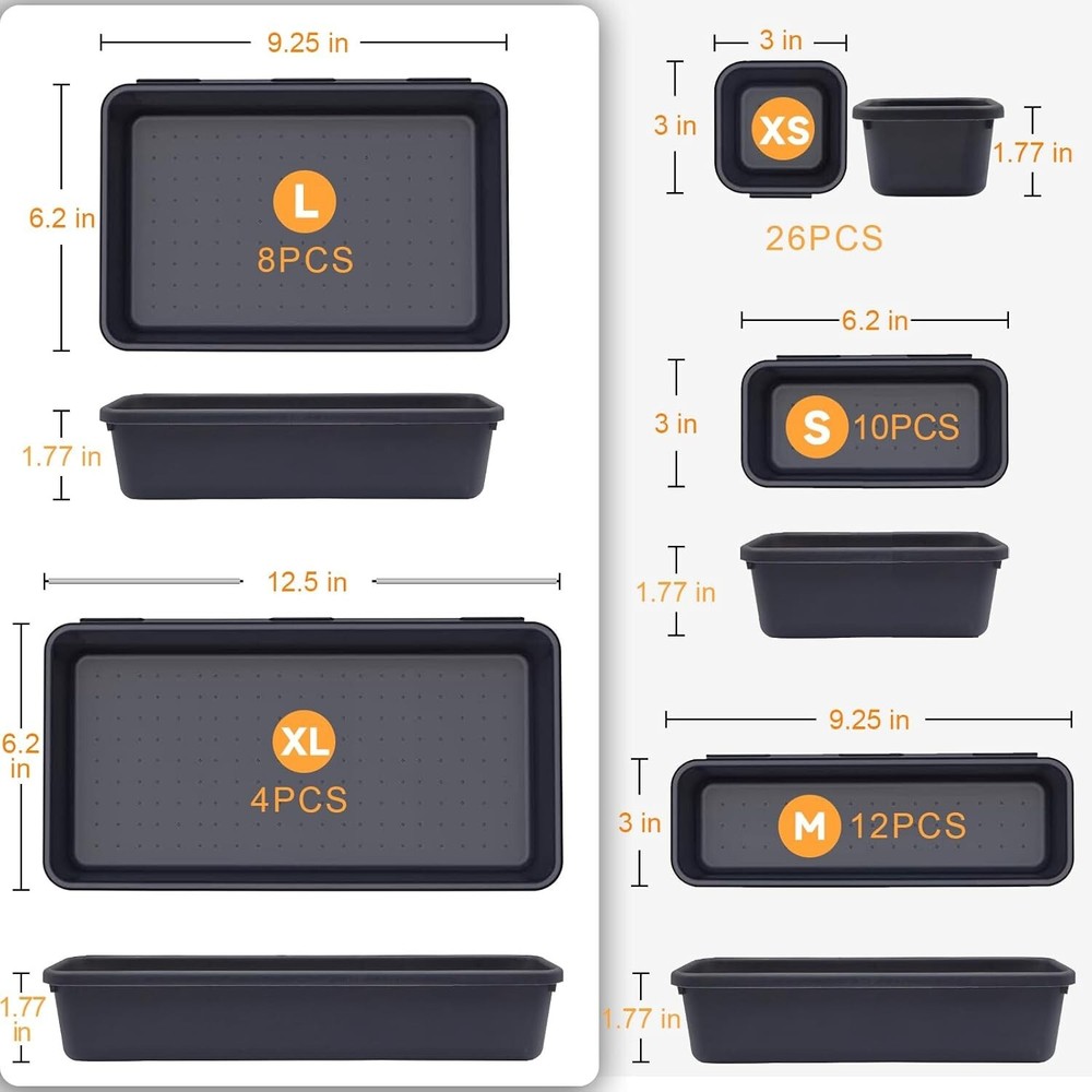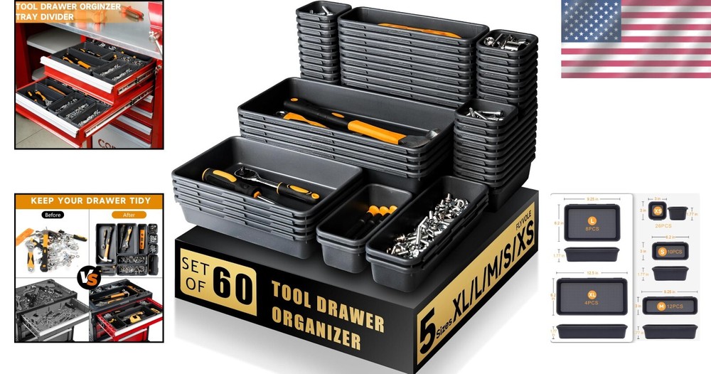 Tool Box Organizer Plastic Storage Tray Set 60 pcs for Tools and Parts ‹ › ‹ › ‹ › ‹ › ‹ › ‹ › ‹ › ‹ › ‹ › Tool Box Organizer Plastic Storage Tray Set - 60 pcs Enhance your storage solutions with our expertly crafted Tool Box Organizer, featuring an impressive array of trays designed for efficiency and elegance. Perfect for both professional tradespeople and DIY enthusiasts, this 60-piece set meets all your organizational needs for tools and small parts. Features: 60 Pack & 5 Sizes: Includes 60 trays of varying sizes: 4 x XL (12.5x6.2x1.77in), 8 x L (9.25x6.2x1.77in), 12 x M (9.25x3x1.77in), 10 x S (6.2x3x1.77in), and 26 x XS (3x3x1.77in). Quality: Crafted from high-quality, solid plastic, our organizer is designed for durability and efficient storage of tools and small components. Interlocking Design: The innovative interlocking feature allows you to customize your storage space. Use trays separately or interlock them to create a streamlined organizational system. Desk Drawer Organizer: Perfect for storing hand tools like screwdrivers, wrenches, claw hammers, and more. Its upgraded larger size significantly outperforms standard dividers in functionality. Wide Application: Ideal for various settings including office drawers, garages, and craft spaces, adding organization and elegance to your workspace. Why choose our Tool Box Organizer? Are you ready to meet the pinnacle of organization and design? Our Tool Box Organizer is not just a storage solution; it’s a step towards achieving a clutter-free environment. The combination of five distinct sizes allows you to maximize your space, making it versatile for any setting. Enjoy the durability and adaptability of high-quality plastic while elevating your workspace. Transform chaos into order today, and experience the luxury of a well-organized toolbox - order your Tool Box Organizer Plastic Storage Tray Set now! Shipping Free & Fast Shipping - We offer free shipping to most of the USA with a normal delivery time of 3-7 days. However, due to the current situation, additional delivery time (up to 3 weeks) may be required for some items. Alternative Carriers - We may use alternative carriers (e.g. USPS, FedEx, UPS, etc.) to ensure your package arrives safely and on time. Due to the use of multiple carriers, we are unable to provide a tracking number automatically. Handling Time - Orders are processed and shipped within 1-2 business days of receiving cleared payment. Shipping Restrictions - Shipping to Alaska, Hawaii, Puerto Rico, Guam, and other US territories may incur shipping charges or delivery restrictions. Please contact us before ordering, or your order can be refunded/cancelled. State Restrictions - There may be restrictions based on your state of purchase. For example, certain items may not be shipped to California due to state regulations. Contact for Tracking Updates - If you require tracking updates or have any concerns about the delivery of your order, please feel free to contact us, and we will be happy to assist you. Return 30-Day Hassle-Free Returns - We want you to be completely satisfied with your purchase. If you are not, you can return the item within 30 days of receiving it for a full refund or exchange. Easy Return Process - To start a return, simply contact us and we will provide you with a prepaid return shipping label and detailed instructions. Restocking Fee - There are no restocking fees for returns. However, the buyer is responsible for return shipping costs if the return is not due to a seller's error. Refund Processing Time - Refunds will be processed within 5 business days of receiving the returned item in its condition. Payment We accept all major credit cards, PayPal, and Apple Pay for your convenience. Your payment information is secure and encrypted to ensure a safe and seamless transaction. Please complete your payment within 3 days of purchase to avoid any delays in shipping. Feedback Your feedback is extremely important to us. We strive to provide the best products and customer service possible. If you are satisfied with your purchase, please take a moment to leave us a positive review. If you have any concerns or issues with your order, please contact us before leaving negative feedback. We are committed to resolving any problems and ensuring your satisfaction. Contact Us If you have any questions or concerns, please feel free to out to our customer support team. You can contact us through the eBay messaging system. We are available Monday to Friday, 9:00 am to 5:00 pm EST, and we will do our best to respond to your inquiry within 24 hours. Buy it now and enjoy a pleasant shopping experience! Item Width: Tool Box Organizer Item Length: Tool Box Organizer Item Height: Tool Box Organizer Item Diameter: 12.6 Item Weight: 10 Unit Quantity: 1 Features: Adjustable,Interlocking Design,Customizable Storage,Durable,Separatable Trays Type: Tool Storage Bin Number of Items: 60 Material: Plastic Number of Drawers: 0 Size: Large Capacity: 10 lb Color: Multicolor Finish: Glossy Unit Type: Unit