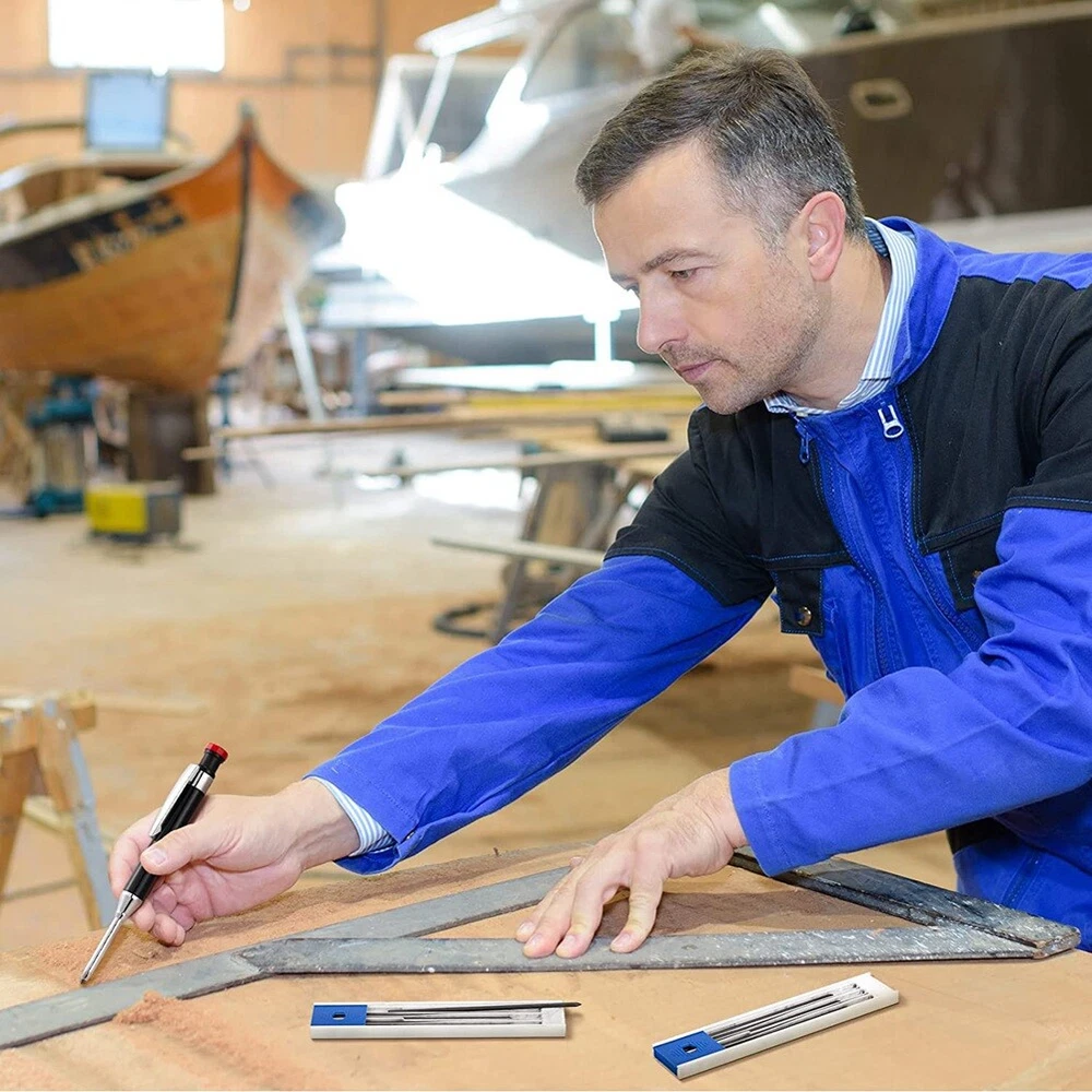 60Pieces 2.8 mm Solid Carpenter Pencil Refills for Woodworking Mechanical1621 What you receive: You get a total of 60 solid color woodworking pencils set, simple colors, you can use these woodworking pencils for a long time and share with your colleagues Graphite material: Woodworking marker pencils are mainly made of high-quality graphite, with good writing experience, waterproof and not easy to break, which can meet your needs Practical features: These woodworking pencils are solid, can replace ordinary pencils for woodworking, easy to record on the board, very practical Reasonable Size: Woodworking Pencil Set is reasonable size, about 2.8mm/0.1inch in diameter and 120mm/4.7inch in length SUITABLE FOR MULTIPLE OCCASIONS: You can use our woodworking pencils for different occasions such as wood, jewelry, glass, carving, crafts, metal, as well as for writing, drawing and drafting color:Blue Material:plastic Package Contents: 60 x carpenter pencils
