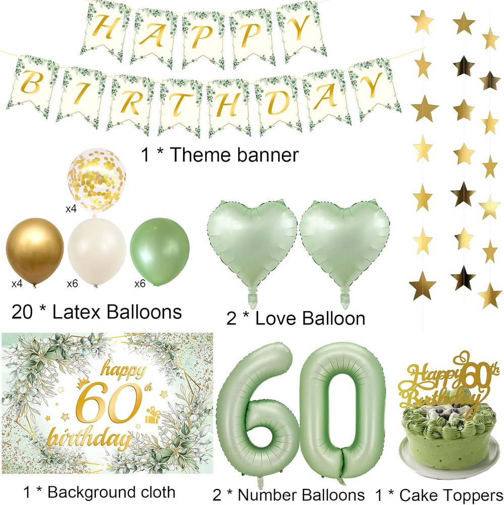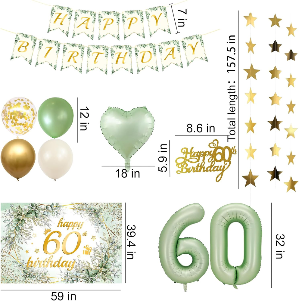 Store New Arrivals Add to Favorite View Feedback Contact Fast deliveries to the customer's home Quality customer service John Make the customers happy! 60Th Birthday Decorations Women Banner - 21 Pcs Sage Green Happy Birthday Banner Gold Cake Topper Number 60 Latex Balloons Star Swirls for Vintage 60 Year Old Birthday Party Retirement Decor Description Decorations Includes: 1 happy birthday banner, 1 cupcake topper, golden star swirl(4m), 1 number 60 balloon, 1 backdrop, 2 heart foil balloon, 4 gold confetti balloons, 16 latex balloons, perfect decorations, bring you a unique and wonderful party Premium Material: 60th birthday banner is made of thick cardboard, durable. The balloons are made of high-quality foil and durable latex, sturdy and reusable. Supported with air or helium, stay inflated for a long time Easy To Use: The 60th birthday decor are designed to be simple and quick. Simply hang the hanging banner around the birthday party space, just hang it on the wall, window, gift table, tree branch, and other places you like, create a party atmosphere 60th Birthday Design: Add the finishing touch to your 60th birthday party with our sage green 60th birthday party decorations. It includes a "Happy Birthday" banner, sparkling gold heart swirls and more sparkly designs to create a vibrant atmosphere Applicable Scenarios: Suitable for your 60th birthday party, retirement party, family dinner, outdoor activities, etc. The 60th birthday swirl can meet your various decoration needs and can also be used as a background for taking pictures Product description Celebrate 60 years with this 21-piece sage set. Perfect for vintage or retirement parties! Item model number Weiten-PD230000123 Unit Count 1.0 Count Color Sage Green Pattern Gold and Sage Green Product Dimensions 70 x 12 x 12 inches Material Aluminum Foil, Cardboard, Latex Item Weight 9.6 ounces Theme Birthday Manufacturer recommended age 18 months and up Occasion Birthday, Celebration, Family gatherings, Party Included Components Banner,swirls,backdrop,cake topper ABOUT US We offer the best prices around on high quality products. Our E-store includes media such as books, movies, music and games while offering electronics, toys, sporting apparel, clothing, tools, general home, garden items and more. SHIPPING We are always working hard to ensure your package arrives as soon as possible. Please understand that some factors like weather, high postal traffic, and the performance of shipping companies are outside of our control. We offer free shipping to the lower 48 states and ship within 2 business days of payment, usually sooner. We do not accept P.O. Boxes. Please provide a physical address. For shipping outside of the continental USA, we only use eBay's Global Shipping Program. The item is shipped to KY and then sent to the rest of the world. International customers are responsible for all duties and taxes. Continue to 'check out' to calculate costs for shipping the item to your country. Messages regarding eBay's Global Shipping Program MUST be directed at eBay EXCLUSIVELY. RETURNS We offer a 30-Day Return Policy on items in which you are not completely satisfied with. You have the option of a full-refund or an exchange of the item. No returns are available on items shipped outside of the USA PAYMENT We accept PayPal. CONTACT US This page content is yet to come Please ad us to your favorite seller and visit again later Thank You CUSTOMER SATISFACTION We try our very best to make sure every customer is completely satisfied. If there's a problem, message us! We're happy to help. WE ACCEPT
