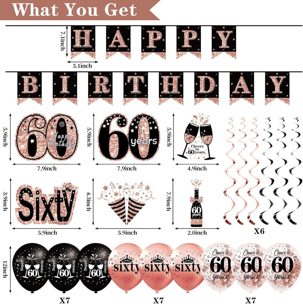 Store New Arrivals Add to Favorite View Feedback Contact Fast deliveries to the customer's home Quality customer service John Make the customers happy! 60Th Birthday Decorations for Women, 33Pcs Black Rose Gold Happy 60Th Birthday Banner Crown and Sash Balloons Backdrop Hanging Swirls Paper Fans, 60 Years Old Party Supplies Kit Description 60th birthday decorations for women: Celebrate in style with Uiorgui 60th birthday decor, featuring a complete 33 pieces set including a crown, sash, banner, backdrop, 21 latex balloons, 6 hanging swirls, and 2 paper fans for a 60 birthday party 60th birthday women decorations: Easy to assemble and suit for various settings. 60 years old birthday decorations serve as good backdrops and props for photoshoots, ensuring your special moments are beautifully captured Happy 60th birthday decorations kit: The sparkling design of 60th birthday crown and sash suits women of all body shapes, makes the sixty birthday protagonist shine in the party Rose gold 60th birthday decorations: Create a warm and elegant atmosphere with our womens 60th birthday party decorations. Cheers to 60 years 60th birthday gifts women: Looking for the gift for sixty years old women? This 60 th birthday decorations set makes a elaborate gift for your female friends, wife, mom, or loved one Product Description Video Show of Women's 60th Birthday Party Decorations The video showcases the product in use. The video guides you through product setup. The video compares multiple products. The video shows the product being unpacked. Black Rose Gold 60th Birthday Decorations Kit Package Includes Details of 60th Birthday Crown and Sash Happy 60th Birthday Balloons & Banner & Hanging Swirls Uiorgui 60th Birthday Decorations Add to Cart Add to Cart Add to Cart Add to Cart Add to Cart Price $23.69 $ 23 . 69 $9.99 $ 9 . 99 $16.99 $ 16 . 99 $14.99 $ 14 . 99 $8.99 $ 8 . 99 for 60th Birthday ✔ ✔ ✔ ✔ ✔ Assembly Required ✔ ✘ ✔ ✔ ✘ Color Black Rose Gold Black Rose Gold Black Rose Gold Black Gold Black Gold Target Audience Women Women Women Women/ Men Women/ Men Decoration Type 60th Birthday Decorations Kit 60th Birthday Greeting Card 60th Birthday Decorations Kit 60th Birthday Decorations Kit 60th Birthday Greeting Card Item model number CR32452 Unit Count 1.0 Count Style Black Rose Gold 60th Color Black Rose Gold Pattern Rose Gold and Black Letter Print Product Dimensions 8.45 x 6.5 x 2.35 inches Material Polyester, Paper, latex Country of Origin China Theme 60th Birthday Item Weight 14 ounces Shape 60th Birthday Manufacturer recommended age 12 months and up Occasion Birthday Cartoon Character 60th Birthday Women Included Components Hanging Swirls, Paper Fans, Crown Sash, Banner Backdrop, Latex Balloons ABOUT US We offer the best prices around on high quality products. Our E-store includes media such as books, movies, music and games while offering electronics, toys, sporting apparel, clothing, tools, general home, garden items and more. SHIPPING We are always working hard to ensure your package arrives as soon as possible. Please understand that some factors like weather, high postal traffic, and the performance of shipping companies are outside of our control. We offer free shipping to the lower 48 states and ship within 2 business days of payment, usually sooner. We do not accept P.O. Boxes. Please provide a physical address. For shipping outside of the continental USA, we only use eBay's Global Shipping Program. The item is shipped to KY and then sent to the rest of the world. International customers are responsible for all duties and taxes. Continue to 'check out' to calculate costs for shipping the item to your country. Messages regarding eBay's Global Shipping Program MUST be directed at eBay EXCLUSIVELY. RETURNS We offer a 30-Day Return Policy on items in which you are not completely satisfied with. You have the option of a full-refund or an exchange of the item. No returns are available on items shipped outside of the USA PAYMENT We accept PayPal. CONTACT US This page content is yet to come Please ad us to your favorite seller and visit again later Thank You CUSTOMER SATISFACTION We try our very best to make sure every customer is completely satisfied. If there's a problem, message us! We're happy to help. WE ACCEPT