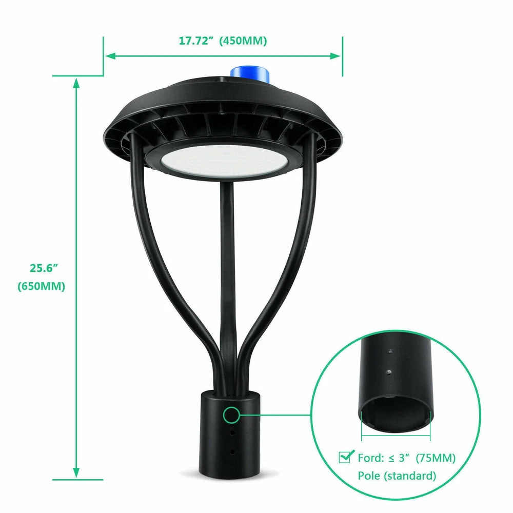 Product Description 60W LED Post Top Light Dusk to Dawn Security Light IP65 Waterproof Circular Lamp Easy to Install & Quality Certified: Via ETL DLC certified led post top area lighting fixtures are easy to install the post light and transform mount for Arm pole mounting with most adapter. Powerful Support & Energy Efficient: Our led post top lights pole mounting supports fit a 2 3/8-inch OD tenon & 3 inch pole(75mm). Besides, this led post top lamp support AC100-277V high-voltage current input, save up to 90% of electricity costs. PHOTOCELL ENABLED - LED Post Top Light comes with a dusk-to-dawn photocell sensor which detects ambient light and powers the LED on/off automatically. Energy up to 90% and make it great use for commercial lighting, gardens, courtyards, commercial street, roads, porches, school roads etc. High Heat Dissipation & Long Durable: This led post top pole lights used IP65 waterproof rating for all weather conditions-pure, aluminum die-cast housing provides excellent heat transfer, extending component life and preventing damage, low cost maintenance, great for outdoor applications such as city expressway, trunk road, factories, schools, garden, parking lots light, public parks etc. Super Bright & High Quality: This pole lights fixture have 120°beam angle,135lm/w SMD 3030 LED chips, total 8400 lumen, produces up to 135 lumen per watt, compared to other high pressure sodium lamps, high intensity discharge lamps, it's improved light utilization and uniformity, have a lifetime of 50,000 hours, environmentally friendly and energy efficient, save your money. 5 Year Warranty: We provide customers 5 year warranty and replacement within 30 days, but if our led post top pole lights does not work for some reason, please let us know that we respond within 24/7 hours. Feature: 1.Energy-saving, No UV or IR radiation. 2.Anti-shock, anti-moisture, no glare, no strobe light, protecting your eyes. 3.High intensity and stability, no maintenance cost. 4. Using high quality LED chips. 5.Universal voltage AC100-277V. 6.High Power Factor >0.9, Low THD Driver. 7.100% Die-cast aluminum gasketed enclosure. 8.Protective powder coating for lasting appearance. 9.IP65 rating for outdoor use. Note:Pole not including in package Product List 3* mounting tube 1* lamp 1* extending component 1* pack of mounting screws 1* Photocell sensor Specification: Rated Wattage:60W Base:2 Pins Wire Beam Angle: 120 ° Replace: MH 250W IP Rating: IP65 PF:>0.95 Shape :Circular led post top light Material :Metal Voltage :120 Volts Special Features :Instant On Shade Material :Metal Light Direction :Downlight Power Source :Air-powered Type of Bulb :LED LED quantity:60Pcs Luminous Flux :8100 Lumen Color Temperature :5000 Kelvin Customer feedback using the garden light section to show,Courtyard, park, ECT Easy to Install & Quality Certified: Via ETL DLC certified led post top area lighting fixtures are easy to install the post light and transform mount for Arm pole mounting with most adapter. Powerful Support & Energy Efficient: Our led post top lights pole mounting supports fit a 2 3/8-inch OD tenon & 3 inch pole(75mm). Besides, this led post top lamp support AC100-277V high-voltage current input, save up to 90% of electricity costs. PHOTOCELL ENABLED - LED Post Top Light comes with a dusk-to-dawn photocell sensor which detects ambient light and powers the LED on/off automatically. Energy up to 90% and make it great use for commercial lighting, gardens, courtyards, commercial street, roads, porches, school roads etc. High Heat Dissipation & Long Durable: This led post top pole lights used IP65 waterproof rating for all weather conditions-pure, aluminum die-cast housing provides excellent heat transfer, extending component life and preventing damage, low cost maintenance, great for outdoor applications such as city expressway, trunk road, factories, schools, garden, parking lots light, public parks etc. Super Bright & High Quality: This pole lights fixture have 120°beam angle,135lm/w SMD 3030 LED chips, total 8400 lumen, produces up to 135 lumen per watt, compared to other high pressure sodium lamps, high intensity discharge lamps, it's improved light utilization and uniformity, have a lifetime of 50,000 hours, environmentally friendly and energy efficient, save your money. 5 Year Warranty: We provide customers 5 year warranty and replacement within 30 days, but if our led post top pole lights does not work for some reason, please let us know that we respond within 24/7 hours. Feature: 1.Energy-saving, No UV or IR radiation. 2.Anti-shock, anti-moisture, no glare, no strobe light, protecting your eyes. 3.High intensity and stability, no maintenance cost. 4. Using high quality LED chips. 5.Universal voltage AC100-277V. 6.High Power Factor >0.9, Low THD Driver. 7.100% Die-cast aluminum gasketed enclosure. 8.Protective powder coating for lasting appearance. 9.IP65 rating for outdoor use. Product List 3* mounting pole 1* lamp 1* extending component 1* pack of mounting screws 1* Photocell sensor Specification: Rated Wattage:60W Base:2 Pins Wire Beam Angle: 120 ° Replace: MH 250W IP Rating: IP65 PF:>0.95 Shape :Circular led post top light Material :Metal Voltage :120 Volts Special Features :Instant On Shade Material :Metal Light Direction :Downlight Power Source :Air-powered Type of Bulb :LED LED quantity:60Pcs Luminous Flux :8100 Lumen Color Temperature :5000 Kelvin Customer feedback using the garden light section to show,Courtyard, park, ECT About Us Payment Shipping Returns Contact Us SHENZHEN NUOGUAN TECHNOLOGY CO. LTD founded in 2010. We are high-technology comany specialized in manufacture Commercial and industrial LED light. Advanced production equipment and excellend R&D ability help us to combining service ,production sell together provide top-level products to our customers. 1. Payment is expected within 7 days of auction close. Or Unpaid Items will be forfeited per eBay . 2. Taxes may be applicable at checkout as st