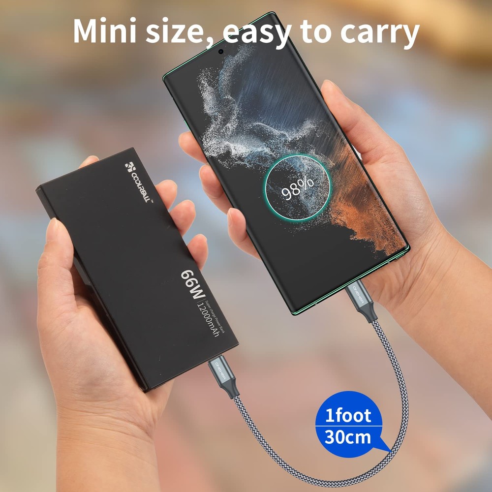60W Fast Charging USB C to USB C Cable Nylon Braided 1Ft 3 Pack