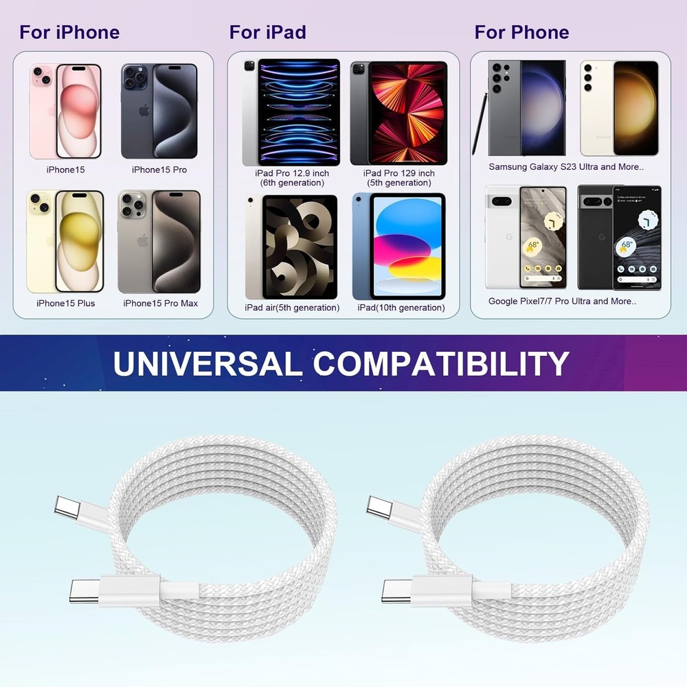 60W USB C to C Gray Braided Charging Cable 10ft,ipad 10th 2Pack 10FT Product Details Package Dimensions : 6.42 x 4.17 x 0.94 inches; 3.53 ounces Item model number : FDHGFUIJHFGHSDF34 Manufacturer : Jahomwire Country of Origin : China Brand: Jahomwire Connector Type: USB Type C Cable Type: USB Compatible Devices: iPad Pro 12.9, iPad Pro 11 inch, 2021/2020/2018 iPad Pro 12.9 Gen 5/4/3, iPad Pro 11 Gen 3/2/1, iPad Air 4, Google Pixel 6/6 Pro/5/4 XL/3a XL/3/XL/2. 60W Type C fast charging cord long USB C charge cable for Apple iPhone 15/iPhone 15 Pro Max/iPhone 15 Pro/iPhone 15 Plus iPad Pro 12.9, iPad Pro 11 inch, 2021/2020/2018 iPad Pro 12.9 Gen 5/4/3, iPad Pro 11 Gen 3/2/1, iPad Air 4, Google Pixel 6/6 Pro/5/4 XL/3a XL/3/XL/2. 60W Type C fast charging cord long USB C charge cable for Apple iPhone 15/iPhone 15 Pro Max/iPhone 15 Pro/iPhone 15 PlusiPad Pro 12.9, iPad Pro 11 inch, 2021/2020/2018 iPad Pro 12.9 Gen 5/4/3, iPad Pro 11 Gen 3/2/1, iPad Air 4, Google Pixel 6/6 Pro/5/4 XL/3a XL/3/XL/2. 60W Type C fast charging cord long USB C charge cable for Apple iPhone 15/iPhone 15 Pro Max/iPhone 15 Pro/iPhone 15 Plus See more Special Feature: High Speed 【60W USB C High Power Delivery】60W USB C to C Gray Braided charging cable Quickly charges most USB-C laptops, tablets, and cell phones up to 60% in just 30 minutes for Apple iPhone 16 iPhone 15 series/iPad series, is the 10th generation charger for ipad.Supports 480Mbps high-speed data synchronization and withstands daily wear and tear to ensure long-lasting performance. 【Universal Compatibility】Our USB-C to USB-C cable provides high-speed charging for Type-C for iPhone 15/iPhone 15 Pro/iPhone 15 Promax/iPhone 15 Plus/for MacBook Pro,for iPad Pro 2020 /2019/2018 and later, Mac Book Retina 12 inch/MacBook Pro 2016 and late, iPad Pro 12.9 inch/6th/5th/4th/3rd generation, iPad Air 5th 4th, iPad Mini 6, iPad 10th,and any USB-C to Cdevice. 【Built to Last】iPad Charger Cable Nylon Long Fast Type C to C Charger Cord A hard-wearing exterior and a bulletproof fiber core combine to create a cable that can withstand up to 15,000 bends. This ensures its durability, longevity and wear resistance, making it an ideal choice for individuals who value quality and performance.This is a USB C to USB C charger cable and as such will only work with USB-C chargers. 【Super Long Cable】60W USB C to C Charging Cable 3m / 10 ft let you can charge and have fun in bedroom, sofa, library, office, even when you are on the backseat of the car, thanks to exceptional flexibility, remains tangle-free even when stuffed into a bag or pocket. Get up to 60W high-speed charging for all of your USB-C devices when paired with a USB-C charger. 【What You Get】: 2 Pack 60W New USB-C to USB-C Cable our friendly customer service.phones, If you have any questions, please contact us for free, we will solve issues within 24 hours.