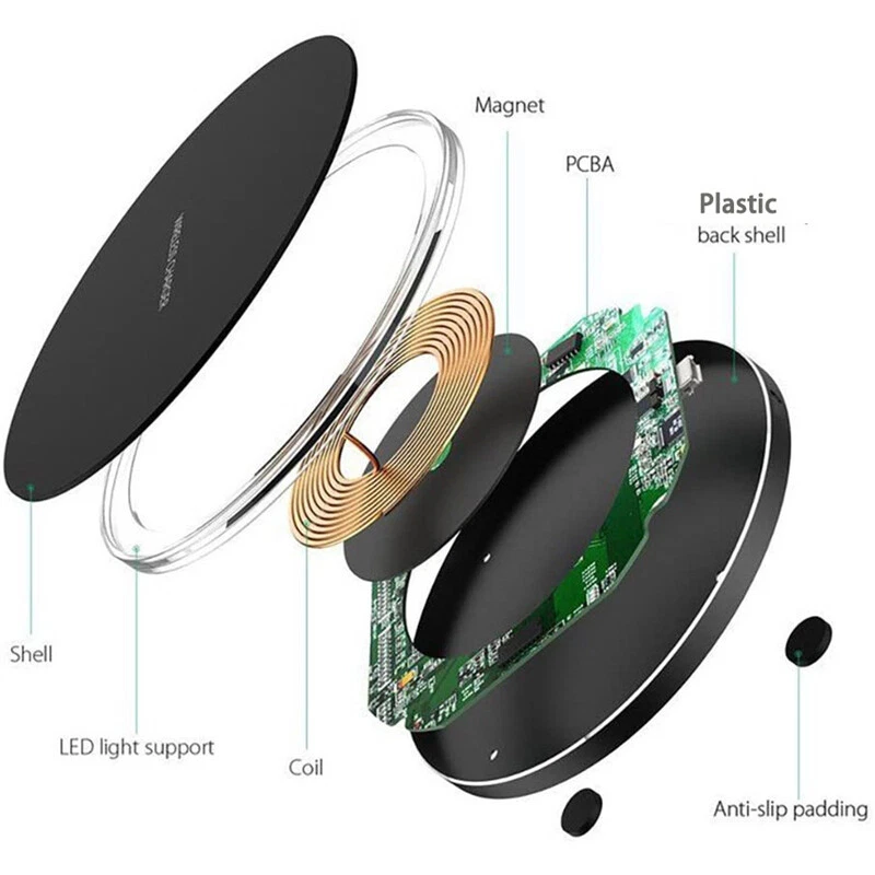 Description Report item 1. Great appearance, transparent body; 2. Exquisite magnetic attraction, low charging temperature; 3. Magnetic effect is strong and fast charging does not heat up. Function: magnetic wireless charging Input: DC5V2A/9V2A type C Output: with 5W/7.5W/10W/15W Number of wireless charging coils: single coil. Compatibility: any smart phone with wireless charging 15W magnetic wireless fast charging