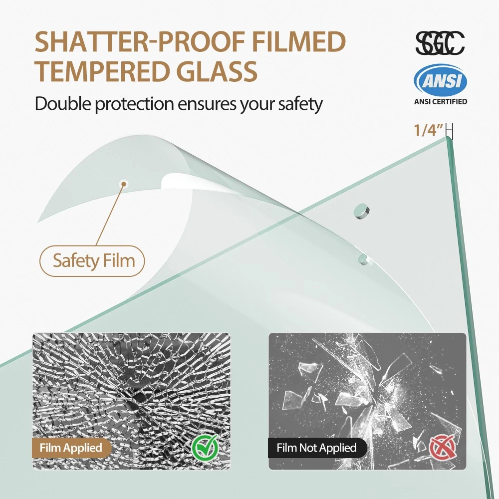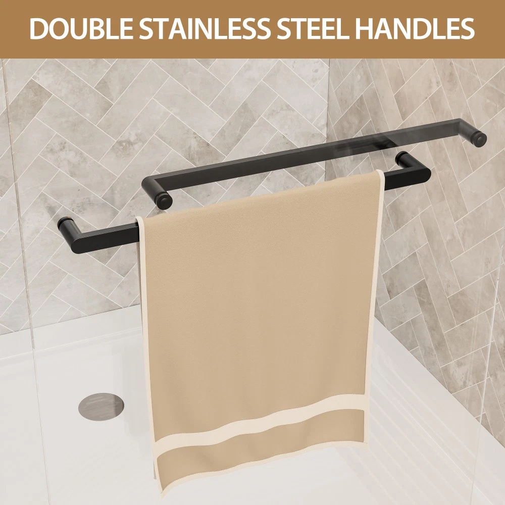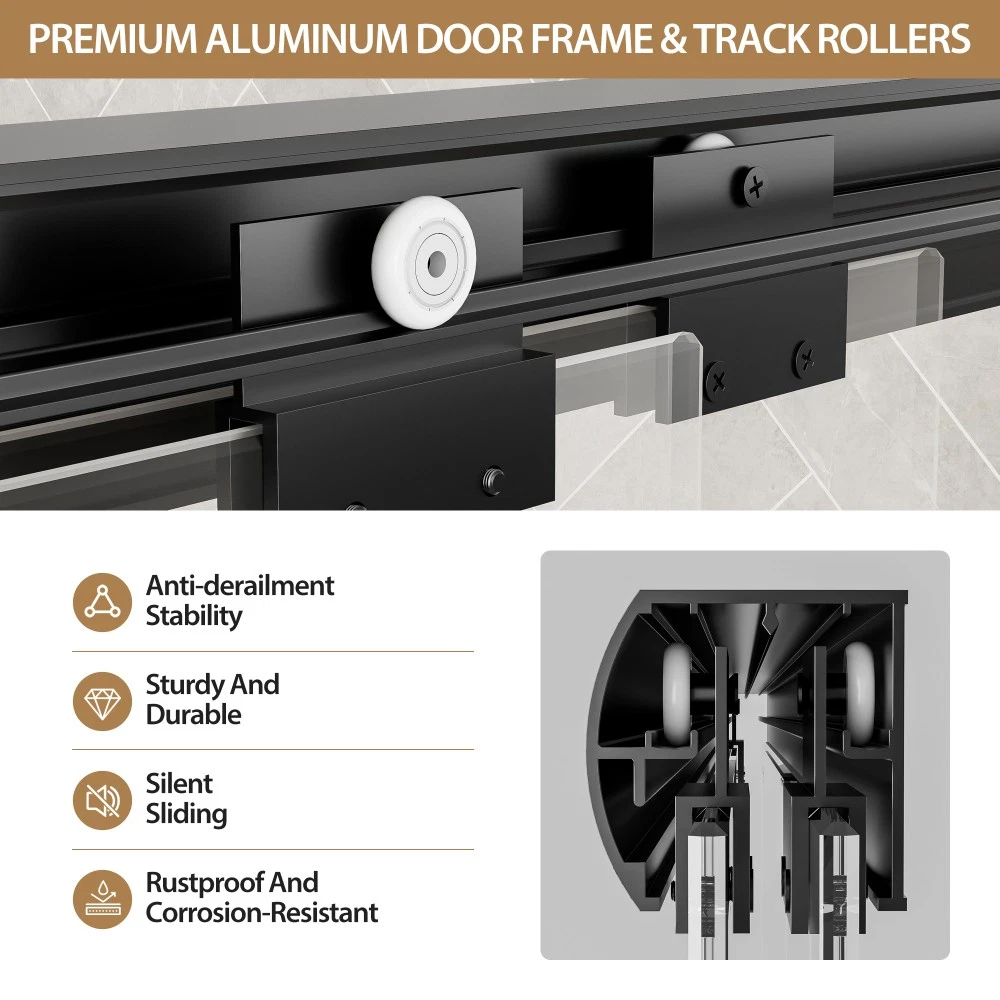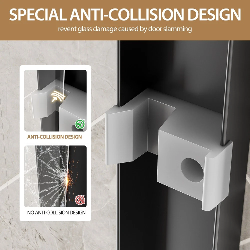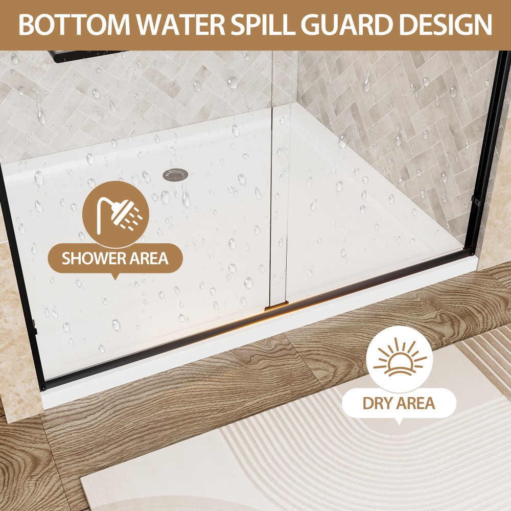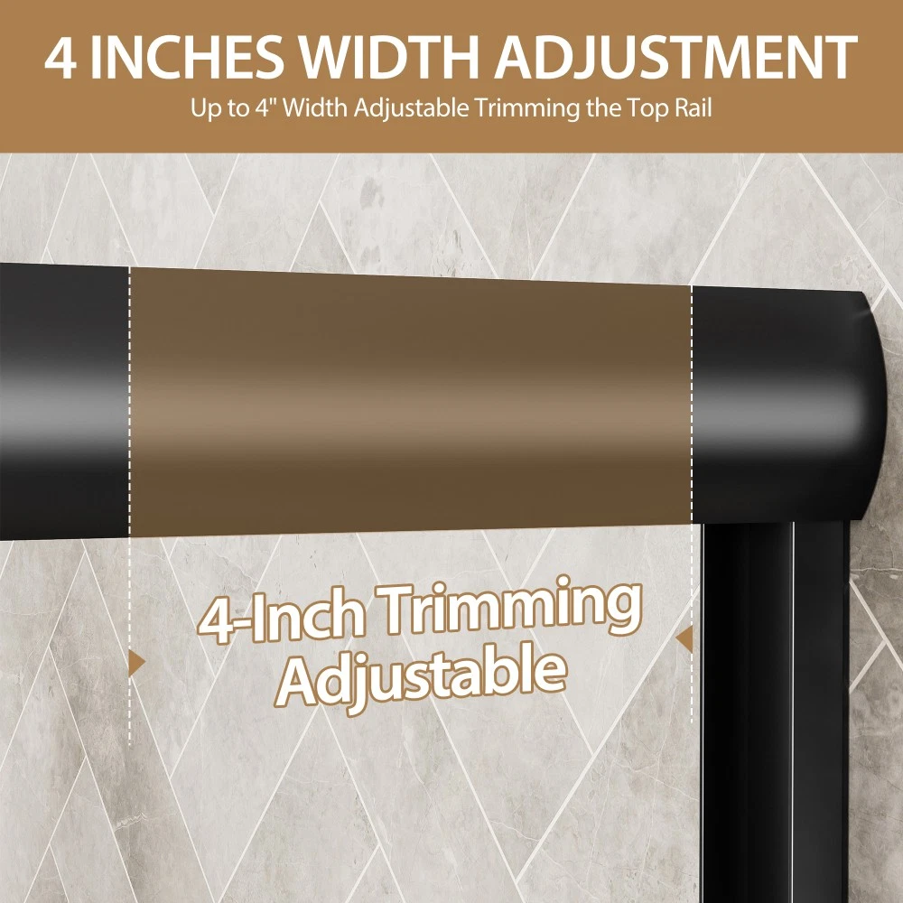 60"W x 72"H Black Matte Aluminum Sliding Shower Door w/ Tempered Glass Humanized Design]This glass shower door 60" width and 72" high, the width can be adjusted from 56" to 60" by cutting guide. Please Note: All measurements must be taken after walls are finished (tile, back walls, etc.) [Enhanced Safety]Tempered safety glass minimizes the risk of breakage, while the anti-shatter film ensures that even if broken, glass fragments will not scatter and cause injuries. [High-quality Materials]Aluminum frame and stainless steel handle are corrosion-resistant and anti-rust, ensuring durability even in wet environments. [Waterproof Design]Shower door effectively prevent water from leaking out of the shower when you are taking shower. Our shower door insulates all water inside the shower and keeps outside always in tidy and clean. [Easy to Install]Reversible installation for right or left, step-by-step instructions and hardware included for easy installation, the width of the door can be adjusted by cutting guide.