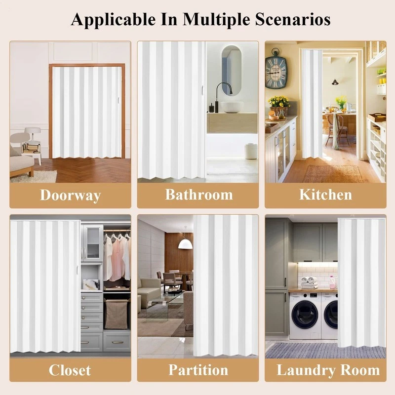 Store category Sign Up Now ! You may also like Product Description Bullet Points: Space-Enhancing Design: Using sturdy PVC material, this accordion door flaunts a smooth white beech wood texture that adds a touch of elegance to your home. Its carefully designed structure ensures stability and durability, making it a beautiful and practical choice that can blend seamlessly with various home styles Smooth and Noiseless Sliding: Equipped with PVC rails for smooth, unobstacled sliding along with wear-resistant features, this door, designed with an ABS wheel, ensures silent operating, bringing a more comfortable experience to your life Structural Stability: The door body thickness reaches 0.63 inches 16 mm, providing wonderful structural strength and stability to the PVC Accordion Door, making it the ideal choice for heavy-duty applications Indoor Space Saving: This indoor accordion door provides an opening degree of more than 90% and folds neatly, meeting your maximum demand for space utilization while greatly saving indoor space Magnetic Closure: Our folding PVC Accordion Door is designed with a magnetically closed channel that tightly seals the door without the need for a floor track. Introducing our Accordion Folding Door! Made from PVC material with an innovative ABS wheel design, our door is perfect for maximum space utilization without the danger of tripping hazards or debris. The door body thickness ensures long-lasting use. Specifications: Product name: PVC Accordion Door Door material: PVC Guide rail material: PVC Pulley material: ABS Product size: 60x80 inches/152.4 cmx203.2 cm Product attributes: PVC indoor folding door, a simple folding door used in wardrobes, food storage rooms, laundry rooms, study rooms, bathrooms, kitchens and other scenes Packing List: 1x accordion closet door 15x short screws 15x wood expansion screws (for concrete walls) 3x washers (for installing the door and a side of the wall) 2x long screws (for installing the handle) 3x Lock accessories 6x lock screws 1 set x door handles Notes: 1. Due to different lighting and screen settings, the item color may be slightly different from the picture. 2. Due to different manual measurements, please allow a 1-2cm difference in size. Payment Delivery details Terms of sales About us Feedback & DSRs Payment Before you palce an order, please kindly make sure that you have a paypal account. We accept PAYPAL payment only. Payment should be completed within 2 days after auction closed, or unpaid dispute will be filed for an closing auction. An unpaid case will be filled after 4 days. Delivery details We ship to your eBay address. Each package will be shipped to US by UPS Regular Parcel with tracking number. Please check your shipping address carefully before checkout, it can't be changed if order completed. All items will be shipped within 1-2 business day upon receipt of payment.Orders placed on weekend will be shipped within 3 days. If you do not receive your item in 7-10 business days.please contact us immediately for further assistance. We will be responsible for any damages or losses incurred in the shipping process. About us We maintain high standards of excellence FIVE STAR and strive for 100% customer satisfaction! Positive Feedback is very important to us. We hope that you contact us immediately Before you give us neutral or negative feedback, so that we can satisfactorily address your concerns. We promise to offer the lowest price and high quality produce. Our working time: From Monday to Friday(9:30 am to 18:00pm), we don't working on holidays ,hope you can understand and know that , thank you. Please always talk to us via ebay Message. We appreciate your business and look forward to growing our e-Bay sales with satisfied customers. Feedback Contact us If you have any questions, please feel free to contact with us by ebay Message during our business hours ( 9:30a.m. to 5:30 p.m.), or email us through eBay, we will try our best to help you to resolve it. For any presale or after-sale questions,please do feel free to email us! Due to the time difference, each email will be replied within 1 working day,and weekend will be delayed a bit. Feedback