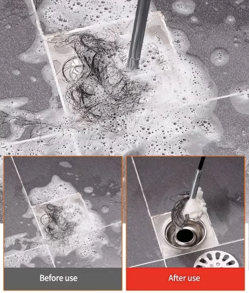 Drain Clog Remover Tool – Flexible Pipe Dredging Tool This practical and easy-to-use drain clog remover tool is designed to clear blockages in pipes and drains effortlessly. Its flexible and durable design makes it ideal for unclogging kitchen sinks, bathroom drains, and other hard-to-reach areas. Key Features: • Length: Approximately 61.5 cm, providing ample reach for clearing deep clogs. • Efficient Clog Removal: Perfect for grabbing and removing debris, hair, and other obstructions from drains. • Four-Claw Gripping Action: Strong claw design effectively grips and removes blockages, both magnetic and non-magnetic. • Easy Operation: Simple two-finger handle action—pull the handle to open the claws and release to grab debris securely. • Spring-Loaded Grip: Ensures smooth, precise control for effective clog removal. • Versatile Use: Suitable for kitchen, bathroom, and utility drains. Package Includes: • 1 x Drain Clog Remover Tool Simplify your drain maintenance with this reliable and reusable pipe dredging tool. Perfect for keeping your drains free from clogs and functioning smoothly!