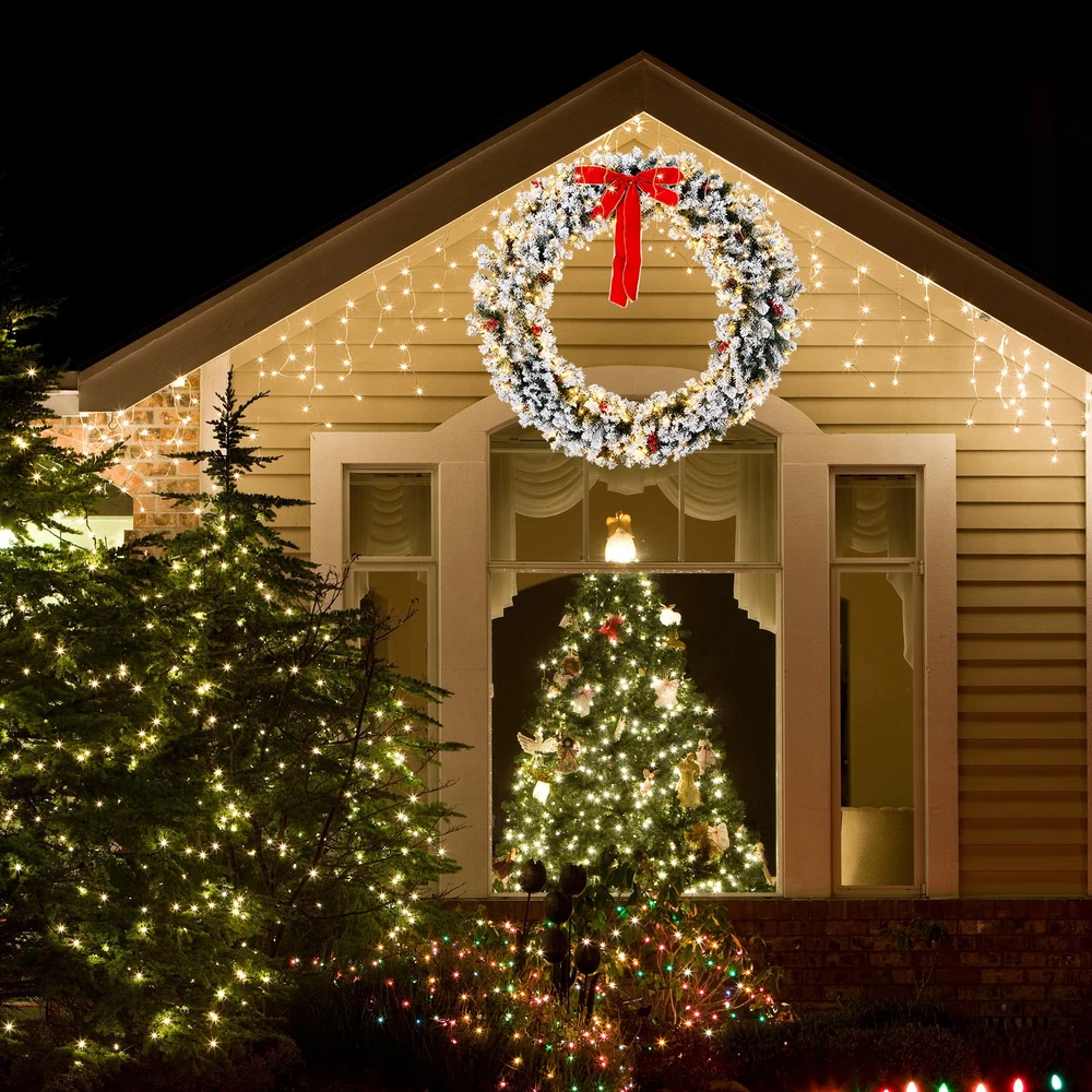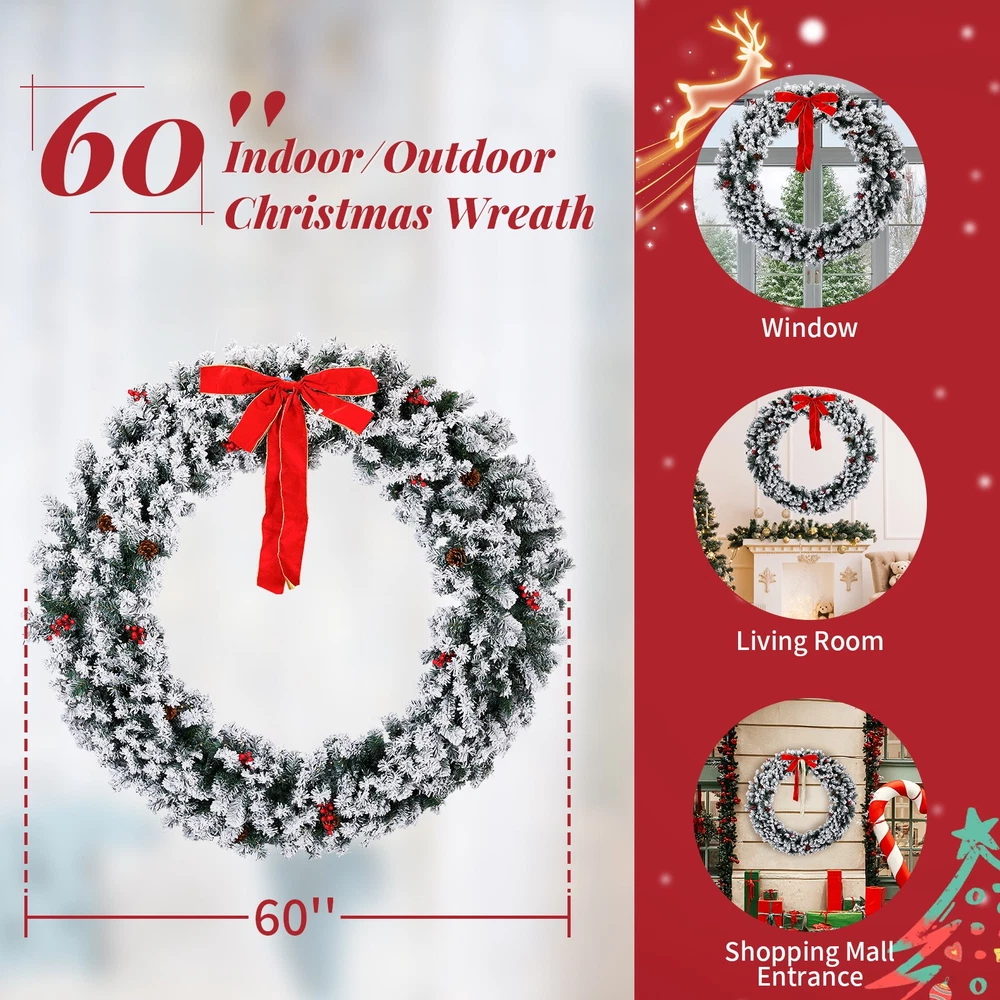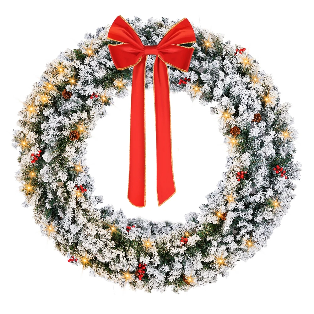 $ 54.3948in Pre-Lit Snow Flocked Christmas Wreath 150 Warm White Lights Decor