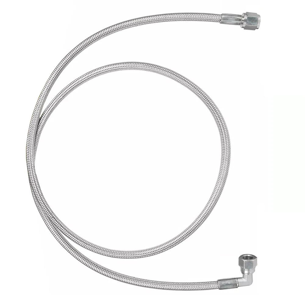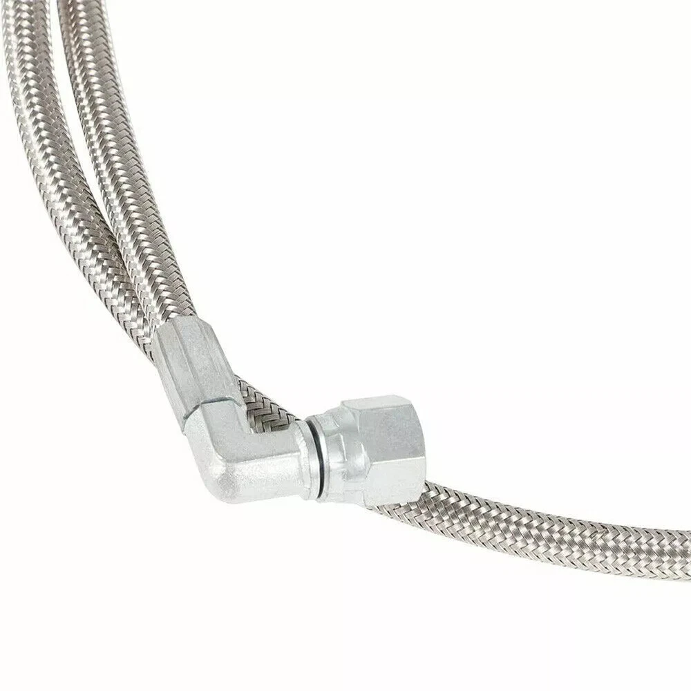 60inch Length 4AN Remote Turbocharger Sensor Steel Braided Turbo Oil Feed Line Function This steel braided turbo oil feed line connects your turbo chargers oil gallery to the engine, it drains the oil away from the bearings inside the turbo charger. Material Made of heavy duty steel for great reliability and long service life; Manufactured to specification, meet or even exceed standard in function, performance and quality. Features This line is 60 inches length, and the hose end is 4AN(0.4375” OD), comes with 1 Straight End and 1 90 Degree End. Package included 1 * 4AN hose.