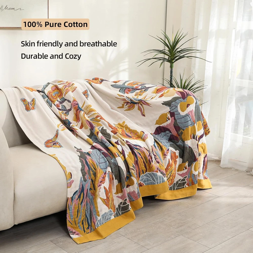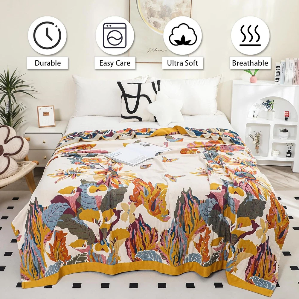 Product Description Boho Large Throw Blanket, 100% Organic Cotton Breathable Soft Bed Throw - Fall Floral Bird Butterfly Farmhouse Decor Blanket for Sofa Couch Chair and Gift. 60" x 80"- Beige EXCELLENT MATERIAL: Made from 4 layers of 100% cotton, Cotton fibers are natural hollow fibers; they are known as fibers that are soft, warm, comfortable, skin-friendly, absorbent and breathable.A: 150 x 200 cm.( 60" x 80 " In), 2.2lb,B: 200 × 230cm(80" x 90 " In), 3.3lb,C: 230 × 250cm (91" x 98 " In), 4lb QUALITY SAFETY: We ensure that the materials are high-end, they are also suitable for babies, and can ensure the safety and health of your skin and family. These blankets have been certified by OEKO-TEX and have been organically certified by GOTS. Global GRS regeneration certification makes customers safer and more guaranteed PERFECT GIFT: Cute and delicate patterns are sure to be loved and can be used for Birthday's, Valentines Day, Mothers Day, Women's Day, Easter, Christmas etc WIDELY APPLICATION: Double-sided pattern color design, universal in all seasons, light and soft, giving you a warm and comfortable feeling. It can be used as a bedspread, sofa or chair blanket for sitting and lying down, or for outdoor picnics and camping EASY TO CLEAN: Machine washable in cold water, avoid using detergents with bleaching ingredients; please wash the towel gently to prevent tassels from entanglement.Important: Since our blankets are made of pure cotton, they can shrink by a few centimeters after washing About Us We are a reputable seller with many years of experience selling on eBay. Our goal is to provide high-quality products and excellent customer service. Shipping Items will be shipped within 1-3 business days when we received payment. (Orders are not processed on weekends & holidays) Tracking information will be sent once item is shipped. Delivery time depends on destination and other factors Item is shipped to ebay address. Leaving correct address can minimize delay. For international shipping and shipping to Guam, Hawaii and Alaska, Please contact us before placing the order. International buyers please note: Import duties, taxes and charges are not included in the item price or shipping charges. These charges are buyer’s responsibility. We will try our best to reduce the risk of the custom duties. Local pick-up is unavailable at the moment. Contact Us We reply any email messages within 1 business / working days(off-duty at weekend). If you do not get a response from us, then please check your junk or spam mailbox. Our Business hours: Mon-Fri 9:00-18:00, UTC/GMT +8 hours. Please contact us either by clicking "contact seller" in the "purchase history" section or simply click "ask a question" at the bottom of this page. If you are unsatisfied with our item or service, please contact us before leaving any feedback. We are committed to resolve all issues in a friendly and satisfactory manner.
