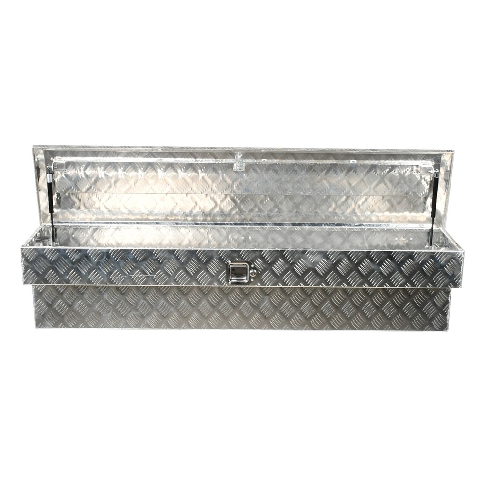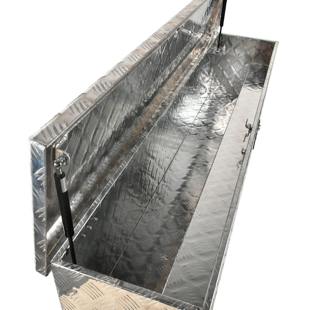 Fitment: For Trucks, RV, ATV, Garage storage, Trailer, Job site, Flatbed Tread: 5 Bar Tread Overall Dimensions: 60"(L) x 13"(W) x 14.5"(H) Materials: Aluminum Type: Truck Tool Box Manufacturer Part Number: Does Not Apply UPC: Does not apply Color: Silver Brand: fastracingo Thickness: 1.5mm Position: Underbody gtin13: Does not apply