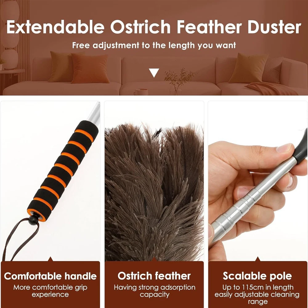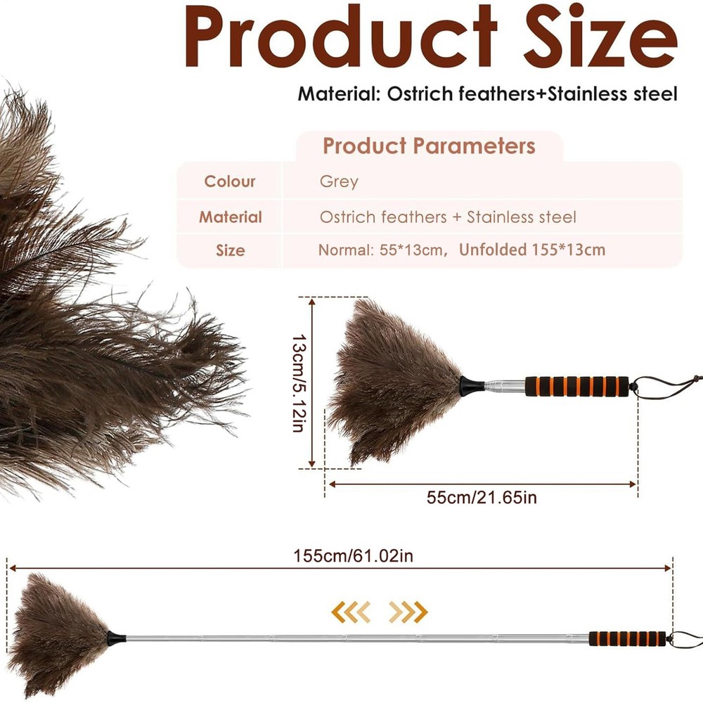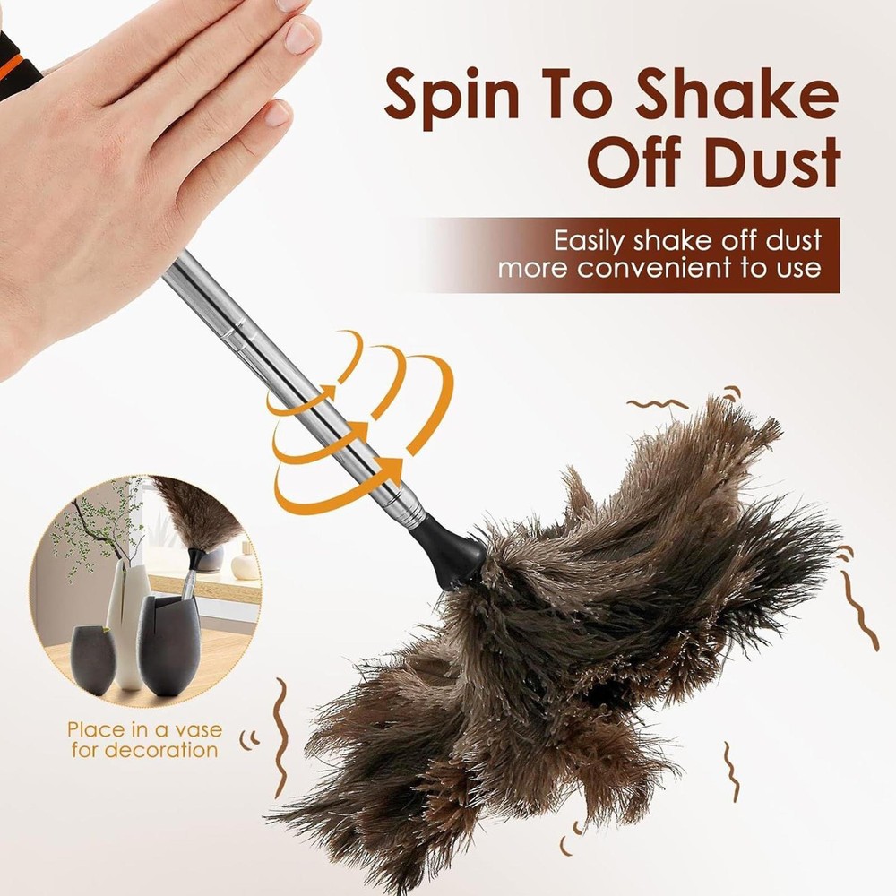61 Inch Natural Feather Duster Brush Wood Handle Home Cleaning Brush Anti-Static Bullet Points: Convenient to Operate: Cover hard-to-reach areas with ease through an extendable design that enhances cleaning reach while maintaining flexible maneuverability for user comfort Advanced Particle Trapping Design: Captures fine dust and hair effortlessly using advanced electrostatic adsorption for high-efficiency cleaning without allowing secondary dust dispersal or performance degradation over time Versatile Use: Designed for multi-environment usability, this duster works seamlessly in homes and vehicles, ensuring efficient cleaning across different areas effortlessly Comfortable Grip Experience: Engineered with an ergonomic handle design, it has a pleasant grip feel while minimizing hand fatigue, making prolonged use effortless and more enjoyable for users Small and Easy to Store: The retractable compact duster is convenient for indoor storage and fits small spaces effortlessly, making it easy to tuck away when not in use while optimizing your home organization needs with its efficient structure and versatile functionality for everyday cleaning tasks Equipped with soft feathers and anti-static technology, this duster removes dust from ceilings, fans, window, blinds, and vents with ease. Extend its utility outdoors to clean cars, RVs, trucks, and remove pet hair from baseboards. The washable design makes reusability, while the long pole provides access to challenging spots during cleaning routines. Specification: Material: Feathers + stainless steel Product size: about 55x13cm/21.65x5.12 inches Length after extension: about 155cm/61 inches Weight: 128g Product List: 1 * Duster With Extension Pole Notes: Due to different lighting and screen settings, the product color may be slightly different from the picture. Due to the difference in manual measurement, please allow a 1-3cm difference in size. 1.You can make a Credit payment via Paypal.Paypal will let you use MasterCard,Visa to pay. 2.Payment should be completed within 5 days after auction closed, or unpaid dispute will be filed for an closing auction.An unpaid case will be filled after 4 days. ● We strive for 100% customer satisfaction ! ● Positive Feedback is very important to us. ● We hope that you contact us immediately BEFORE you give us neutral or negative feedback, so that we can satisfactorily address your concerns. ● We promise to offer the lowest price and high quality produce. Dear buyers : ● Welcome to my store ! ● Your satisfaction is our top goal,we appreciate your patronizing. ● If you have any questions, please contact us before leave negative or neutral feedback, we will try our best to solve the issue to your satisfaction, thanks ! ● If you are satisfied with our service, please rate the details of the transaction (Detailed Seller Ratings) on eBay. ● Please always talk to us via ebay Message. ● We appreciate your business and look forward to growing our e-Bay sales with satisfied customers.