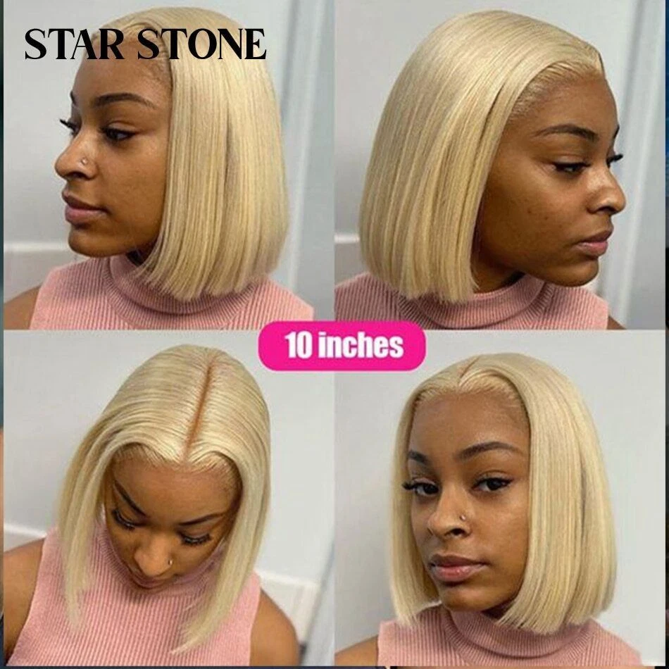 Product Information Hair Material: 100% Virgin Hair Color: 613 Honey Blond Color Cap Size: Medium 22.5", Can Customize Bigger Or Smaller Cap Dendity: 180% density, Luxuriously Full& Soft lace size: 13x5x1 T Part Lace Front Bob Wig Lace Color: Transparent Hair Lifepan: No tangle, No Shedding, Low Maintenance,12-24 Months Life with Proper Care Delivery: Fast Shiping 5-7 Work Days