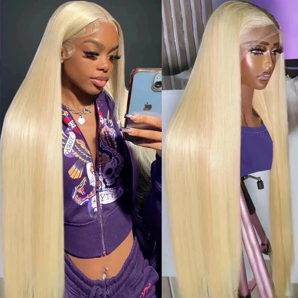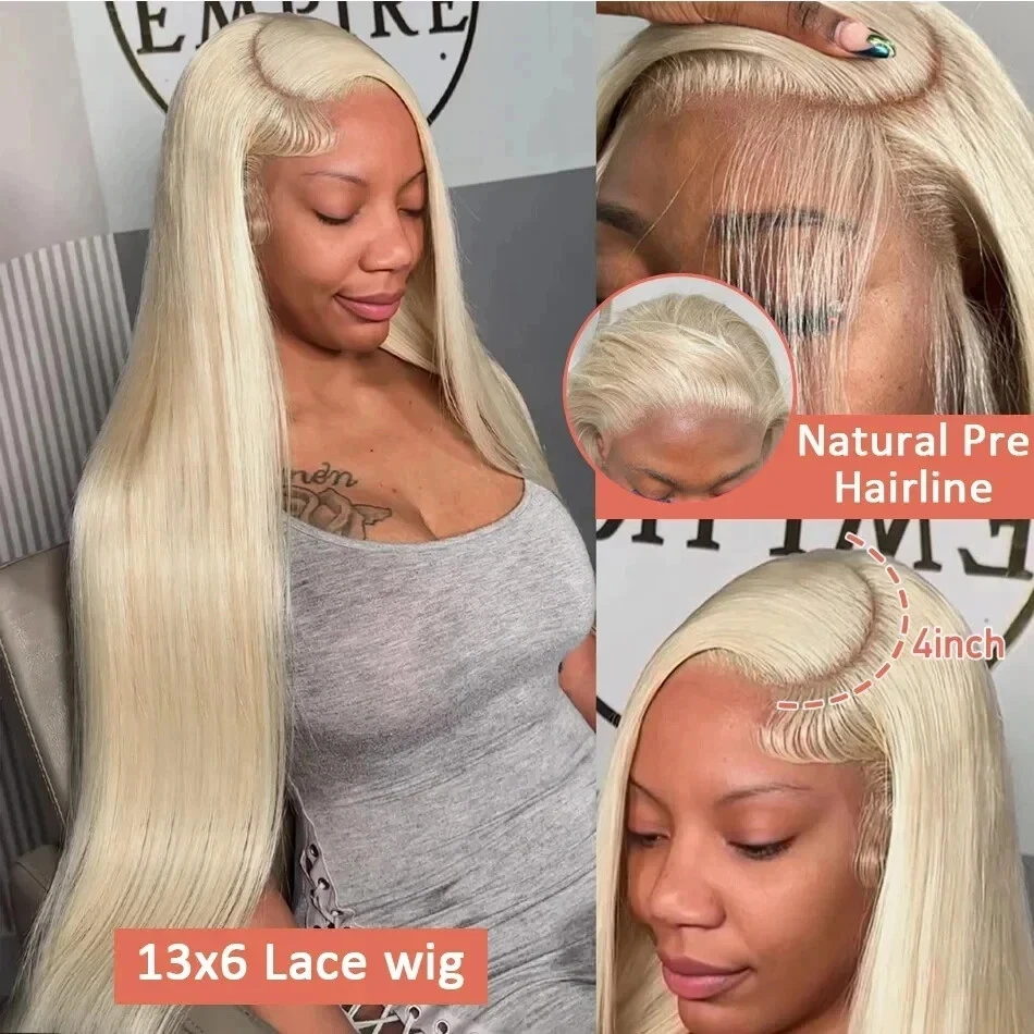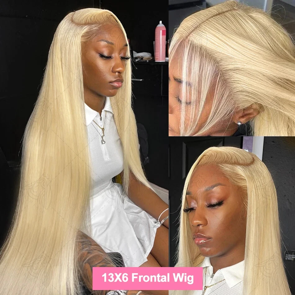 $ 109.4913x6 HD Transparent 613 Blonde Brazilian Lace Front Human Hair Wig Bone Straight