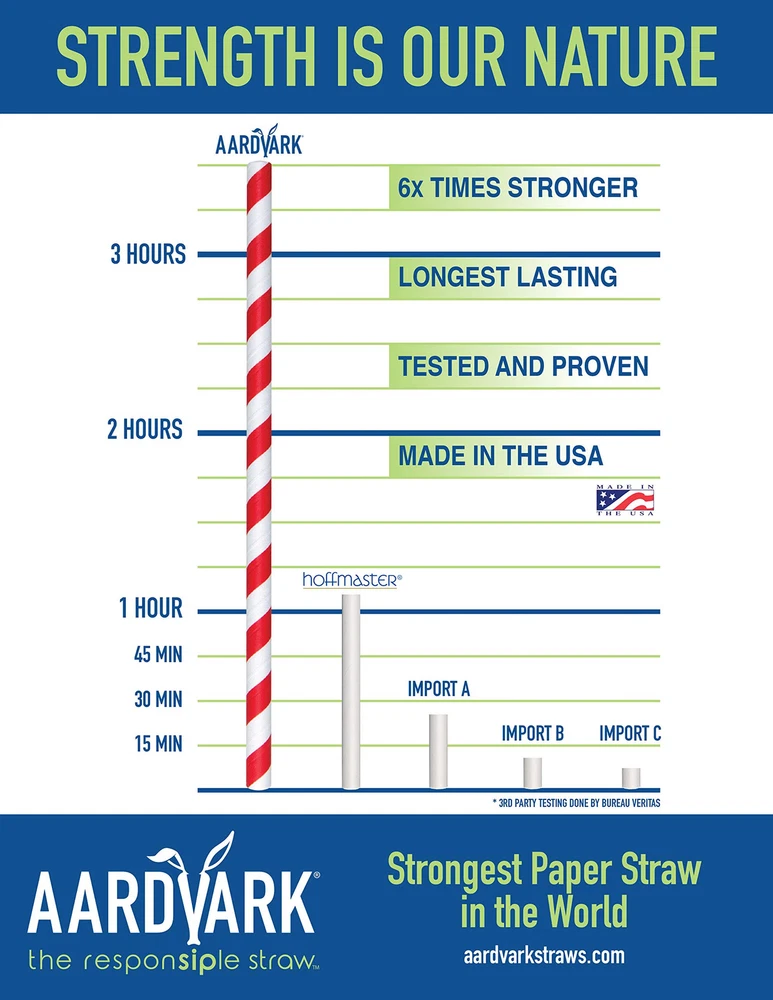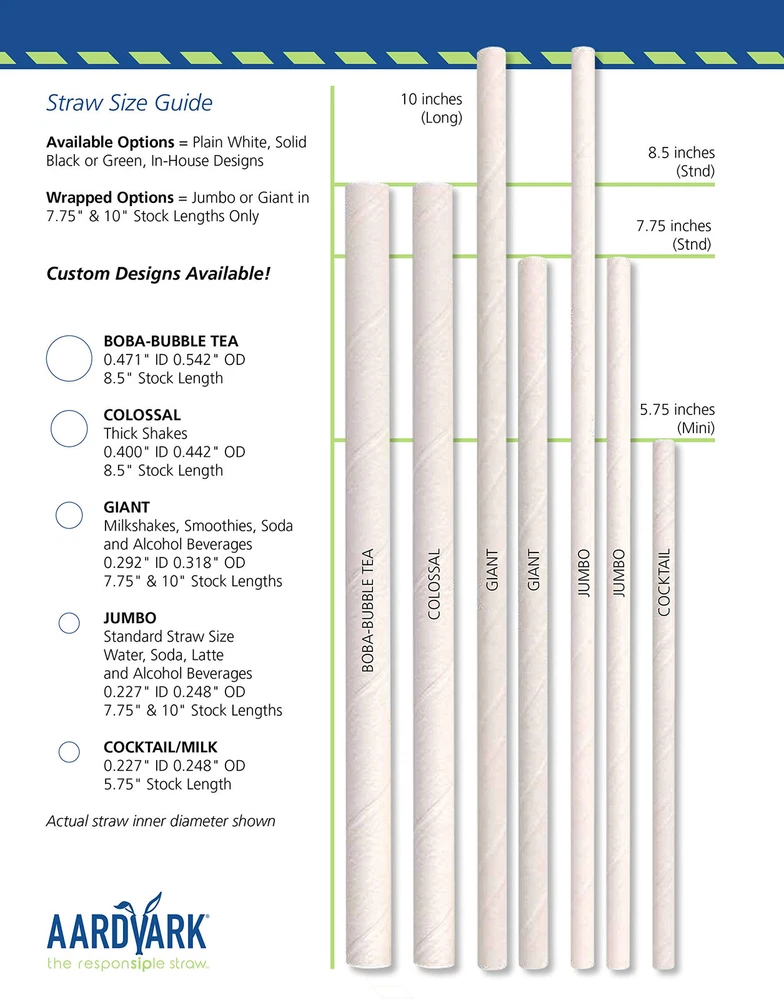Go beyond basic straws with help from our 7. 75" White Giant Paper Straws. Including 2, 800 straws per case, these paper straws are biodegradable and 100% compostable making these a safe choice for the environment. Made in the USA, these disposable straws decompose in merely 45-60 days. paper straws are 6x stronger than the leading competitor allowing them to last longer in your drinks. Grab these today! 2,800 paper straws in case Made in the USA Perfect for cocktails 100% compostable and biodegradable