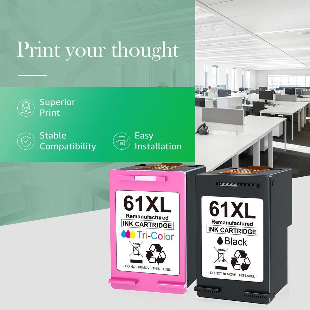 High Yield #61 Ink Competible with HP 61XL ENVY 4500 4505 5530 DeskJet 2050 2545 Information Model Name: For HP 61XL 61-XL Package include: As you select. Page Yield: Up to 750 Pages per Black, 450 Pages per color at 5% coverage Compatible for the Printers Listed Below: ✔️for HP Desktop series: 2646 3050A 3051A 3052A 3054A 3056A OfficeJet series: 2620 2621 2622 2623 4630 4631 4632 4634 4635 4636 4639 ✔️ for HP Envy series: 4500 4501 4502 4503 4504 4505 4507 4508 4509 5530 5531 5532 5534 5535 5539 ✔️ for HP DeskJet series:1000 1010 1011 1012 1015 1050 1050a 1051 1055 1056 1510 1511 1512 1513 1514 1517 2000 2050 2050a 2050s 2054a 2510 2511 2512 2514 2540 2541 2542 2543 2544 2545 2546 2546B 2546P 2546R 2547 2548 2549 3000 3050 3050a 3051 3051a 3052 3052a 3054 3054a 3055a 3056 3056a 3057a 3059a 3060 3510 3511 3512 3516 DESCRIPTION ADVANTAGES Lastest Smart Chip: Maintains a stable connestion with the printer and precisely tracks ink levels. Premium Ink: Enables long lasting printouts and precise image reproducttion. Ace Nozzle: Ensures Smooth ink priting and maximizes ink utilization. INSTALLTION Step 01:Remove the plastic cover. Step 02:Peel off the seal tape. Step 03:Insert the cartridge. Step 04:Do not Touch the Chip. Seller Note: 1. When handling new ink cartridge,don’t touch the electrical contacts or print head nozzle on a cartridge. 2.Do not remove the electrical contacts except for the protective tape. Otherwise the machine will not work properly. 3.If the printer prompts "Low Ink" or "Empty" (or similar messages), you can click "OK", "Continue" or "√" to bypass the printer prompts and use the cartridge directly. PAYMENT We accept Paypal, Visa and MasterCard as payment methods. When paying for your order, please use the eBay checkout system. Immediate payment is required for all orders. Please do not use the PayPal note field to indicate us to ship to other address. The note there will NOT be read. If you want to change the shipping address, please contact us by eBay messages. If you want cancel orders or change address pls contact us within 6 hours after payment,or we are not responsible for shipping a replacement. SHIPPING Free standard shipping is provided on all orders within the 48 contiguous United States. Orders outside of the continental 48 states (Alaska, Hawaii, Puerto Rico, U.S. Territories or International) will be subject to additional shipping charges. All domestic orders will be shipped via USPS from our US warehouse and usually arrive at your doorstep within 3-5 business days. We are not responsible for any incorrect or undeliverable addresses. Please verify and update your shipping address on eBay at checkout. RETURN Customers must contact us within 30 days of receipt of the item for approval of any return or exchange. Any defective/damaged item can be replaced within 180 days from the date of purchase (we define an item as defective only if it does not function as described). Please contact us via eBay message before making a request to have the opportunity to resolve or correct the problem.