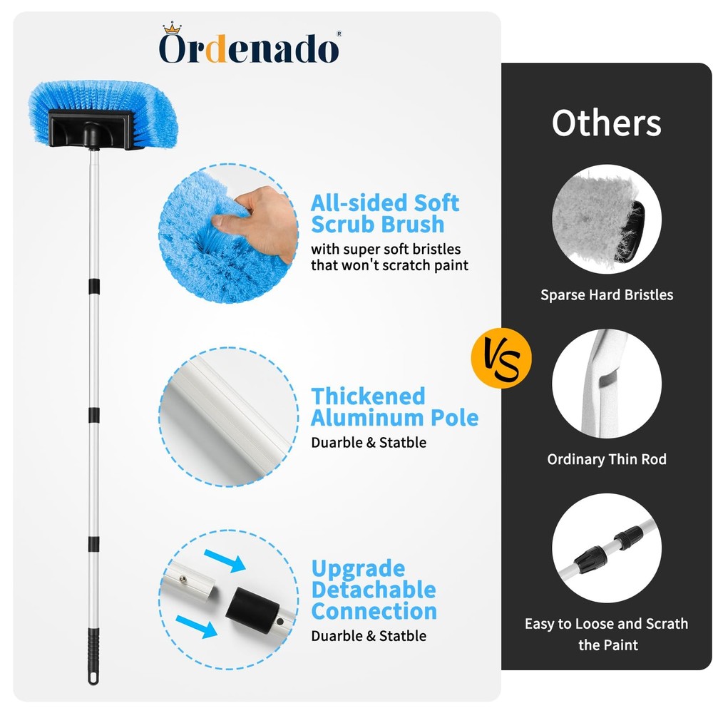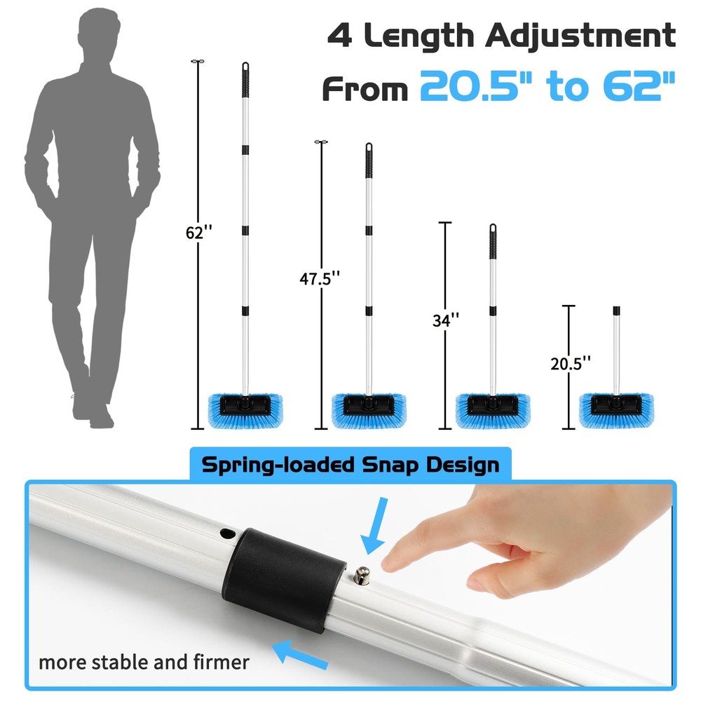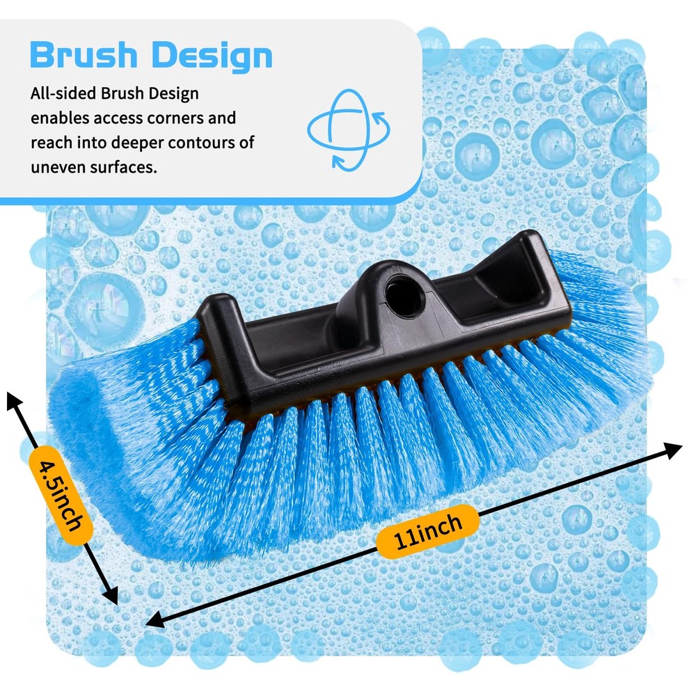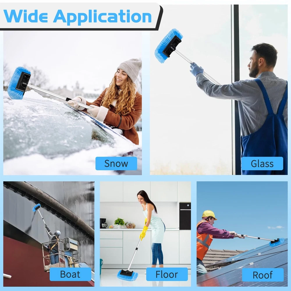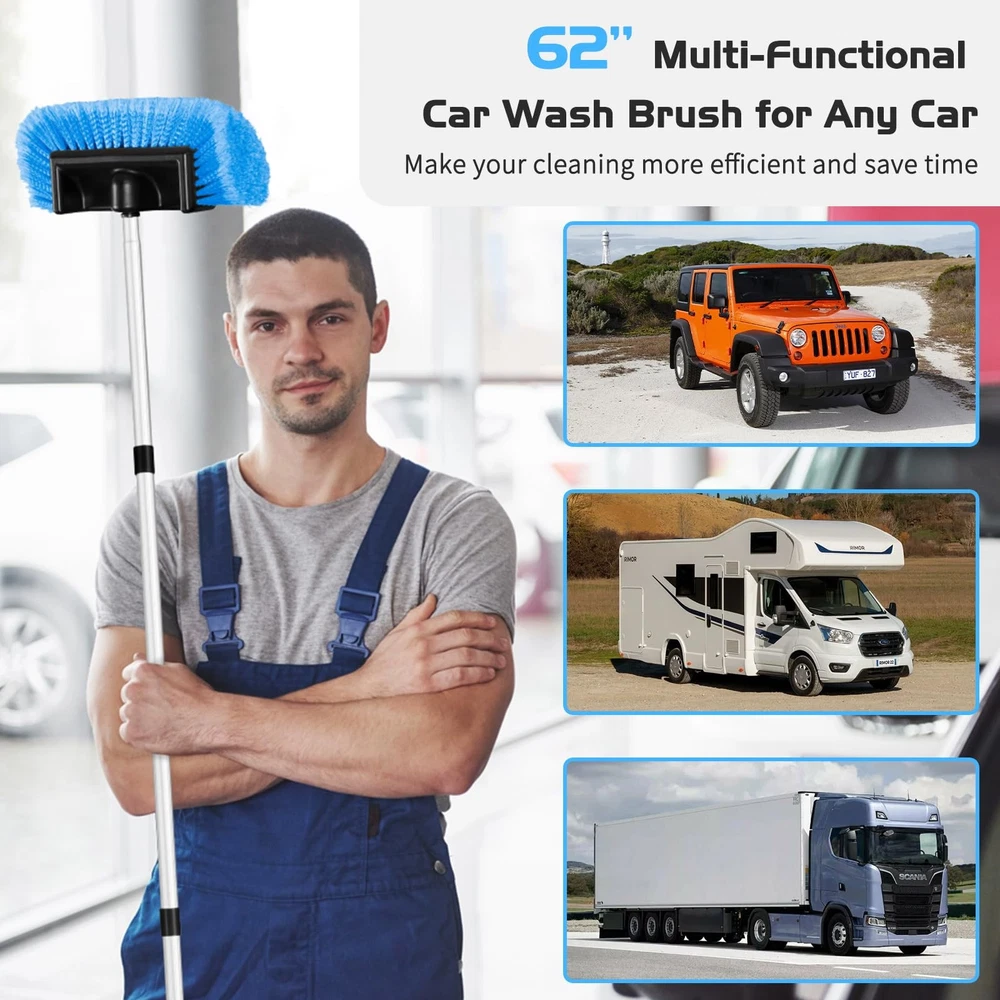 RV Brush for Washing with Extension Pole: RV wash brush with long handle features an extension handle with a 4-length adjustment from 20.5" to 62"(20.5"/34"/47.5"/62"), this car cleaning kit can adapt to all your different needs. With our microfiber car wash brush, you don't need to bend, stop straining your back and save your energy. Scratch-free Car Wash Brush Kit: Our all-sided soft bristle car cleaning tools are designed to deliver top-notch care for your vehicle. This car washer brush with handle is gentle on paintwork, scratchless, fluff-free. Its all-sided soft bristles are meticulously crafted to clean every nook effortlessly. Whether you're detailing a classic car or maintaining your daily ride, these car cleaning brushes stand out as a tool of choice. Versatile Car Wash Tools: It can be used as a vinyl siding cleaning brush, truck washing brush with long handle, soft brush for car washing, RV cleaning brush, tile brush for cleaning shower, deck cleaning brush, and more. These car wash brushes are perfect for a wide range of surfaces. Whether for snow removal or maintaining your home, indoors or out, our car scrub brush delivers unparalleled adaptability and performance. Sturdy Soft Bristle Car Wash Brush: Our car wash mop with long handle features a sturdy connection design, ensuring that the pole remains stable during use, and prevents unwanted retraction or stretching. Built to withstand vigorous scrubbing, this boat cleaning brush won't deform or break, making it perfect for tackling even the toughest cleaning jobs. A Thoughtful Present: The soft car wash brush is not just a tool; it's the perfect festival or birthday gift. Whether it's your parents, friends, or colleagues, the wash brushes for vehicles make a thoughtful and useful present. Our car brush exterior is a standout choice for any car enthusiast in your life. Car Washing Brush with Long Handle: This RV wash brush features a versatile extension pole that adjusts to 4 lengths—20.5", 34", 47.5", and 62"—meeting all your cleaning needs. Designed for your comfort, the car wash accessories allow you to clean effortlessly without bending, even easily cleaning large vehicles like RVs/trucks/SUVs. Say goodbye to back strain and save your energy. Scratch-Free Soft Car Brush: Experience ultimate protection and ease with our 11" all-sided soft bristle cleaning brush. Gentle on paintwork, The car cleaning supplies ensure a scratch-free, fluff-free finish while effortlessly cleaning every nook. Plus, its innovative beveled design adapts to corners, contours, and uneven surfaces, effectively tackling stains for a flawless clean. Wide Application: Discover an all-in-one cleaning solution with our versatile car wash equipment. This car wash wand effortlessly adapts to various surfaces, perfect for cleaning Auto cars, trucks, SUVs, RVs, solar panels, house siding, boats, decks, billboards, snow removal, and more. The car washing supplies are also great for maintaining your home, indoors or out. Robust Connection design: No worries about the pole slipping—our truck wash brush features a snap-on connection that keeps the thickened poles steady. This durable design holds up to heavy scrubbing without bending or breaking, making the car wash kit ideal for tough jobs. Plus, the non-slip grip ensures a steady hold. Just snap the poles and brush head together—setup's a breeze! A Desirable Present: The boat brushes for washing can be considered a perfectly ideal festival or birthday gift for your parents, friends and colleagues by the practical functions. Rest easy with our 1 year after-sale service. For any issues, just contact us and our customer service team will reply within 12 hours. car wash supplies are your top option.