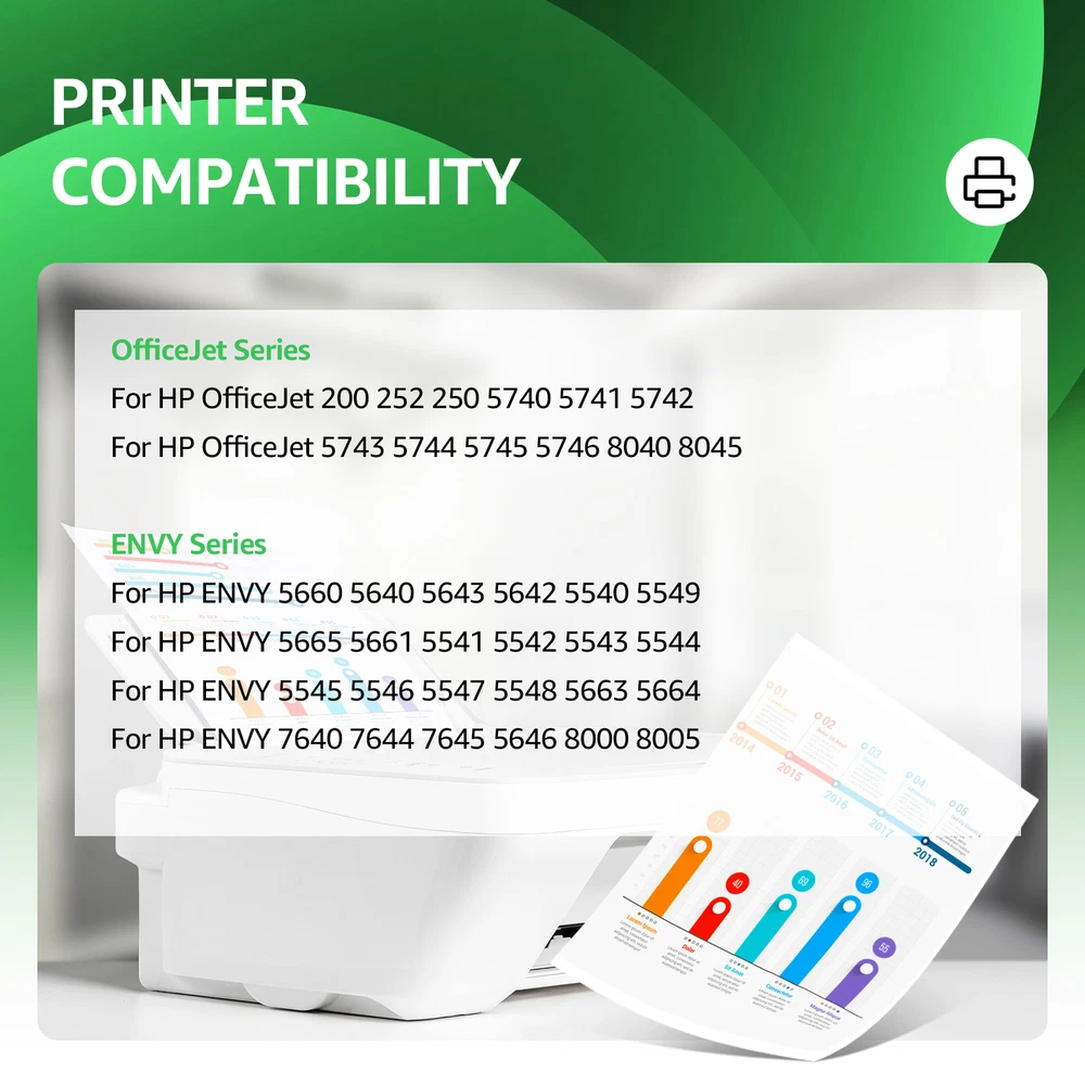 Note: Cartridges are similar to the pictures. Sometimes there are differences due to different suppliers. Product Features Contents: For HP 62XL Black / HP 62XL Tri-Color (Show Accurate Ink Levels) Warranty 100% satisfaction guaranteed. Ink Type: Black - Pigment ; Tri-Color - Dye Cartridge Type: Remanufactured(Not OEM) Package include: Multiple combinations to match, packaged and shipped as you choose. Page Yield: black-750 / tri-color-450 pages per ink cartridge (determined by 5% page coverage) Compatible With: OfficeJet Series For HP OfficeJet 200 252 250 5740 5741 5742 For HP OfficeJet 5743 5744 5745 5746 8040 8045 ENVY Series For HP ENVY 5660 5640 5643 5642 5540 5549 For HP ENVY 5665 5661 5541 5542 5543 5544 For HP ENVY 5545 5546 5547 5548 5663 5664 For HP ENVY 7640 7644 7645 5646 8000 8005 Seller Note If the printer does not work after installing the cartridge, clean the chip contacts of the cartridge with an eraser or cotton swab. Be careful not to touch the ink nozzles at the bottom of the cartridge. Precautions for Ink Cartridge Use 1. When handling new ink cartridge,don’t touch the electrical contacts or print head nozzle on a cartridge. 2.Do not remove the electrical contacts except for the protective tape. Otherwise the machine will not work properly. 3.If the printer prompts "Low Ink" or "Empty" (or similar messages), you can click "OK", "Continue" or "√" to bypass the printer prompts and use the cartridge directly. Payment 1. We accept Paypal, Visa and MasterCard as payment methods. To pay, please use the eBay checkout system. All orders must be paid immediately. 2. Please do not use the PayPal note field to instruct us to ship to another address. The note will not be read. If you wish to change your shipping address, please contact us via eBay message. 3. If you wish to cancel your order, please request a cancellation within 1 hour of payment, otherwise you will need to contact eBay customer service to cancel your order. Shipping 1. We will provide you with free standard shipping on orders within the United States. 2. Free shipping does not include shipments to AK, HI, GU, PR, VI, PO BOX, military addresses/bases APO and FPO. 3.Shipping within just 24 hours after receipt of payment. (If there is a weekend or holiday in between, the term will be extended accordingly.) Returns 1. Full refund (excluding shipping costs) is available within 30 days from the date of purchase. Any defective or damaged item can be returned or exchanged within 60 days from the date of purchase. 2.Any defective/damaged item can be replaced within 180 days from the date of purchase (we define an item as defective only if it does not function as described). 3.Please contact us via eBay message before making a request to have the opportunity to resolve or correct the problem.
