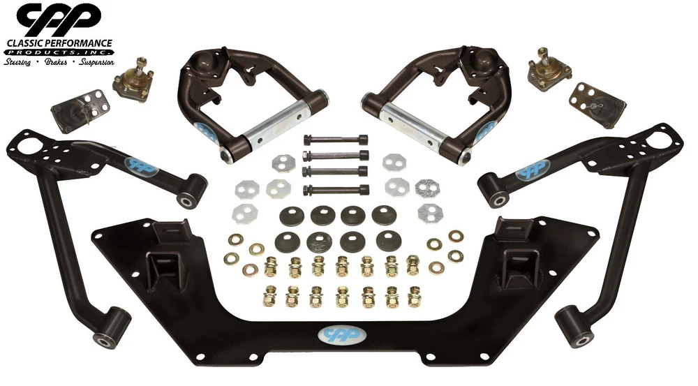 Steering • Brakes • Suspension Call the Experts TOLL FREE: for more information about your eBay purchases 1962-1967 Chevrolet Chevy II Nova CPP Mini Subframe Tubular A-arm Kit Lower Tubular Mini Sub Frame Kit Increased stability, improved steering response Better ride quality and more positive road feedback Eliminates the factory strut rods Bolt-in installation (some drilling required) One-Piece 1-1/4" 120 Wall DOM tubular lower control arms Over 2" of ground clearance 1/4" thick steel cross member Maintains proper alignment with the use of lock out plates Premium installation hardware included 4 alignment cam kits Includes new CPP premium ball joints Black powder coat finish Made In The USA Tubular Upper Control Arms Billet chromoly 4130 cross shafts and pivot sleeves 1-1/4” 120 Wall DOM tubing construction 1-1/2” 188 Wall pivot barrels Patented, self-lubricating bushings Black powder coat finish Made In The USA T his is a new 1962-67 Nova tubular control arm kit by Classic Performance Products. It eliminates the factory strut rods and adds adjustable forward control arm mounts. This kit adds stability, improved steering response, and over 2" of ground clearance for your early Chevy II Nova. By eliminating the bind of factory strut rods you are able to maintain proper alignment resulting in better ride quality and more positive road feedback. CPP’s kits accommodate both the factory sway bar and aftermarket 1" bars (1-1/8" Sway bars will not fit) . The one-piece cross member ties both frame rails together by bolting in where the factory strut rod mounts were located, providing additional strength. It also adds only 2 lbs to the car after removing the heavy factory strut rods and bulky strut rod mounts. There is no cutting or welding required. The rear of the lower control arm mounts in the factory location and the original camber adjustments are used. The front of the lower control mounts to the new cross member and adds a forward caster adjustment to guarantee a perfect, simple and hassle-free alignment. The upper control arms are preassembled on new billet chromoly 4130 cross shafts and pivot sleeves. CPP is leading the industry with billet cross shaft and pivot sleeves that captures both sides of the bushing, unlike the originals that were only retained on the 1 side of the bushing under the head of the bolt. As a result of the fully contained bushings, the arms are even stronger. Forces that would make other arms flex and twist are transferred through the bushings and easily handled by billet cross shaft. CPP created a safety feature with an interlocking shaft and sleeve design that prevents the bolts from working loose even under severe stress created by hard corning. The arms are made from 1-1/4” 120 Wall DOM tubing and have beefy 1-1/2” 188 wall pivot barrels. The continuous round cross section adds torsional rigidity. The beefy 1-1/2 .188 wall pivot barrels ensure the pivots will stay true and operate with maximum efficiency. The CPP exclusive pivot bushings are a patented self lubricating plastic that will not squeak, and has a working temperature of over 400 degrees. These plastic bushings refuse to break during impact testing and can absorb high shocks loads that would otherwise be transferred through the chassis. Nova 2" Drop Spindle Wheel Kit Nova 400 Series Power Steering Kit Nova Steering Arms Drop Lowered Coil Springs Nova Manual Master Cylinder *Note: This kit will come in a BLACK powder coat finish. Photos show silver for display purposes only!* (Part# 6267TCA-ULK-B) BEFORE LEAVING FEEDBACK If you receive an order that does not meet your expectations, please allow us the opportunity to fix the problem before leaving negative feedback or rating us. We want you to be happy with your purchase! Contact us via the Message Center if you require any assistance. SHIPPING INFORMATION Orders over $599 will be sent out with signature required. You will need to sign for your packages or make arrangements with the carrier to pick up from their nearest hub. Most items (unless noted in the handling time) ship from our warehouse within 2-3 business days from the business day your payment is received and processed in our system. Orders placed Friday and through the weekend will be processed Monday (excluding Holidays). Once your order is processed and shipped from our warehouse you will receive an email with your tracking information. We ship via UPS and FedEx. We only ship to a confirmed PayPal shipping address. All Will Call orders must be placed at least 24 hours in advance for pickup from the showroom, including in showroom or parking lot orders. Local pickup is available upon request. A matching ID, which must correspond to the name on the PayPal payment, is mandatory for picking up items. Will Call orders will not be released and will be refused if the person and ID do not match the PayPal payment. Local pick up requires a 24hr processing time before pick up. We will notify you when the parts are ready for pick up. CONTACT US Messages via eBay are answered within 24 hours. Warranty All eBay purchases come with a 30-day warranty from the day you receive your order. If you receive an item that is damaged or defective or missing components, please notify us within 3 days of receipt. Any items outside the 30-day warranty will be the responsibility of the customer to pay for any repairs, as well as cover all shipping costs.