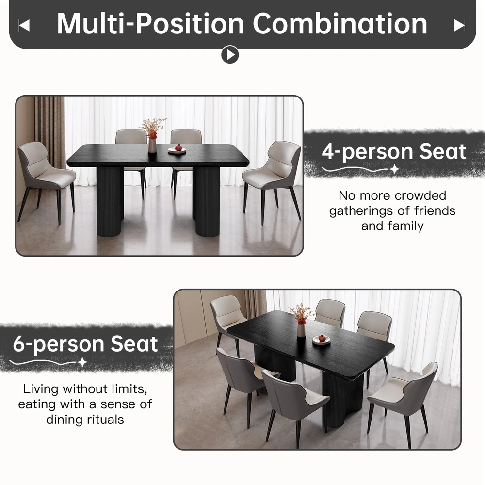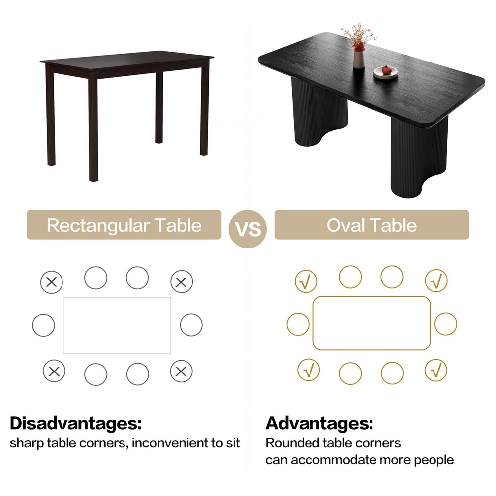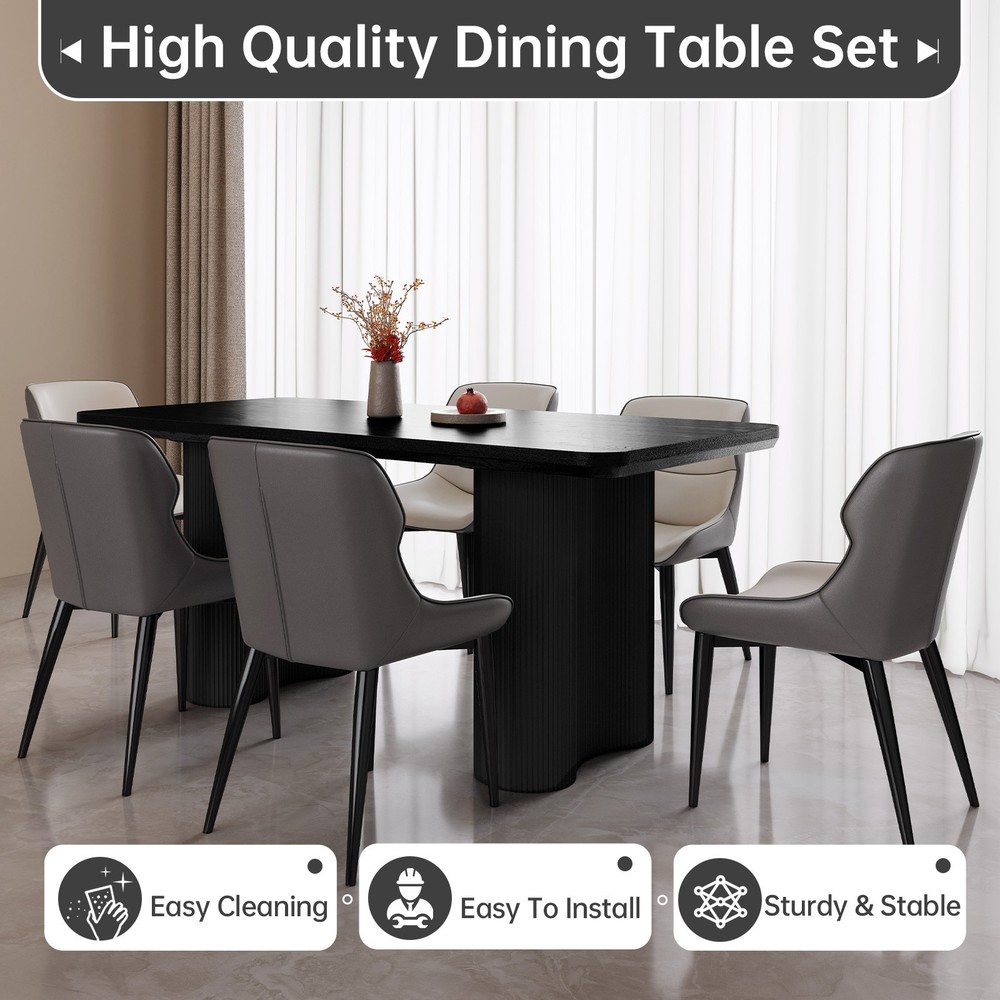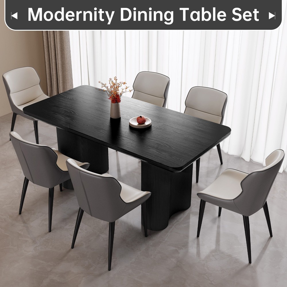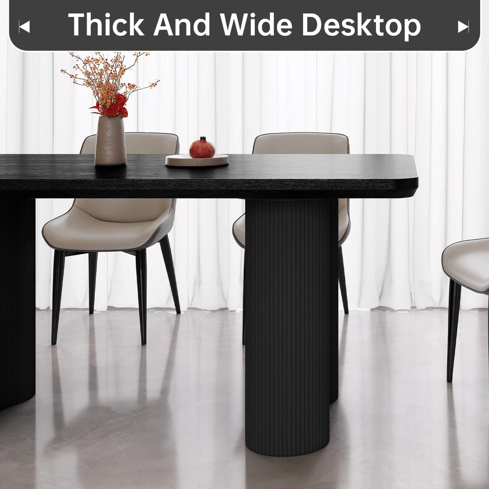 About this item ★ Size: Dining table size: 62.99" x 32.67" x 30" ★ Spacious Tabletop: A 62.99-inch long surface accommodates 4-6 people, perfect for meals or gatherings. ★ Durable and Thick: The 1.92-inch thick tabletop ensures strength, durability, and a premium appearance. ★ Stylish Wave Legs: Two wave-shaped legs with a 19.29-inch diameter provide excellent support and modern style. ★ Safe Rounded Edges: Smooth, rounded edges prevent accidental bumps and injuries Packing Includes: 1 x Dining Table Assemble Instruction Accessories required for assembly