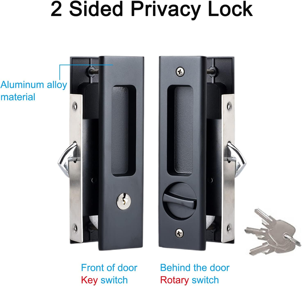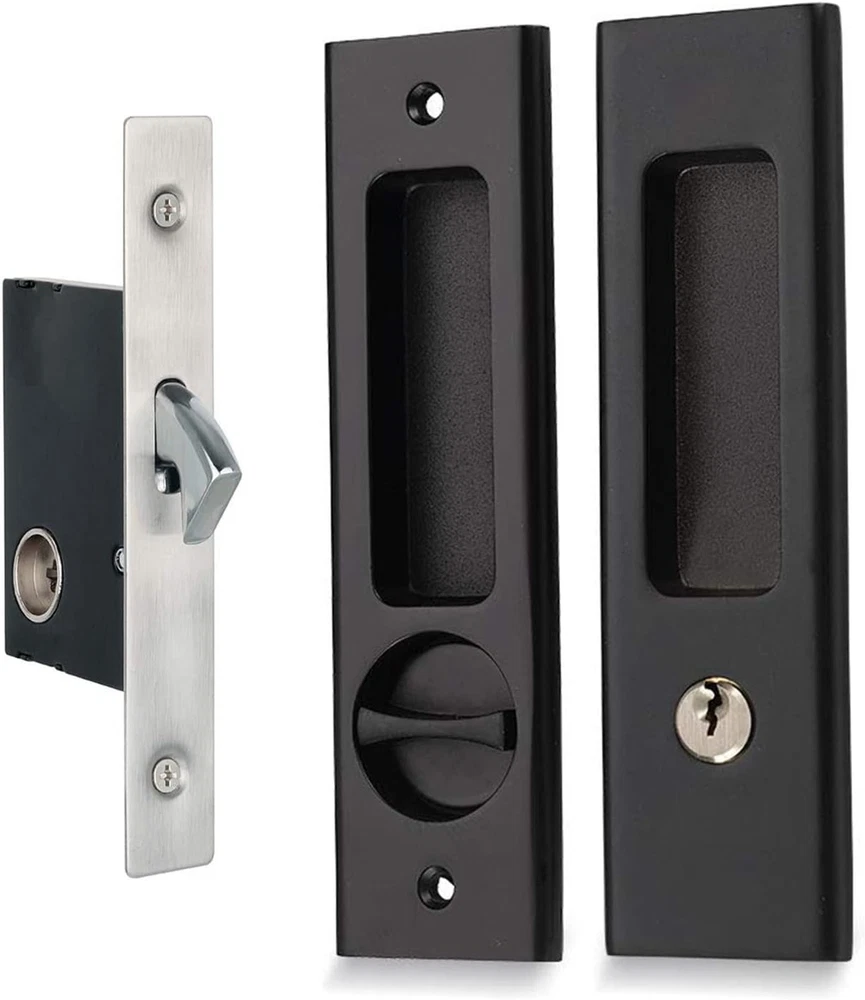 1. This pocket door lock is a game-changer for privacy! The sleek matte black finish blends perfectly with modern decor, and the recessed design keeps it invisible when not in use. Installation was straightforward, and the keyed lock feels solid and secure. Works flawlessly on my 1.5" thick sliding barn door. The zinc construction gives it a premium feel while being durable. Love that it doesn't require batteries or complicated mechanisms - just simple, reliable security. Perfect for bedrooms, bathrooms, or any space needing discreet locking. The modern farmhouse style adds a nice touch without being obtrusive. Definitely worth it for the quality and clean look!