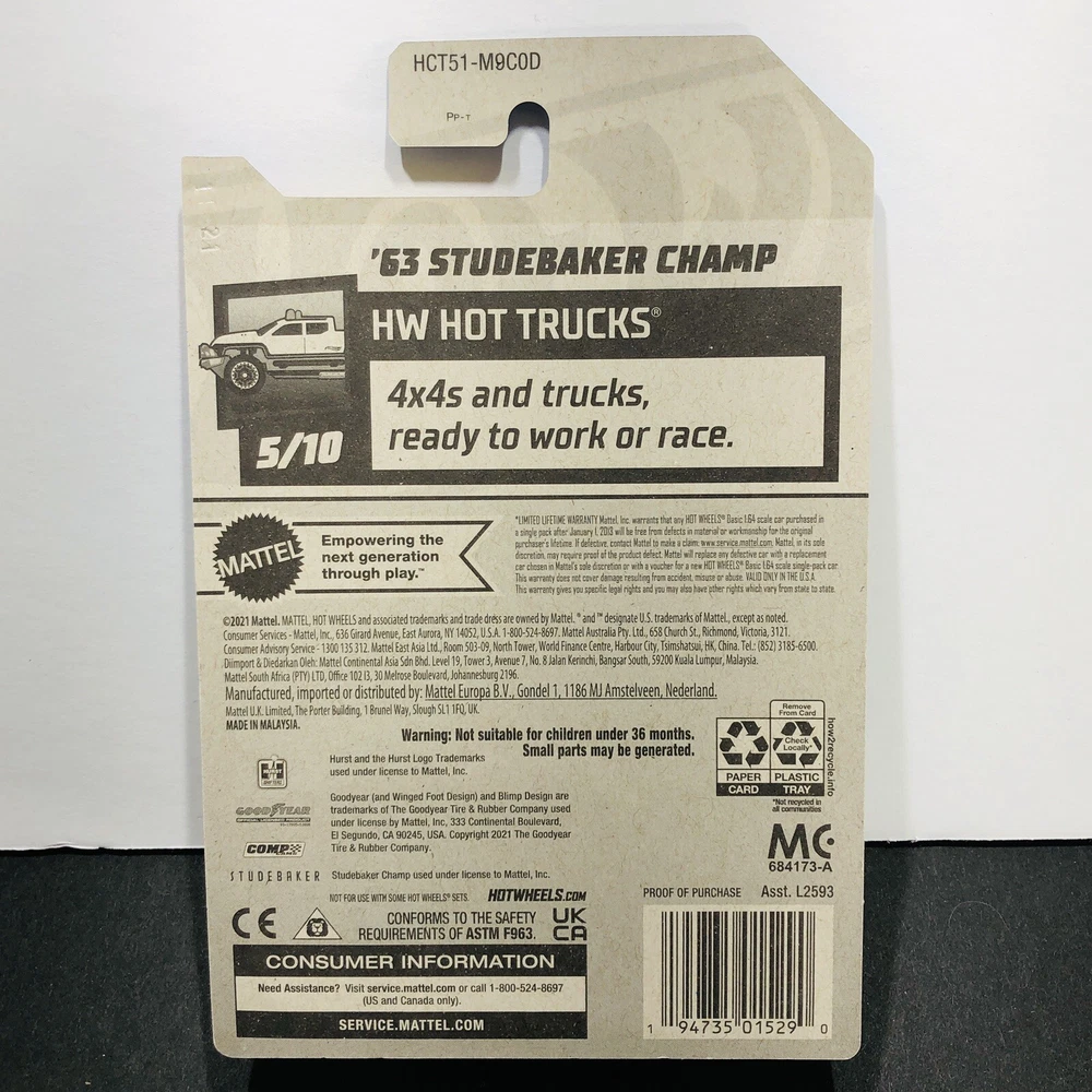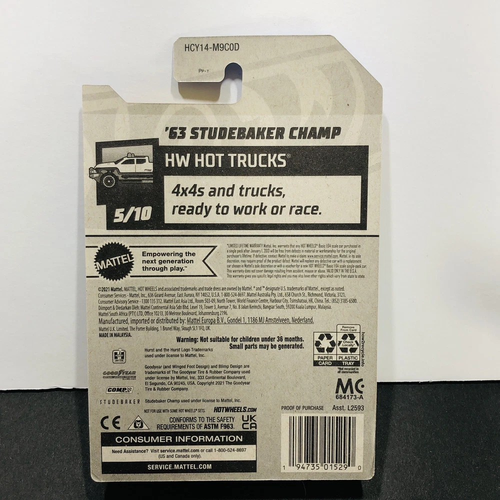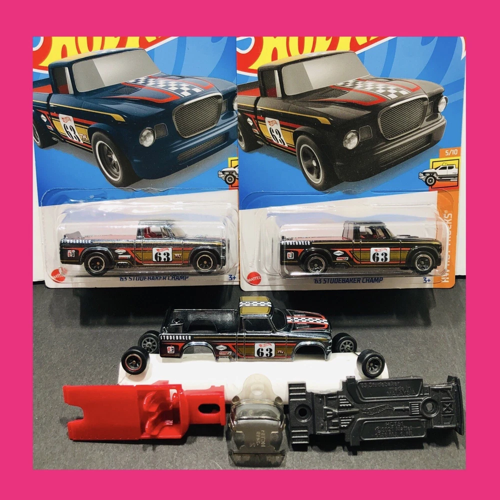 2022 Hot Wheels '63 Studebaker Champ Super Treasure Hunt 2022 Hot Wheels UNSPUN '63 Studebaker Champ Super Treasure Hunt Unspun 2022 Hot Wheels '63 Studebaker Champ Super Mainline Listing Details: -Lot of 3 (2 STH & 1 Mainline) -Photos are of the 3 cars you will receive. -The blisters and cards are in great condition, there may be some light normal shelfwear such as a soft corner and/or small crease on card. -I will do my best to show any flaws in pictures. Please ask if you'd like to see more. -Please See Photos for Better Description. Shipping: -ALWAYS Shipped In Box!! -I take pride in my packaging. I wrap all carded cars with frog tape to protect the bubble! -I typically ship next depending on time of purchase. -SORRY RATES HAVE GONE UP This Year, the Post Office raised all their rates considerably ~ Return Policy ~ Free Return Shipping eBay Money Back Guarantee applies when: * Damage during shipping. * The buyer doesn't receive an item. * The item received by the buyer doesn't match the listing, for example: * Item isn't as pictured. * The seller sent the wrong item, or * The item arrives broken, damaged, or faulty This Return Policy does NOT apply to remorse reasons. Just because you don't want it anymore isn't a justified reason for a free shipping return. I will accept the return but buyer must pay shipping. The buyer must return the item in the same condition in which it was received. If the returned item is used, damaged, or missing any parts, or is damaged during return shipping because it wasn't packaged correctly, seller might provide a partial refund for the loss in the item's value. The listing pictures will serve as how item is expected to look when buyer receive return. Once received, I will have 2 business days to review the returned item and issue a buyer refund, or ask eBay to step in and help. You are responsible for packing the items as well as you received it!!!!!!! Other: I understand the art of getting an item to a destination in the same condition in which it left my home. If there is a problem with the item, please contact me before doing anything. I will do what I can to make it right. I do not accept returns. --Comes from a Smoke Free Home-- Please feel free to message me with any questions or concerns. Thank You! Rarely are cards perfectly mint. Most items are in good to excellent condition. However, the condition of collectible items is often subjective. Although I make every attempt to list items correctly and provide detailed photographs of imperfections, it is up to the buyer to satisfy themselves that they have gained enough information on condition before purchasing. Please refer to pics for condition.