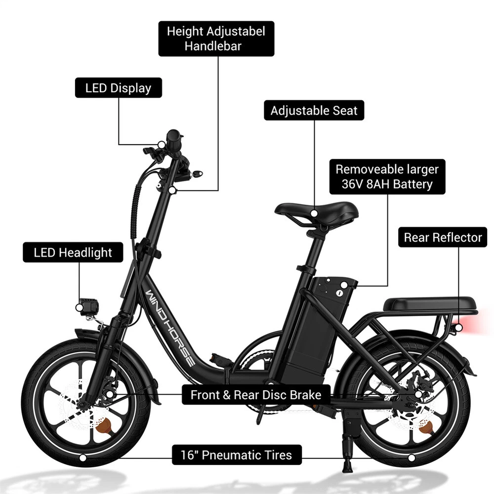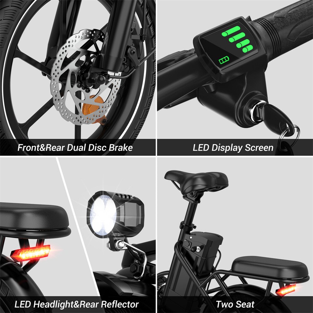 630W 25MPH Ebike Folding Electric Bike 16" Tire Adult Commuting Electric Bicycle About this item 【Reliable & Durable】 Our foldable electric bike is UL2849 and CFR1512 listed, and adopts high-strength carbon alloy with 50% more service life compared to aluminium alloy, the bicicleta electrica equipped with dual disc brakes makes the braking distance 21% shorter compared to traditional break 【Conquer 30° Hills & Anti-theft Battery】 The beach cruiser electric bike with 630w peak brushless motor, boosting the max speed up to 25 MPH and climbing a 30° hill is a breeze for it; e bikes for women battery can only be removed after key open, the Anti-theft design is more reassuring & fully charged in just 3-4 hours, and provide a max range of 35 miles under assisted driving 【Excellent Portability】 The mini ebike allows you to adjust the handlebars and saddle according to your height (5'25"-6'23"), and lectric ebike takes only 4 steps to fold the adult electric bicycles to the boot or take it on the underground, making it a great choice for travelling, riding or commuting to work & school 【3 Riding & Safety】 Our ebike cruiser offer 3 riding modes: throttle, pedal assist, and manual mode, with front suspension that lets you traverse all kinds of city roads and commuter electric bike improved visibility at night with bells, LED headlights, and rear reflector lights to ensure that nighttime riding is just as safe as daytime! 【Shop with Confidence】 The electric mountain bike is pre-assembled 98%, it's easy to suitable for novice. 𝑻𝒊𝒑𝒔: The lectric ebike needs to be charged before it can start working; Please retain the original e bike package for a while in case a return is needed. The item is UL 2849 certified: https://productiq.ulprospector.com/en Specification Bike Type Electric Bike, Commuting Bike Age Range (Description) Adult Number of Speeds 1 Color White Wheel Size 16 Inches Frame Material Carbon Alloy Suspension Type Fork Suspension Maximum speed 25 mph Range 35 miles Motor 350 watts (630 watts peak) Battery 36V 8Ah Bike weight 53.6 lbs Maximum Load 265 lbs Frame Carbon Alloy Recommended Height 5.25-6.23 feet Charge Time 3-4 hours Special Feature Adjustable Handlebars, Dual Suspension, Headlight, Dual Disc Brake, Adjustable Seat Package Included 1 x E-bike 1 x Charger 1 x User Manual 1 x Tool kit Shipping Payment Return & Refund policy Feedback Customer Support - Contact Shipping FREE SAME BUSINESS DAY MONDAY- FRIDAY SHIPPING FROM USA. All orders and payments received before 4PM EST (1PM PST) will be shipped the same business day. All other orders within 1 business day. No shipping on Weekends or US Public Holidays. No responsibility for any custom duty Shipping information will be updated when available. Payment We accept payment via PayPal. Use PayPal at checkout to pay with credit or debit. Immediate payment is required. Shipping will be arranged within 1 business day once payment is cleared. Return & Refund policy 1.We stand behind our items and offer 60 days warranty. All items are in new and working condition unless specified otherwise elsewhere in the description. 2.All Returns - defective or otherwise - MUST BE PREAUTHORIZED to guarantee refund or exchange. Please contact us to get an authorization and return address. 3.Buyer agrees to pay for the cost of re-shipment for undeliverable or wrong addresses. 4.Buyer is responsible for Return Postage as well as a 20% restocking fee if return/replacement is not a result of our mistake such as wrong item. 5.Replacement or Refund will be made upon receipt of the returned item. Please include tracking number so we can process ASAP. If you do not wish to wait for a replacement, please repurchase the item. 6.ALL REFUNDS will be processed via PayPal. Please double check via PayPal history and transaction for confirmation. PayPal will send it back to whatever you used to pay within 3-5 days. Feedback We strive to provide the best products and services. If anything about your transaction did not meet expectations, please CONTACT US and give us the opportunity to make things right. We are always here to help. Customer Support - Contact Please do not hesitate to CONTACT US. You can message 24/7 on eBay for all questions and inquiries. We will get back to you within 1-2 business days at the latest.