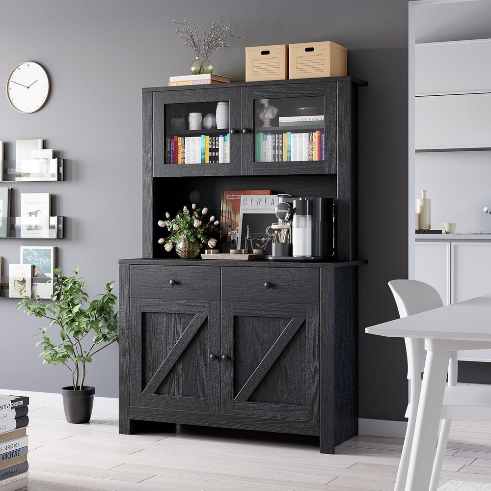 About this item 【Stylish Farmhouse Design】 Designed in a handcrafted look with retro wood paneling and tempered glass doors and this Kitchen pantry cabinet escalates a black metal handle, which blends with the metal decoration on the top, exuding a retro yet stylish unique temperament, it will become the focus of attention no matter where you place it. 【Discover Versatile Pantry Cabinet】 With three adjustable shelves and a spacious countertop, this kitchen hutch provides ample storage space for different kitchen items. 2 Large drawers are very suitable for storing dishes, knives and forks, hollow door handle design makes it easier to take; Inside, there are 3 adjustable shelves that can be adjusted in height according to the size of the items placed. The countertop can hold kitchen appliances like a microwave or coffee maker. 【Stable Durable Pantry】 Crafted from optimal P2 engineered wood and metal, Our storage cabinets feature a well-structured design that is steadfast and wobble-free, able to withstand the challenges of long-term use. The middle and bottom shelves have excellent weight capacity and can confidently support 100 lbs, while the remaining shelves and mid drawer can hold up to 50 lbs each. 【Multifunctional Tall Cabinet】 The size of Kitchen pantry is 41.3''W x 63.4''H x 17.3''D. Crafted with user comfort in focus, its height harmoniously aligns with the average adult's convenience for effortless accessibility. 【Practical Design】 Each door of the metal pantry cabinet comes with 2 hinges to ensure smooth operation and overall stability; Magnetic door locks make opening and closing the door easier; The included wall anchor kit prevents tipping for safety. 【Buy with Confidence】 All parts and components of the laundry room cabinetsare neatly arranged and labeled, which can help you assemble it quickly. The model of this Storage Cabinet offers ①7- day resend or return on quality problems or logistics damage; ② Lifetime accessories. If you encounter any problems during the installation process, please contact us and we will do our best to solve it for you. Product Description Large Kitchen Hutch Shelf Keep frequently used kitchen appliance & seasonings within easy reach Reserve Holes Convenient for electrical appliances to be connected to the power supply, thoughtful consideration 2 Easy-Glide Handy Drawers Keeps your cutlery, napkin, and all other odds and ends close to hand Mutiple storage Options Satisfies all your storage needs by offering both concealed and open bottom space Payment Delivery details Terms of sales About us Contact us Payment We accept payment either via PayPal or any of the following credit cards; Visa, MasterCard, Discover, and American Express. Delivery details 1. We will delivery out at the handing time when we receive the payment. 2. The delivery time is 3-5 business days to US by usually time.The parcel maybe delay 1-2day of the weekend.Due to the bad weather,Holidays,Hot Season ect.the parcel maybe delay,If you have any problems,mssage us,we will try our best to solve it. 3. We ship to your eBay address. Please make sure your eBay address is correct before you pay. 4. If you want to change the shipping address,message us before our send out. Terms of sales If you are not satisfied with the item for any reason, please do not quick to leave negative/neutral feedback even open request and case without any communication with us. We devote ourselves making EVERY CUSTOMER in 100% Satisfactory and resolve any problem. Thank you for your understanding and recognition,we are always leave positive feedback to all our customers. About Reply: All replies will be sent to your email box, if you do not get response within 24 hours (Sat. & Sun. excluded) please check your eBay My Messages in case that our emails will be filtered automatically by your settings. About us automobilee-01 is a brand new store but we are one of North America’s top online suppliers of specialized, high-quality aftermarket online retailers and suppliers, committed to developing new markets. We primarily offers tool sets, auto parts, home goods, etc..With over 20 years of product selection and manufacturing experience, we delivers unparalleled quality, value, service and satisfaction. Our highly-trained, professional staff offer in-depth knowledge and personalized assistance for customers worldwide. Providing our customers with a simple, hassle-free experience with best-in-class customer service is more than a goal. Contact us Any problem please rest assure to contact us by eBay message first. We will reply you as soon as we can. We will deal with it within 24hs on working days. Brand Unbranded Item Length 41.3 in Item Width 17.3 in Item Height 63.4 in Mounting Free Standing Type Cupboard Color Black MPN Does not apply Assembly Required Yes Room Kitchen Style Modern Material Engineered Wood Number of Drawers 2 Features With Drawers, with Shelves Item Weight 125 Pounds Mounting Type Floor Mount