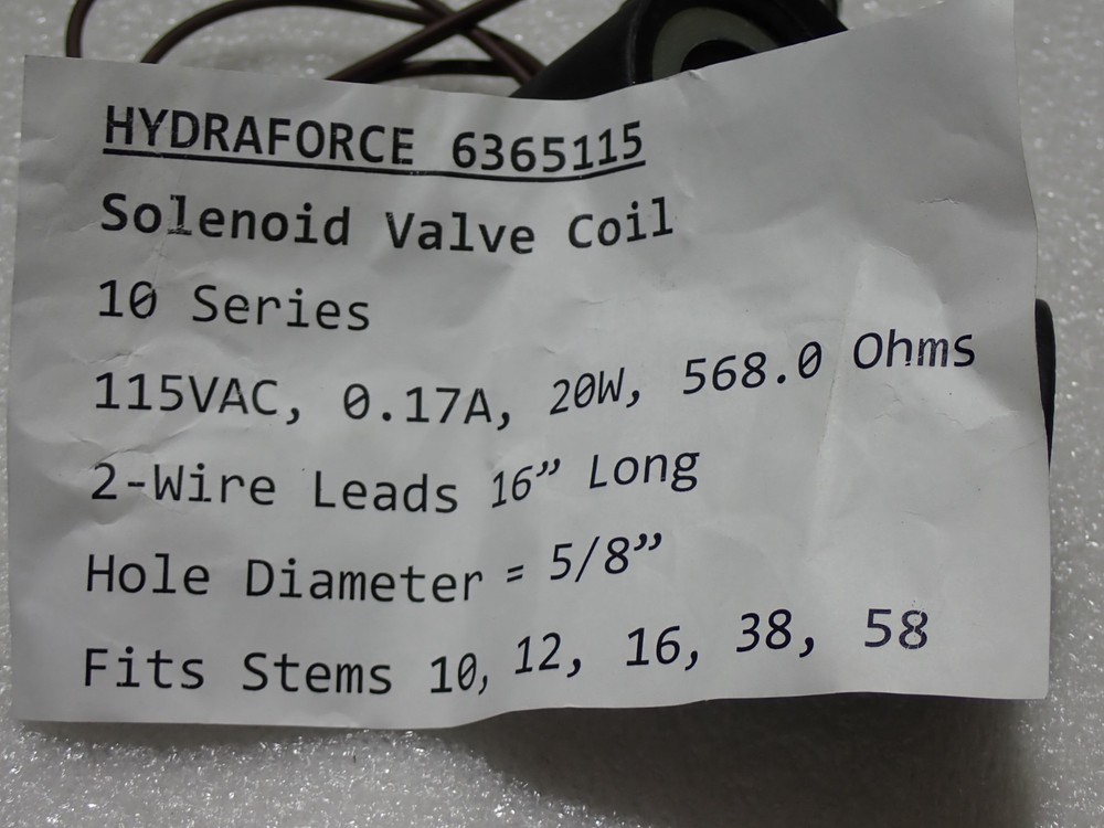 OFFERED IS THIS 6365115 HYDRAFORCE SOLENOID VALVE COIL LOT OF [2] NEW IF YOU ARENT PLEASED THIS CAN BE RETURNED AT OUR EXPENSE WE OFFER FREE & FAST NEXT DAY SHIPPING