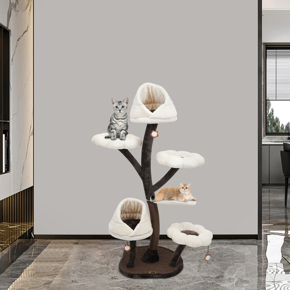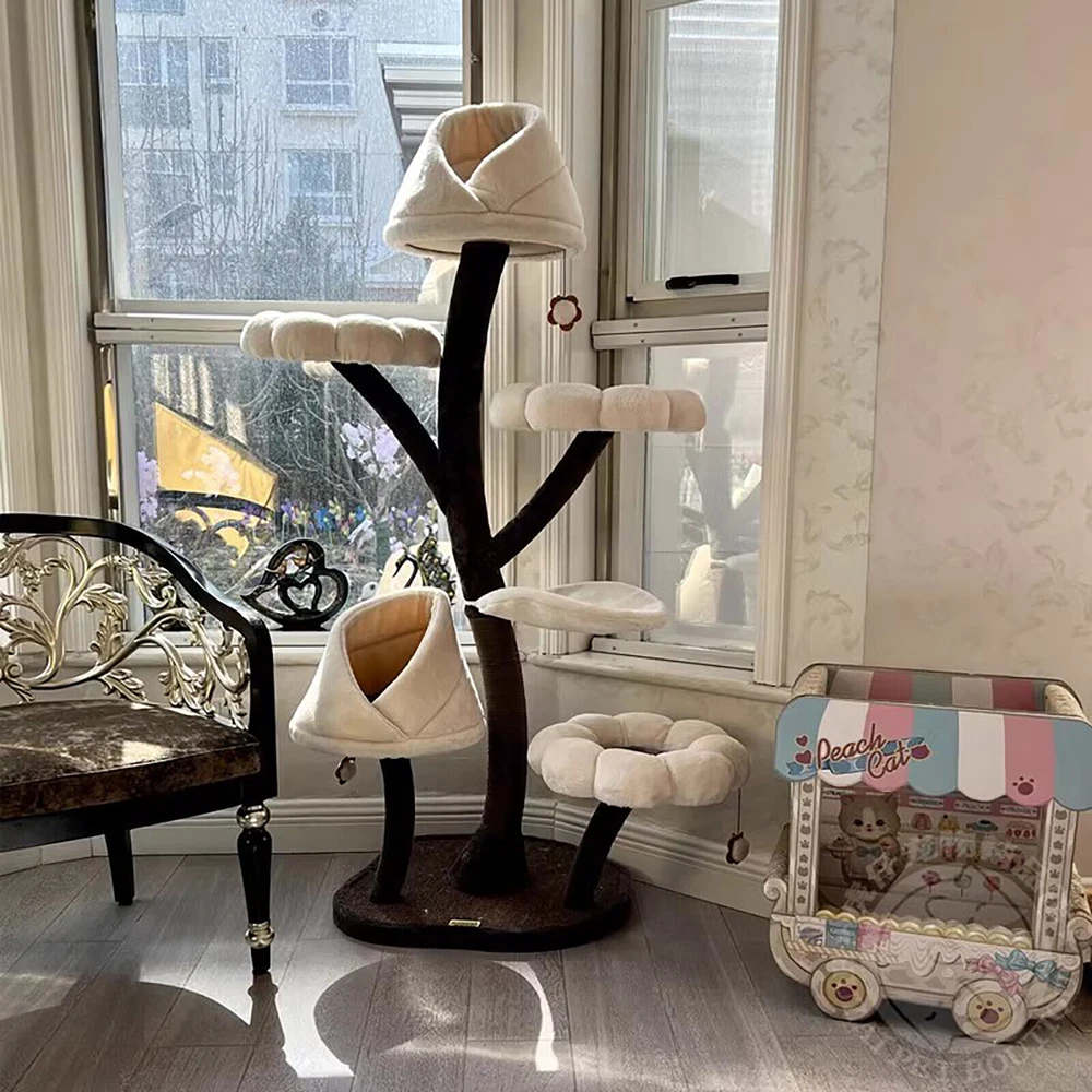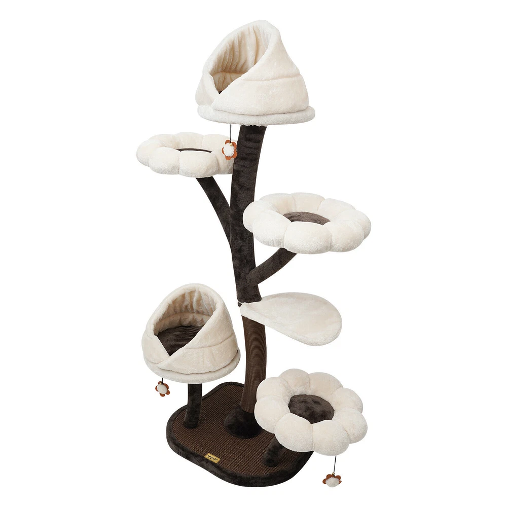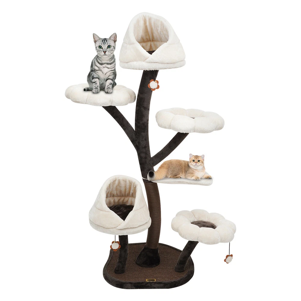 Specification Material: Particleboard, Paper String, Sisal, Iron, and Plush Fabrics Color: Brown and White Resting Platform Shape: Flower Style: Modern Target Species: Cat Wash Style: Hand Wash Assembly Required: Yes Mounting Type: Freestanding Specific Uses For Product: Indoor Number of Tiers: 6 Load Capacity: About 10kg/22 lbs Base Size: 60*55cm/23.6*21.6inch Total Height: 162cm/63.8inch Each Cat Nest Size(D*H): 38*25 cm/15*9.8inch Each Cat Resting Platform Diameter: 40 cm/15.7inch Leaf-type Hammock Size: 48*31cm/18.9*15inch Package Included 1* Cat Tree 1* Allen Key 1* Assembly Diagram Other Accessories for Use welcome Description Are you still worried that your cat has nowhere to sharpen its claws thus scratching the sofa, or are you still worried about your cat not having a suitable place to live? Then come to see our cat tree. The wide springboard, comfortable cat nest, durable scratching board, sturdy columns, and scratching post give your cat an ideal place to play and rest. The beautiful shape and coordinated color scheme can fit well into your furniture decor. Key Features Build to Last: It is made of high-quality particleboard, paper string, sisal, iron, and plush fabrics, making it robust, wear-resistant, impact-resistant , environmentally friendly, and safe, and has a long service life. Family Playground: This cat tree has resting platforms(also can be used as springboards), scratching posts, cat nests, and more, making it a family playground for cats to play, scratch, rest, and climb. You can take photos to document your cat's life and add to the fun. Thoughtful Design: Its structure is designed according to the climbing habits of cats, so both old cats and kittens can climb up and down easily. Kittens can lean on the padded upper platform to rest or observe the environment or sleep comfortably in the narrow upper and wide lower litter. Good Load-bearing: The sturdy material, thick columns, and stable base endow the product with a bearing capacity of approximately 22 lbs, so you don't have to worry about collapsing when your cat is playing or resting on it. Nice Decoration: White with brown appearance makes the product look very simple and atmospheric, flowers and leaves type resting platforms make it rich in a kind of natural beauty, so it will be a beautiful scenery in your home! Space Saving: The upright structure makes full use of vertical space, saving you more space in the bedroom or living room. Easy to Install: With complete accessories, a simple structure, and an intuitive assembly diagram, you can install it yourself and enjoy the installation process. Effortless Cleaning: Because of its simple detachable structure and smooth surface, you can easily wash this product clean. Ideal Gift: Thanks to its powerful functions and beautiful novel appearance, you can give it as a Christmas, Thanksgiving, or housewarming gift to your friends who love cats! Details Leaf-shape Hammock: It not only is stylish in shape but also provides maximum comfort for cats, allowing them to experience the fun of hanging. Flower-shape Plush Balls: They can easily attract your cats' interest, unleash their nature, make them jump like wild animals, and make them play happier. Practical Column: Wrapped with paper string, it helps your cats climb or sharpen their claws, prevent them from destroying the sofa or bed in your home, and protect their nails. Application It applies to cats weighing up to 22 pounds and is suitable for homes, pet shops, living rooms, bedrooms, balconies, and other places where cats can interact and rest. Specification Material: Particleboard, Paper String, Sisal, Iron, and Plush Fabrics Color: Brown and White Resting Platform Shape: Flower Style: Modern Target Species: Cat Wash Style: Hand Wash Assembly Required: Yes Mounting Type: Freestanding Specific Uses For Product: Indoor Number of Tiers: 6 Load Capacity: About 10kg/22 lbs Base Size: 60*55cm/23.6*21.6inch Total Height: 162cm/63.8inch Each Cat Nest Size(D*H): 38*25 cm/15*9.8inch Each Cat Resting Platform Diameter: 40 cm/15.7inch Leaf-type Hammock Size: 48*31cm/18.9*15inch Package Included 1* Cat Tree 1* Allen Key 1* Assembly Diagram Other Accessories for Use Notes If your pet chews the pompom, please remove it and keep it away from your pet for a while. It is recommended to place the cat tree against the wall and use the anti-tip kit(not included) to ensure the safety of your family members. Additionally, try not to place the cat tree in a humid environment, considering the material. Please check the tightness of the screws and tighten them regularly. Please allow the slight color difference caused by the shooting light and 1-3 cm error due to manual measurement, and make sure you do not mind before ordering. Payment Delivery details Terms of sales About us Contact us Payment We accept ebay payment 。 Fees such as import duties, taxes are not included in the item price or shipping costs. These charges are the buyer's responsibility. Delivery details Shipping: 2-9 working days to: USA Terms of sales We maintain high standards of excellence and strive for hundred percent customer satisfaction. Feedback is very important to us. We hope that you contact us immediately before you give neutral or negative feedback, so that we can address your concerns. It is impossible to address issues if we do not know about them! About us Your satis faction is our ultimate goal. We work hard to earn your trust and future business. Our certified technicians have tested each item before shipping. The unit comes with 1 year limited warranty on all manufacturing defects. a) If you receive a defective item, you may return it or ask for a discount. Please contact us within 14 days after you receive the package. b) What you returned must be intact and in its original packaging as re? u. Customer is responsible for shipping costs of the returned item. c) We will cover the cost of shipping back t with the shipping rate indicated in the registra