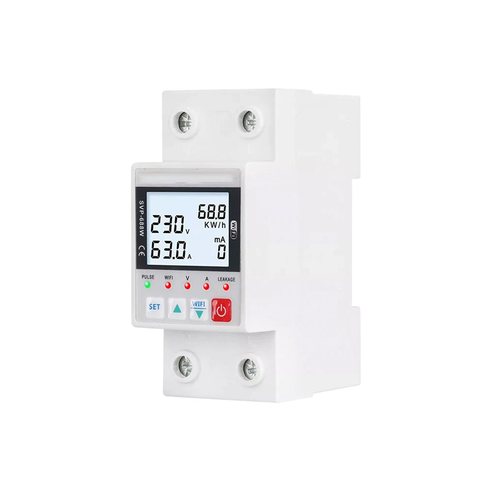 Description "SVP688 63A TUYA WiFi Smart Circuit Earth Leakage Over Under Voltage Protector Relay Device Switch Breaker Energy Power kWh Meter Features: 1. Excellent ABS shell, aging resistance, high temperature resistance, not easy to deformation, durable. 2. Will automatically reconnect, you can remotely control the switch through the mobile phone, efficient and stable performance. 3. High control precision, compact structure, strong anti-interference, long service life. 4. With current leakage, overvoltage, overcurrent, low voltage and other protection functions. 5. With memory function: can remember kilowatt hours, overvoltage, voltage and overcurrent. Specifications: Rated voltage: 230V Frequency: 50Hz/60Hz Undervoltage protection: 140-210V (adjustable) (Default: 175V) Overvoltage protection: 240-300V (adjustable) (default: 275V) Overcurrent protection: 1A-63A (adjustable) (Default: 63A) Overtemperature protection: 10~85°C (adjustable) Reconnection time (time delay) : 10s-99s (default: 30s) Leakage protection: 10-99mA(adjustable) (Default: 50mA) Power display range: 0-99999.9kWh Note: 1.Due to the light and screen difference, the item's color may be slightly different from the pictures. 2.Please allow 1mm-1cm differences due to manual measurement. Package Includes: 1x Over and Under Voltage Protector" Friendly Tips: 1.Due to the light and screen difference, the item's color maybe slightly different from the pictures. Please understand. 2.Please allow 1-2cm differences because of the manual measurement. Payment 1. We only accept payment through Payoneer. 2. Please make sure you have a valid account prior bidding. 3. Please pay for your item within 7 days after you order. Shipping 1. Buyer take responsibility in import / tax cost (not included in item price) 2. Pls contact with us to confirm extra cost if you need to upgrade the shipping option 3. If there's any concern about shipping, pls contact with us for further confirmation Return Policy 1. Refund or Replacement request is available within 30 days after parcel received and returning the item as the same condition as received. Please contact us to request a return authorization. Your name, auction number, and reason for return should be included in the message. 2. All items returned must contain all original packaging materials. Please repack the item carefully. Items returned will be tested and a new replacement will be shipping to buyer punctually. 3. In the event that a suitable replacement is not available then a refund will be issued. Shipping, handling and insurance fees are non-refundable. 4.If the item was found non-defective, the item will be sent back to buyer at buyer's expense. Items returned without authorization will be refused and returned to sender/buyer. 5. Buyer pay the shipping cost if the item damaged artificially, or buyer say "not like it", "size/color was different per they imaginary", etc. Contact us Please contact us via ebay message any time, all questions will be replied within 12 working hours. Customer Support Online : 9:00am - 22:00pm (GMT +8) Everyday