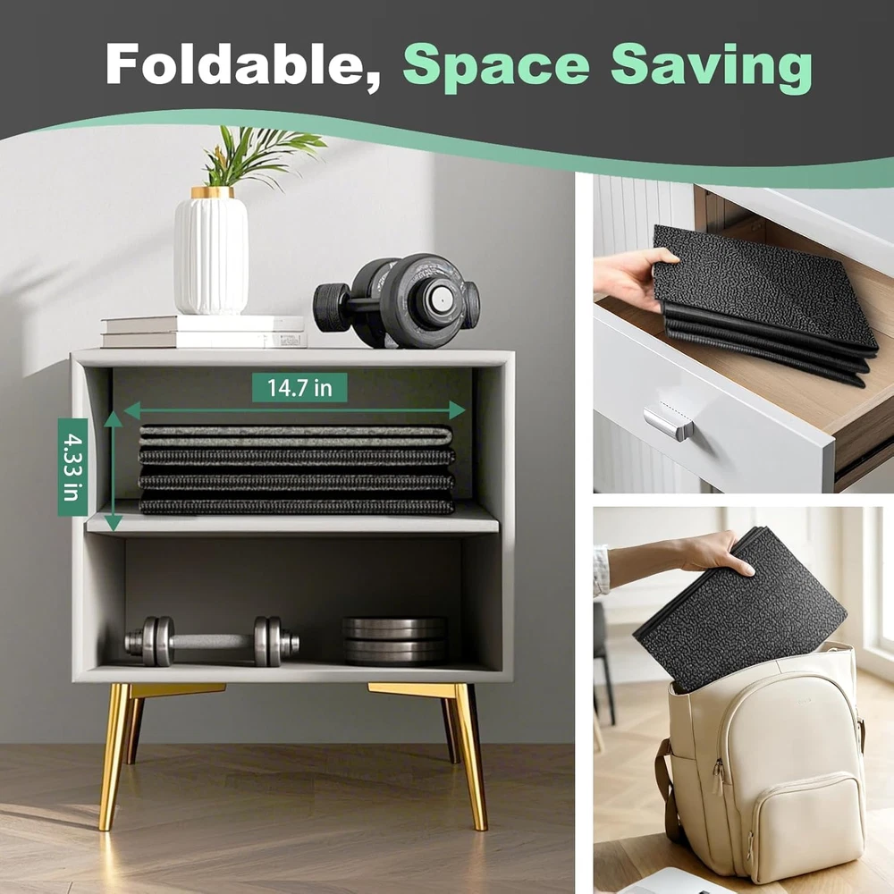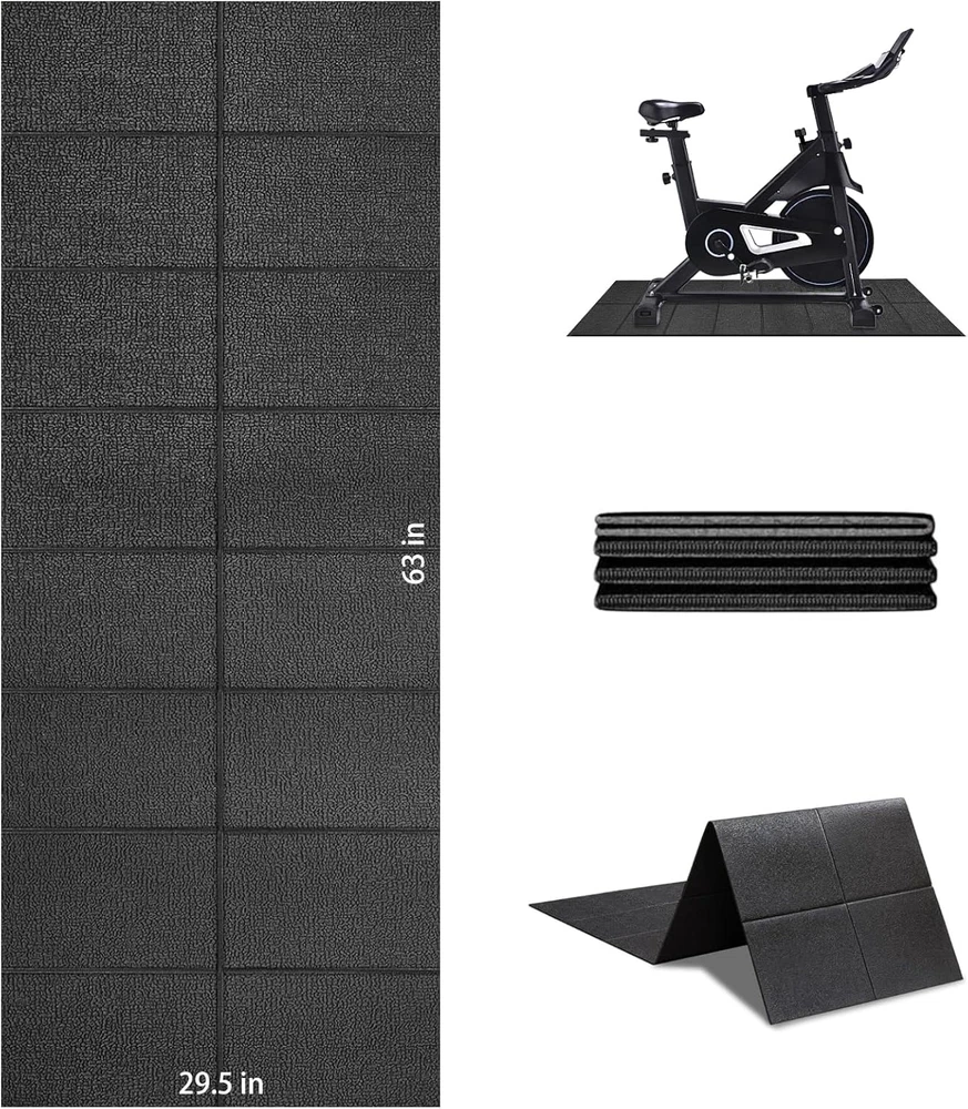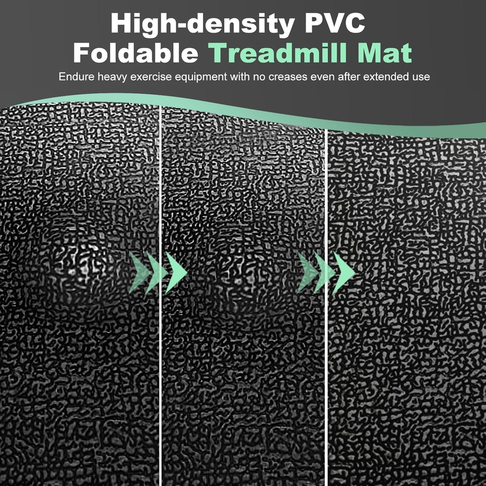 Treadmill Mat Exercise Mats for Home Workout 63"X29.5" 1/4" Compatible with Bike PROTECTING FLOORS FROM DAMAGE:Treadmill mats for carpeted floors are non-slip and shock-absorbing and can withstand the impact of fitness equipment, fully protecting floors and carpets. Reduce vibration to absorb noise. FOLDABLE TREADMILL MAT: walking pad mat for carpet unfolds to 63" x 29.5" x 1/4" and folds to 14.7" x 7.8" x 4.33",6 mm-100% thicker than 3 mm .easier to store and carry than traditional exercise mats, and you can take it anywhere. DURABLE PVC TREADMILL MAT: Made of premium PVC, without tearing or wearing out over time, built to last. walking pad mat Suitable for adults and children, Non-Toxic / Eco Friendly / No Odor. SWEAT RESISTANT AND EASY TO CLEAR:With a 100% waterproof surface design.this treadmill mat prevents sweat or water from adhering to carpets or wooden floors. Simply wipe off sweat with a towel or cloth for easy cleaning. WIDE RANGE OF USES:This exercise mat can be used as a protective pad for wood, tile, vinyl, low pile carpet, concrete floors and gym equipment. It easily holds a walker or elliptical and other bikes in place. Fits most equipment DUAL SIDED NON-SLIP DESIGN: The indoor mat has a non-slip texture on both sides to keep it stable during your workout. An essential companion for your workout. 100% HIGH-QUALITY SERVICE:If you have any questions while using our exercise mat, just feel free to without hesitation. We will be at your service within 24 hours.Thanks. Product Description Item model number A010000101 Item Thickness 0.24 Inches Number of Items 1 Color Black Pattern Solid Country of Origin China Material Polyvinyl Chloride (PVC) Shape Rectangular Item Weight 4.24 pounds Product Dimensions 63"L x 29.5"W x 0.24"Th Product Care Instructions Hand Wash Only Complimentary Shipping and Easy Returns Need to return something? Enjoy our 30-day hassle-free return policy! Take advantage of free shipping across all 48 contiguous states! Your order will be dispatched within 1-2 business days once payment is confirmed. Your Opinion Matters! Your happiness is our main goal! We welcome your feedback! If you encounter any problems, reach out to us right away, and we’ll be here to help. Explore the Extraordinary! Our collection showcases fascinating products that are sure to capture your attention. What surprises await you? Delve in and discover unique items that enrich your daily life. Don't miss the amazing things we have in store for you!