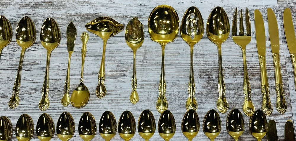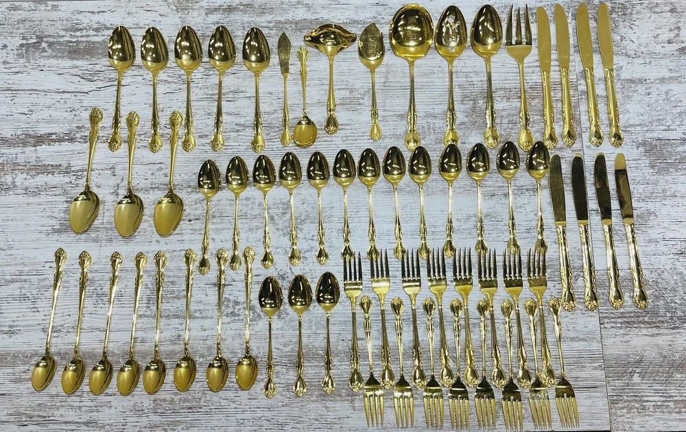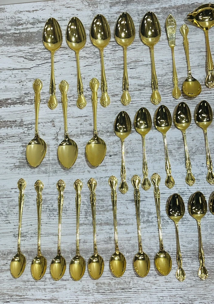 Thank you for looking at this very hard to find complete set of Norma NSCO flatware. There are 64 pieces in total with eight butter, knives, 1-large fork, 3-large different style spoons, 1-gravy, spoon 2-spreaders, 1-medium oval spoon, 16-6 inch spoons 8-7 inch spoons 8-slim 7 1/4 inch spoons 8-7 inch forks and 8-6 1/4 inch forks. If you have any questions, please feel free to send me a message and I will respond shortly.