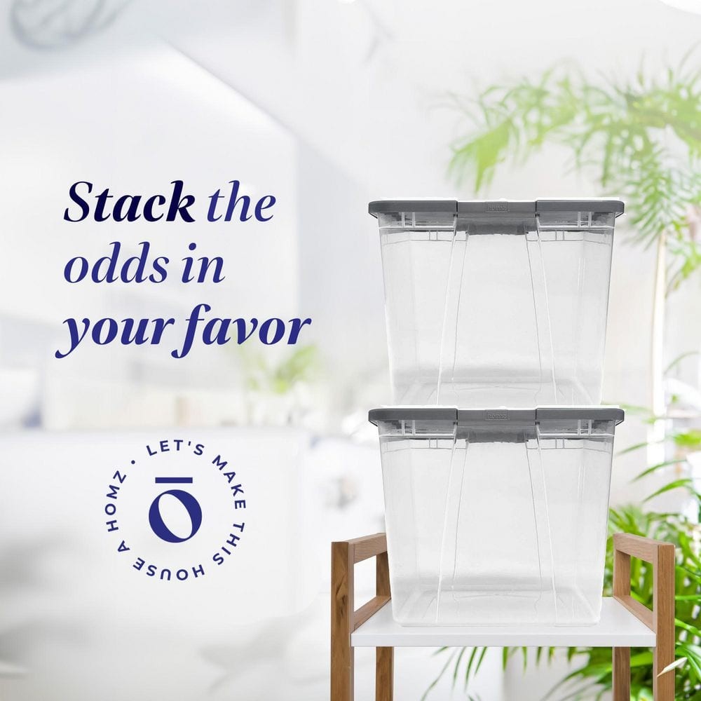 19 qt Black Stackable Pantry Storage Bins 4-Pack Plastic Organizers