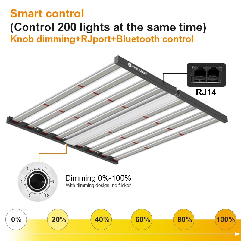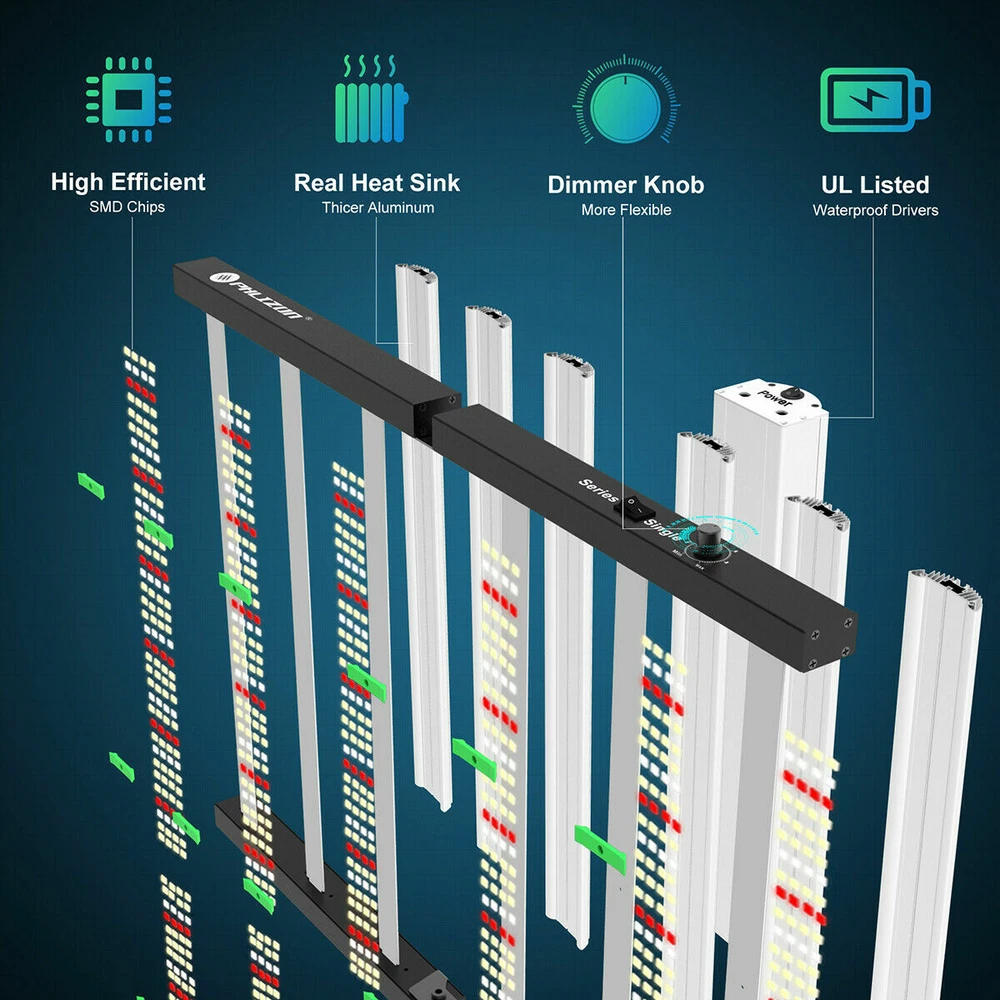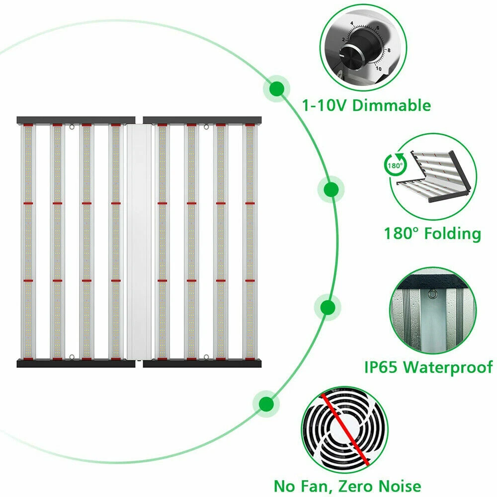 specifications Model: Phlizon FD8-I 640w led grow light hydro Noise Level: 0 DB Number of Leds: 120V-225pcs/240V-240pcs Spectrum: 660nm,3500K,6500K Actual Wattage(+-5%): 640w Amp Draw: 5.82A/110v, 5.33A/120v,3.08/208v,2.91A/220v,2.66A/240v Core Coverage: 6ft x 6ft Max Coverage:6.5ft x 6.5ft at 12INCH PAR Value: 1360 umol/s Replaces HPS/HID/MH: 2000 watt Product Size: 41.7*40.8*3.9inch (1060*1040*1000mm) Product Weight: 20.85kg Input Voltage: 100 ~ 240V AC,120-277V AC, 347-480V AC Frequency Range: 50~60Hz Life Rating: 50000-100000hrs Package includes 1 x LED Grow Light 1 Set x Free Steel Hanging kits (Easy installation) 1 x Free Warranty cards 1 x Free Power cord with Plug(US plug) specifications Model: Phlizon FD8-I 640w led grow light hydro Noise Level: 0 DB Number of Leds: 120V-225pcs/240V-240pcs Spectrum: 660nm,3500K,6500K Actual Wattage(+-5%): 640w Amp Draw: 5.82A/110v, 5.33A/120v,3.08/208v,2.91A/220v,2.66A/240v Core Coverage: 6ft x 6ft Max Coverage:6.5ft x 6.5ft at 12INCH PAR Value: 1360 umol/s Replaces HPS/HID/MH: 2000 watt Product Size: 41.7*40.8*3.9inch (1060*1040*1000mm) Product Weight: 20.85kg Input Voltage: 100 ~ 240V AC,120-277V AC, 347-480V AC Frequency Range: 50~60Hz Life Rating: 50000-100000hrs Package includes 1 x LED Grow Light 1 Set x Free Steel Hanging kits (Easy installation) 1 x Free Warranty cards 1 x Free Power cord with Plug(US plug) 😍 SMD2835 Led+Chips 2021 2835 UPDATED SMD Diodes, Higher light intensity, Less light decay, Better lumens and PAR values output. For maximum uniformity, hang the fixture 24-36 inches from the crop.The 8 passively cooled bars provide full-spectrum, broad-coverage light for full-term growth 😍 Full Spectrum+Dimmable 0-100v Professional proportional spectrum that is more suitable for plant growth (380nm-800nm) Blue, White, Red and IR, providing more effiecient light for indoor plants.It is perfect for all stages of growth of indoor plants, vegetables and flowers, from seeds to harvest. 😍 MORE DEEP RED LIGHT 660nm This is the NO.1 factor that affects your palnts growth. equiped with high-precision 90-degree lens and reliable SMD LED Tech together, which can make sure 98% light souce can apply to your plants completely, make your plants healthier and happier 😍 Large Built-in aluminum alloy With an output of 1200 µmol s-1, this fixture achieves an impressive efficacy upto 2.6 µmol s-1 per watt.Passively cooled LED bars provide intense light coverage with no fans or moving parts—significantly reducing the number of possible fail points compared to other fixtures THE FEATURES 640W LED GROW LIGHT 💯 MAXIMIZE CROP YIELD & ENERGY SAVING Wide 8-bar form design offers even & broad canopy coverage, maximize grow space, ideal for high PPFD cultivation with single or multi-tier racking.Consuming only 640 Watts true output with 2592 pcs LEDs, more scientifically and energy-efficient! Perfect for 6.5' x 6.5' veg stage, 5.5' x 5.5' Flower stage, higher intensity reach 30% than other blue red lights.Newest SMD LED technology provide light output PPFD up to 1360 μmol/㎡s, high energy efficiency at 2.8umol/J.The best solution to get more and better quality fruits. 💯 Sunlike Full Spectrum Grow Light This full spectrum LED Grow Light uses 2592 pcs upgrade SMD lamp beads (3000K, 6500K and 660nm). Adequate and sun-like light can prevent the growth of plants from spindly and moulding. The best lighting solution for indoor hydroponics and soil cultivation, such as potatoes, peppers, tomatoes, etc.suit for all plants whole stages indoor growing, rapid plant response from seed to veg to flower to harvest. 💯 Achieve Enviously Large Harvests High-performance gardens with new LED technology provide highest PAR/LUMEN output(1360μmol/m².s), Max 2.8g yield per wattage (power draw), achieve maximum quality and quantity, much better than traditional 2000W HPS/HID grow light. 💯 High Reflective Heat Sink Led Grow System Quickly heat dispersing material aluminum reducing light lost to aisles and walls, increase the light intensity up to 20%, allowing your plants receive more energy and without burning your plants for maximum headroom. 💯 Noise-free Fanless Led Grow Lamps for Indoor Plants Designed for home growers, fans get noisy when long time use, but this LED light board use aluminum make it cooling down instead use fans, bring you a fanless quiet grow experience. 💯 DIMMABLE & FOLDING Design The light intensity can be changed by dimmer knob according to the different growth stages of plants.Plant led grow light can be folded up 180°, installed and moved easily, keep your house tidy. Structure optimization and material upgrade make it more lightweight and easy to install and use. 💯 Marvelous Customer Service Phlizon provides truly 3-5 years standard warranty ! If there is any question or concerns, please feel free to Email us. We will help you with great pleasure! ABOUT PHLIZON LED GROW LIGHT Phlizon has been developed by growers over many years of careful experimentation and testing. We mainly produce the led grow light and related accessories in Agricultural Greenhouses help indoor and outdoor plants growing. Scientifically engineered to deliver the highest level of PAR output and balanced Coverage in the LED grow market. WHY CHOOSE PHLIZON GROW LIGHT BAR? 💪Fully assembled, industrial grade construction and durability , covering full PAR (380-730nm) promotes photosynthesis for Growth & Bloomming, 💪Optimized spectrum for all phases of plant growth and production 💪High performance aluminum alloy light bar, Fast heat dissipation, Uniform illumination, lifespan up to 50000 hours. 💪Scientifically engineered spectrum to maximize photosynthesis, growth, and yield 💪40% less energy consumed and heat generated to produce an equivalent amount of delivered PAR than 1000W HPS 💪Superior delivered PAR output and PAR photon efficacy than 1000W HPS 💪Passive cooling design eliminates inferior features such as fans, moving parts, 